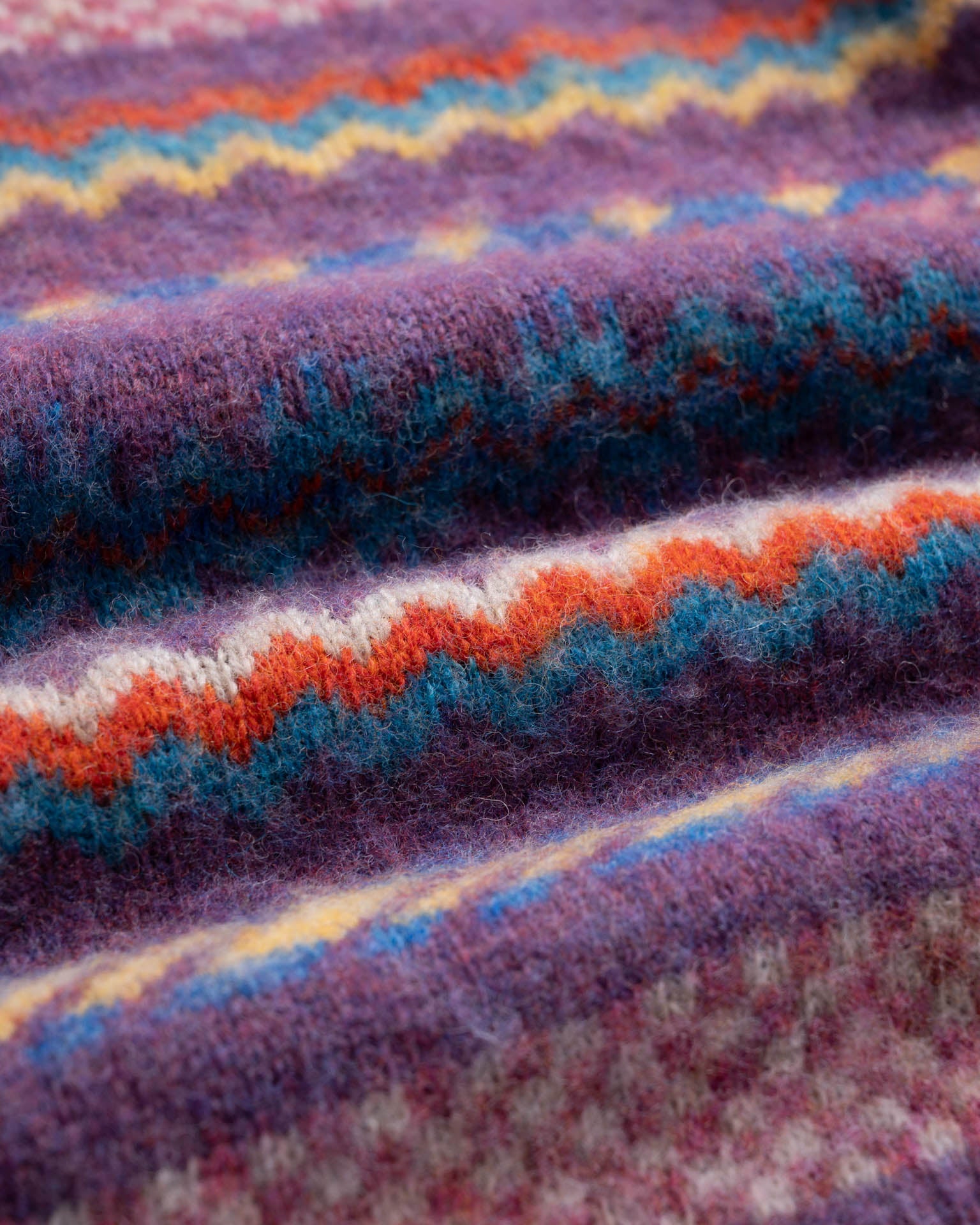 It's crafted in Scotland with a 100% pure wool yarn sourced from the resilient Shetland sheep breed, known for enduring Scottish winters. Due to the limited wool production from each Shetland sheep, the resulting yarn holds a cult status in the market, prized for its exceptional quality and unique properties.