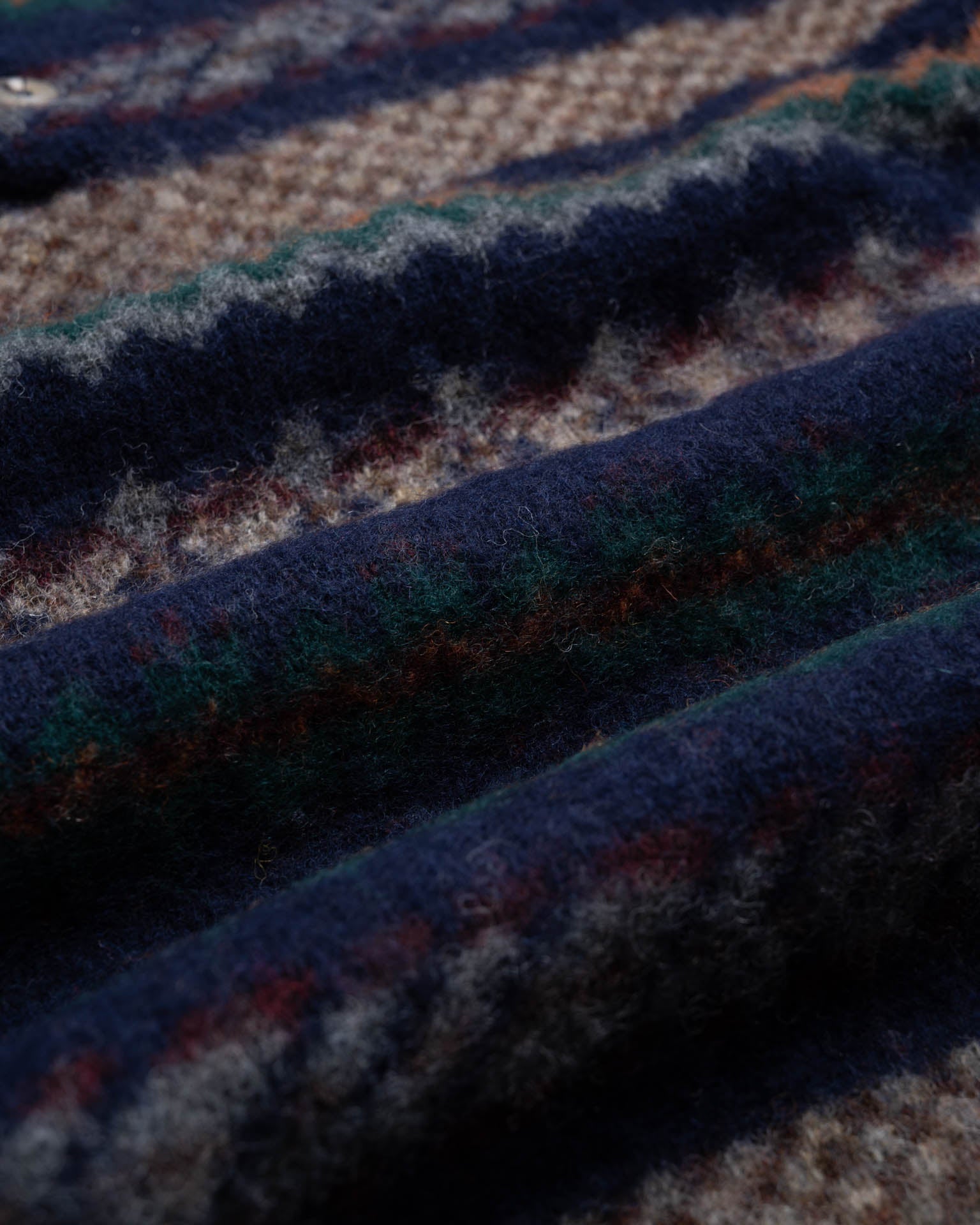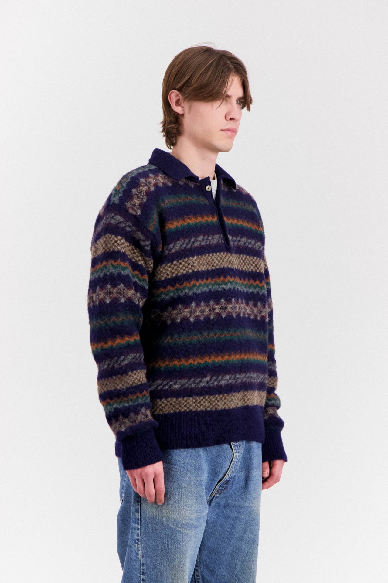 It's crafted in Scotland with a 100% pure wool yarn sourced from the resilient Shetland sheep breed, known for enduring Scottish winters. Due to the limited wool production from each Shetland sheep, the resulting yarn holds a cult status in the market, prized for its exceptional quality and unique properties.