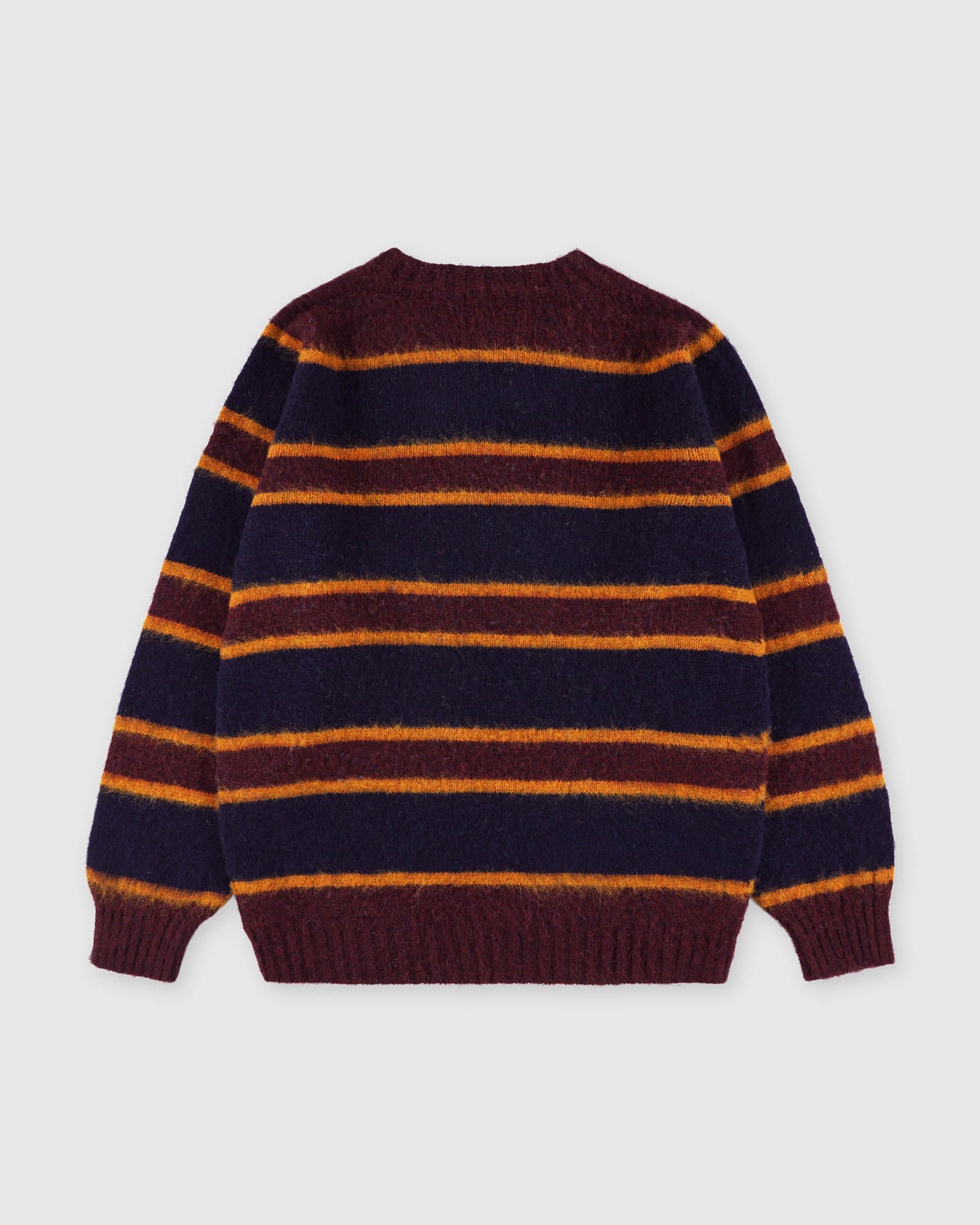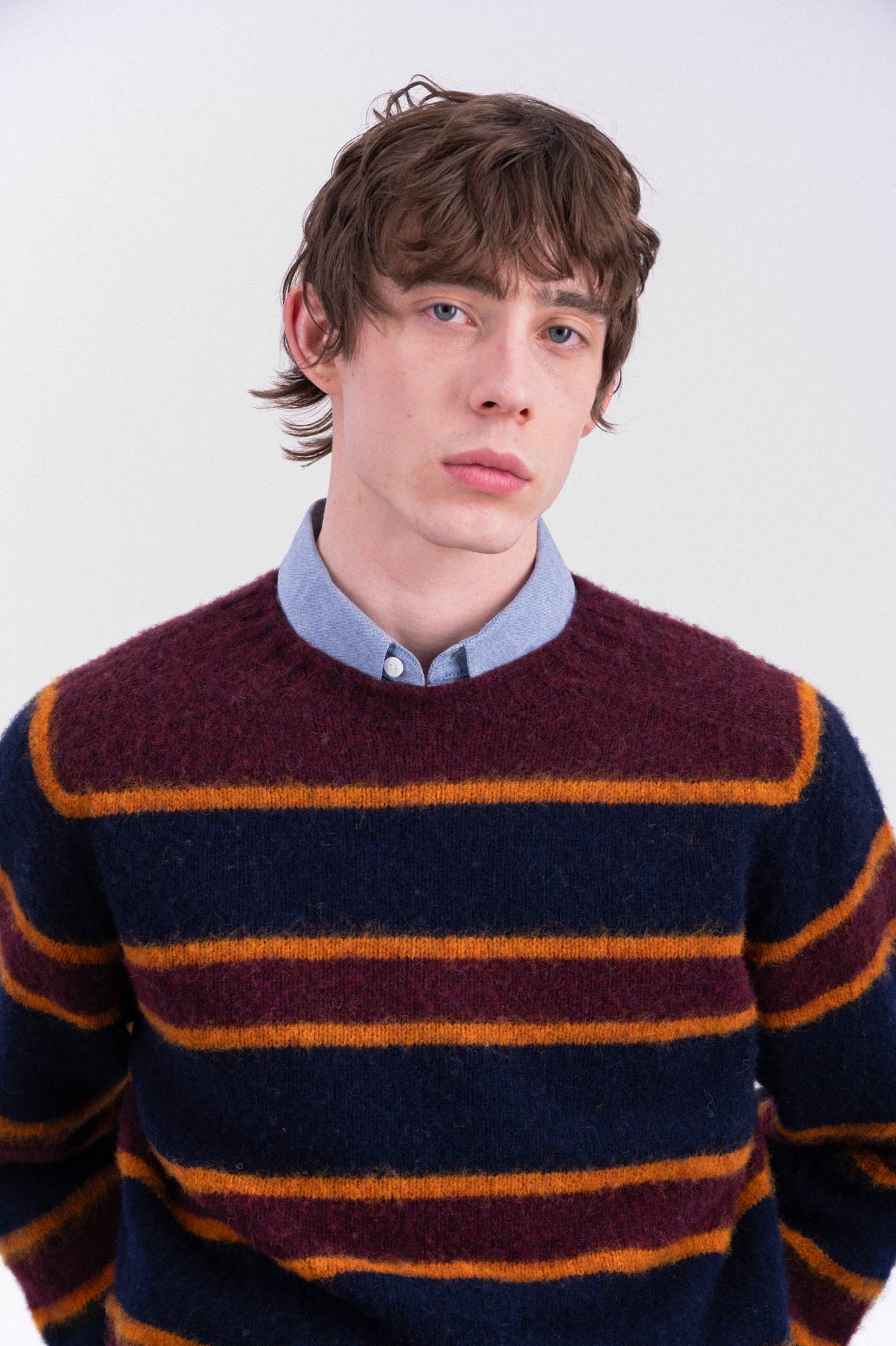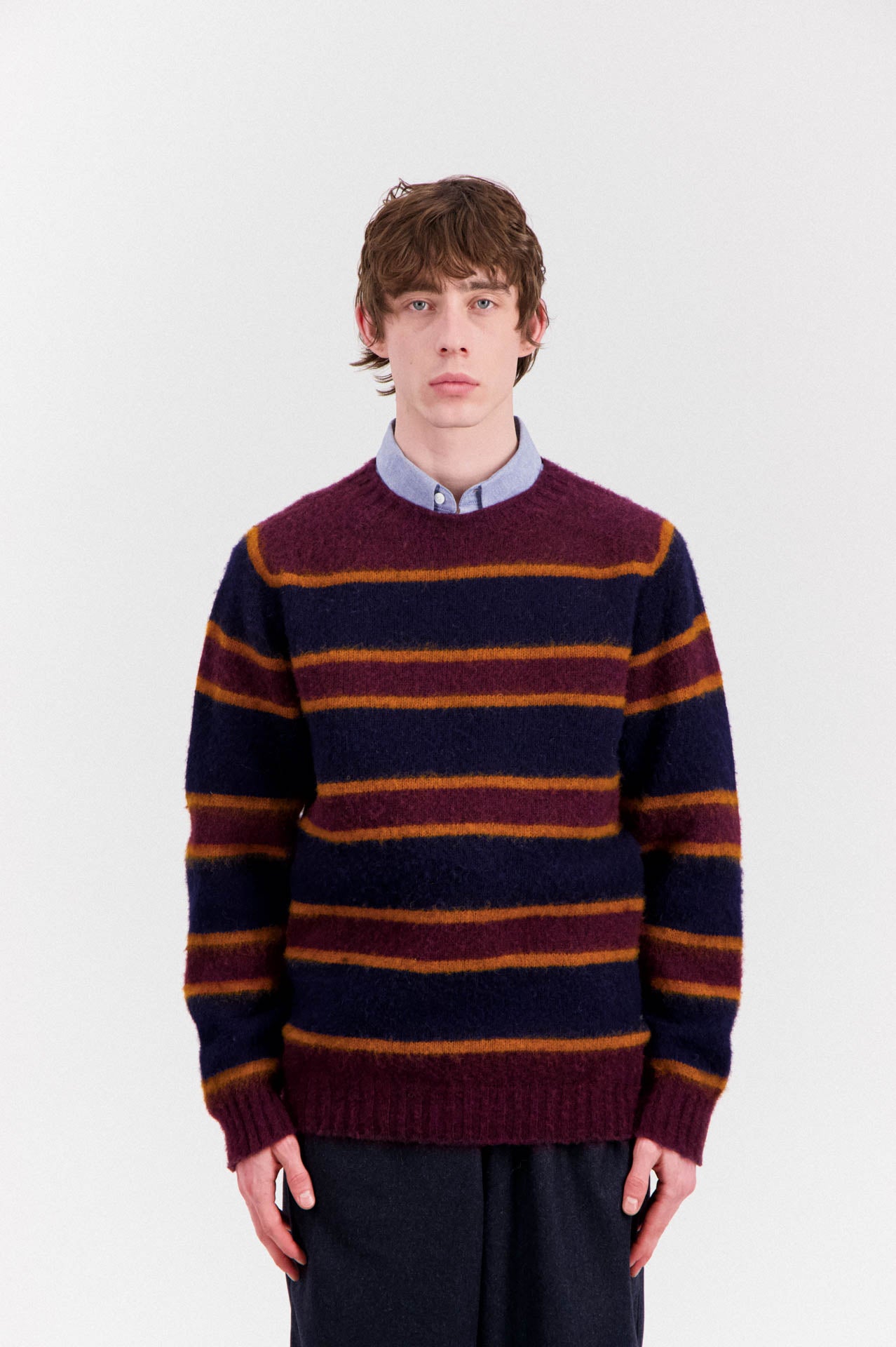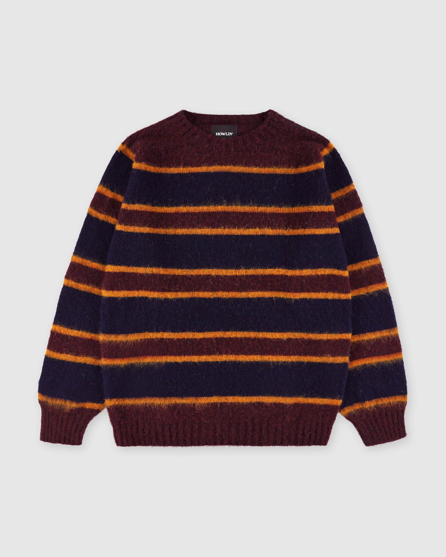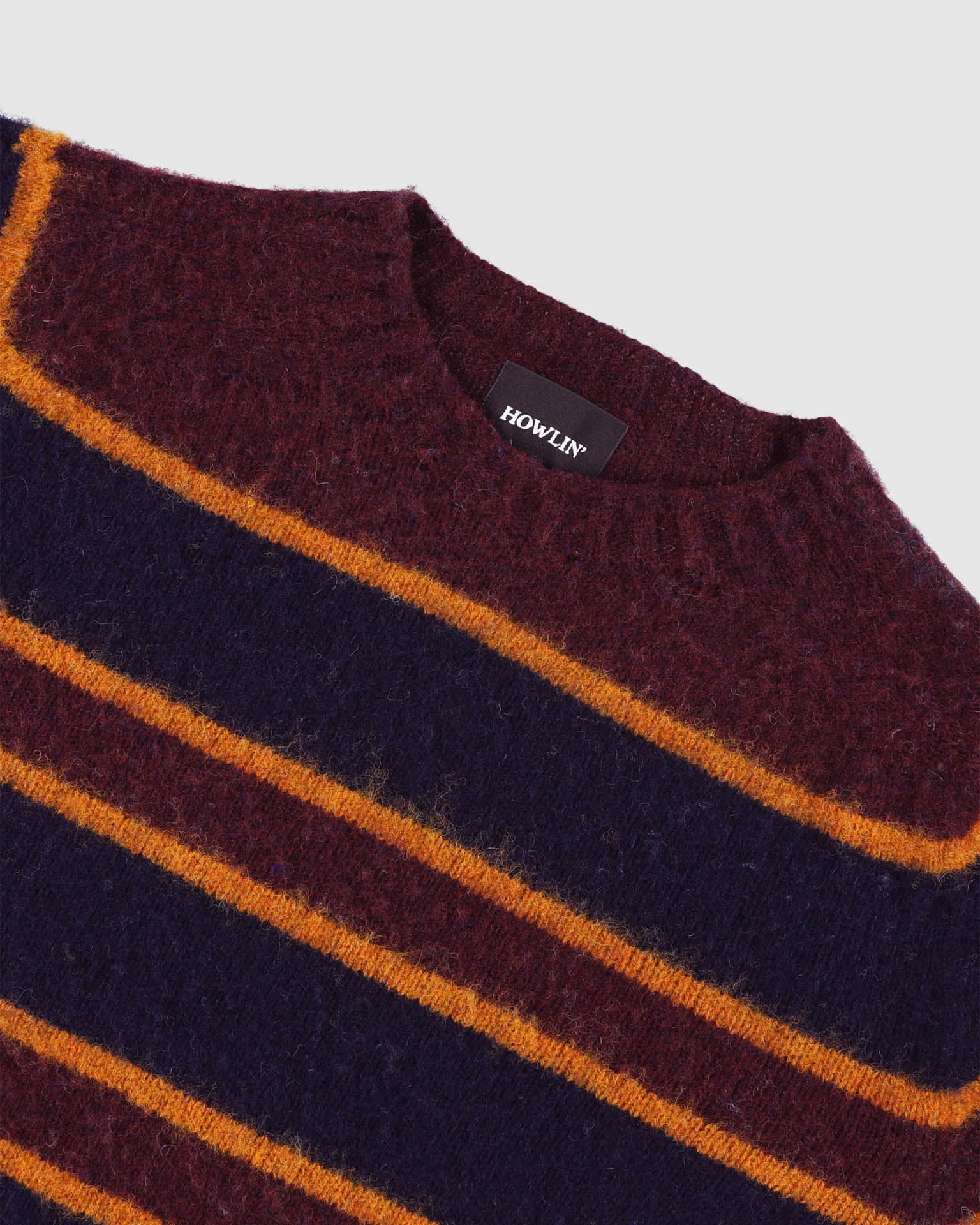 Absolute Belter is a striped, brushed, Shetland-wool jumper by Howlin'.