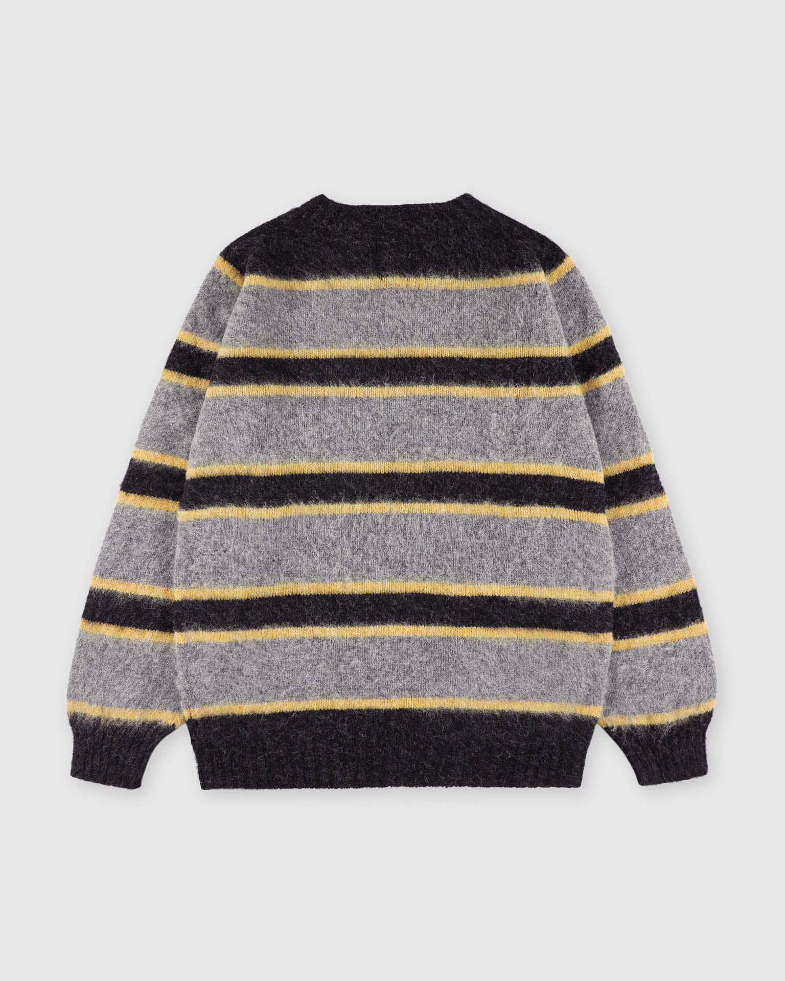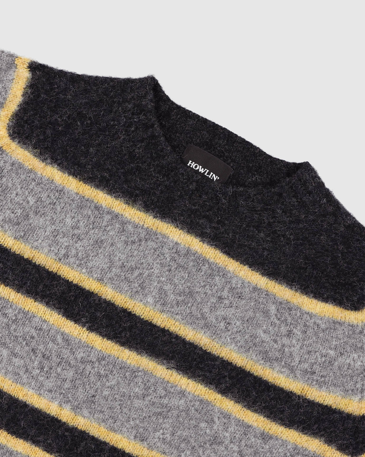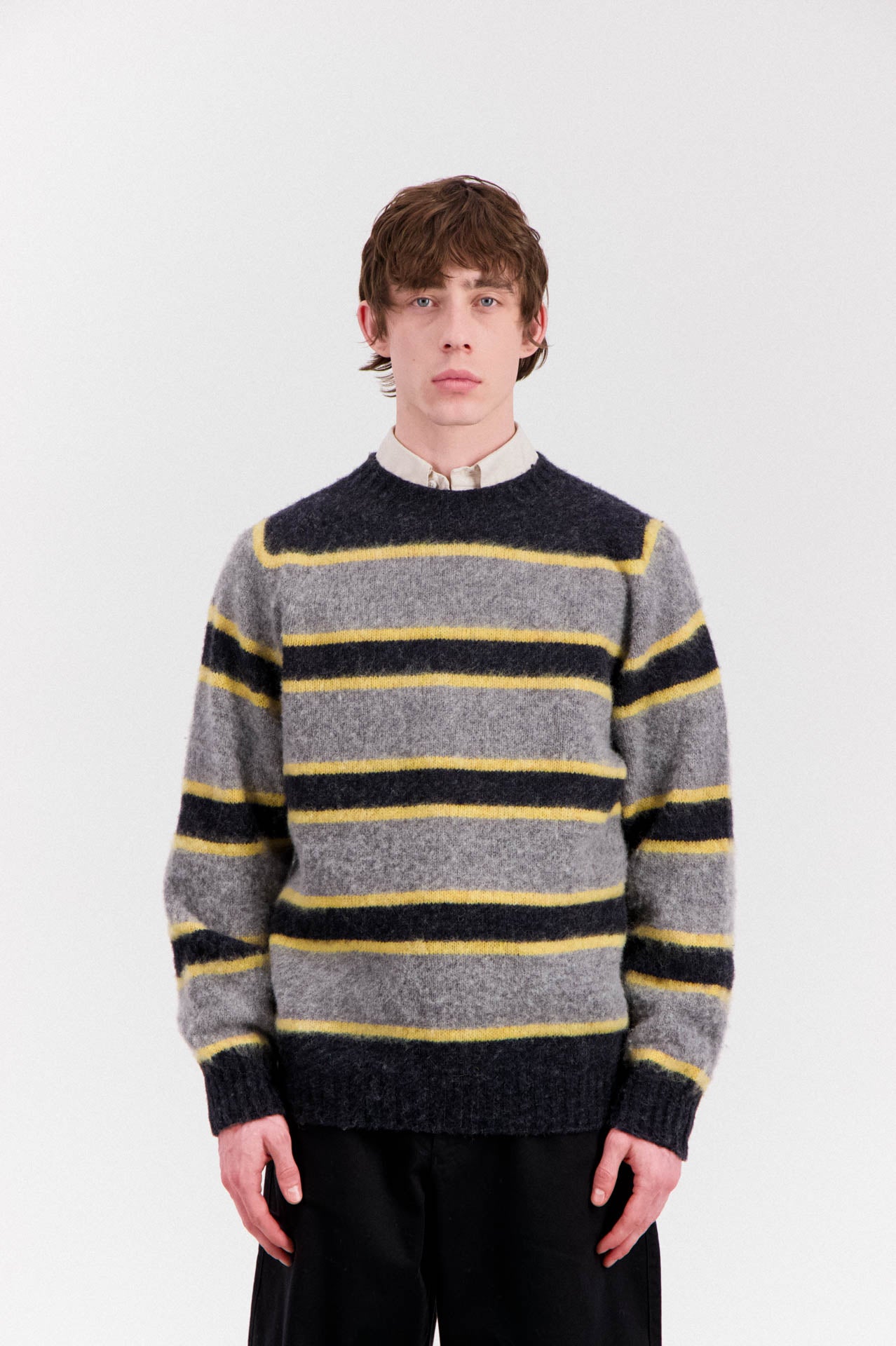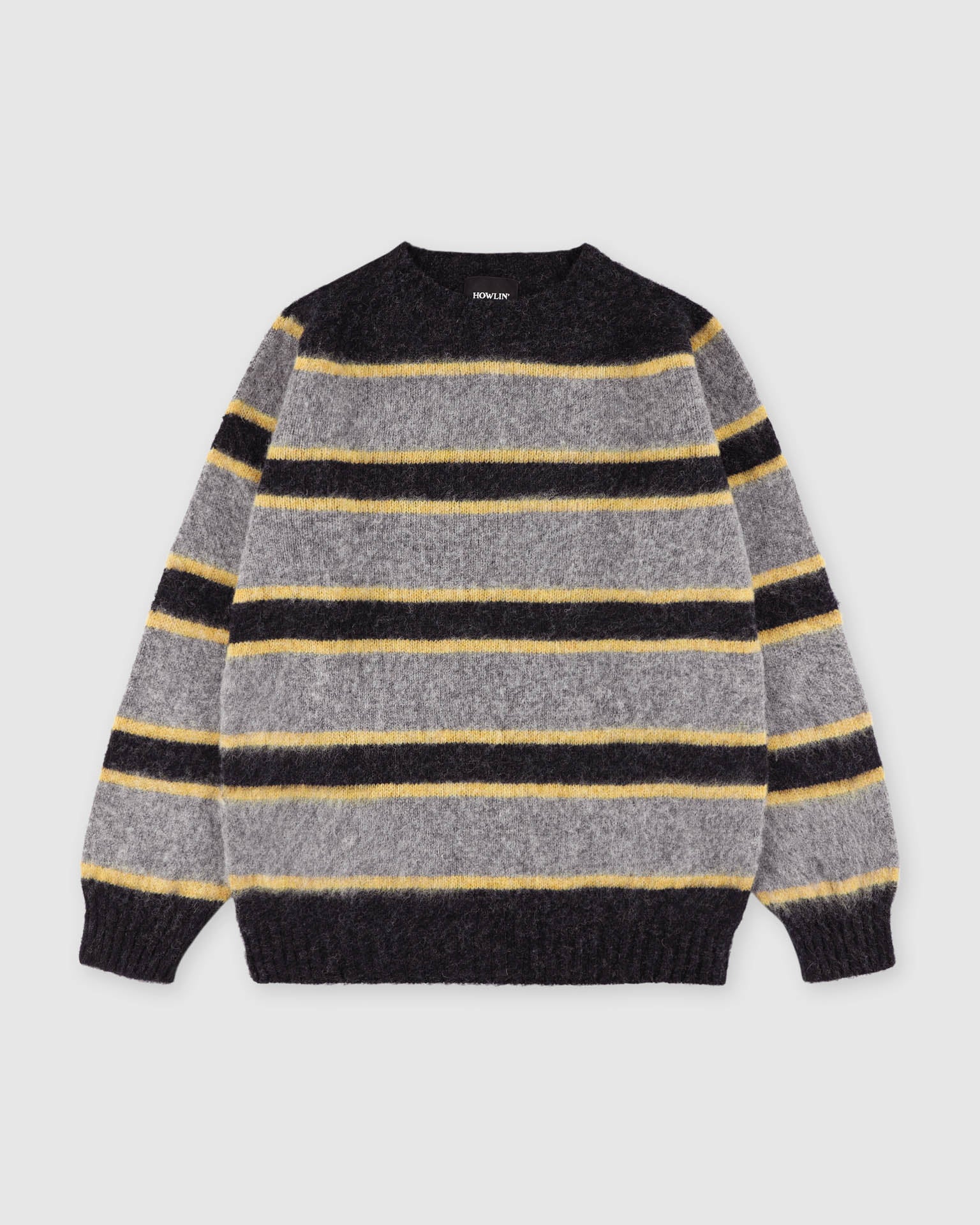 Absolute Belter is a striped, brushed, Shetland-wool jumper by Howlin'.
