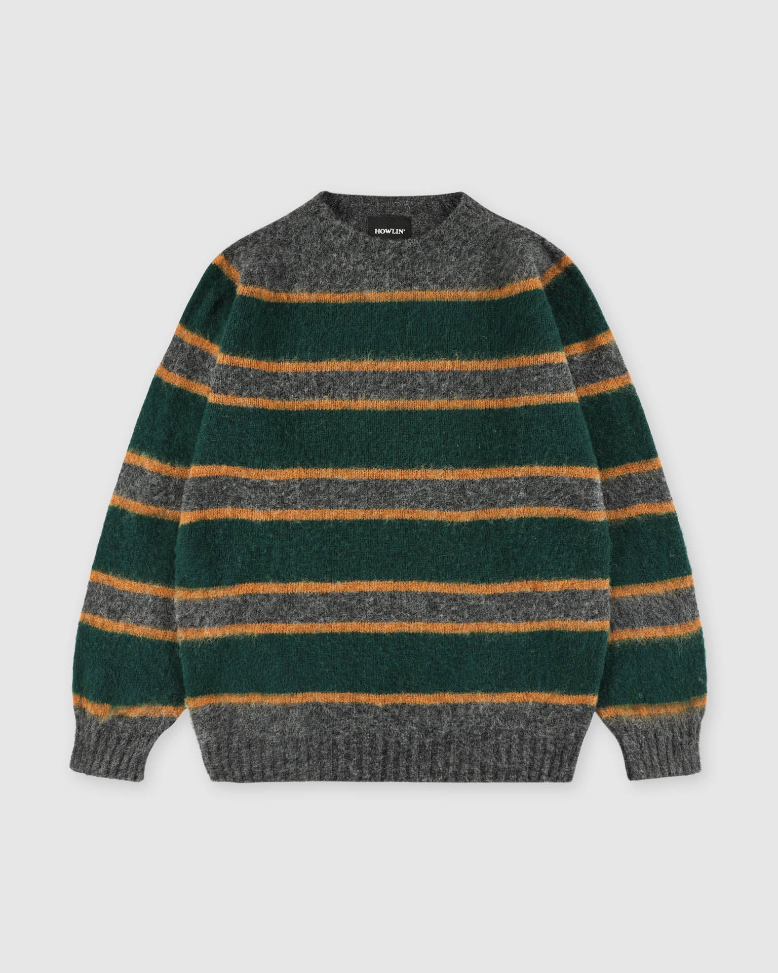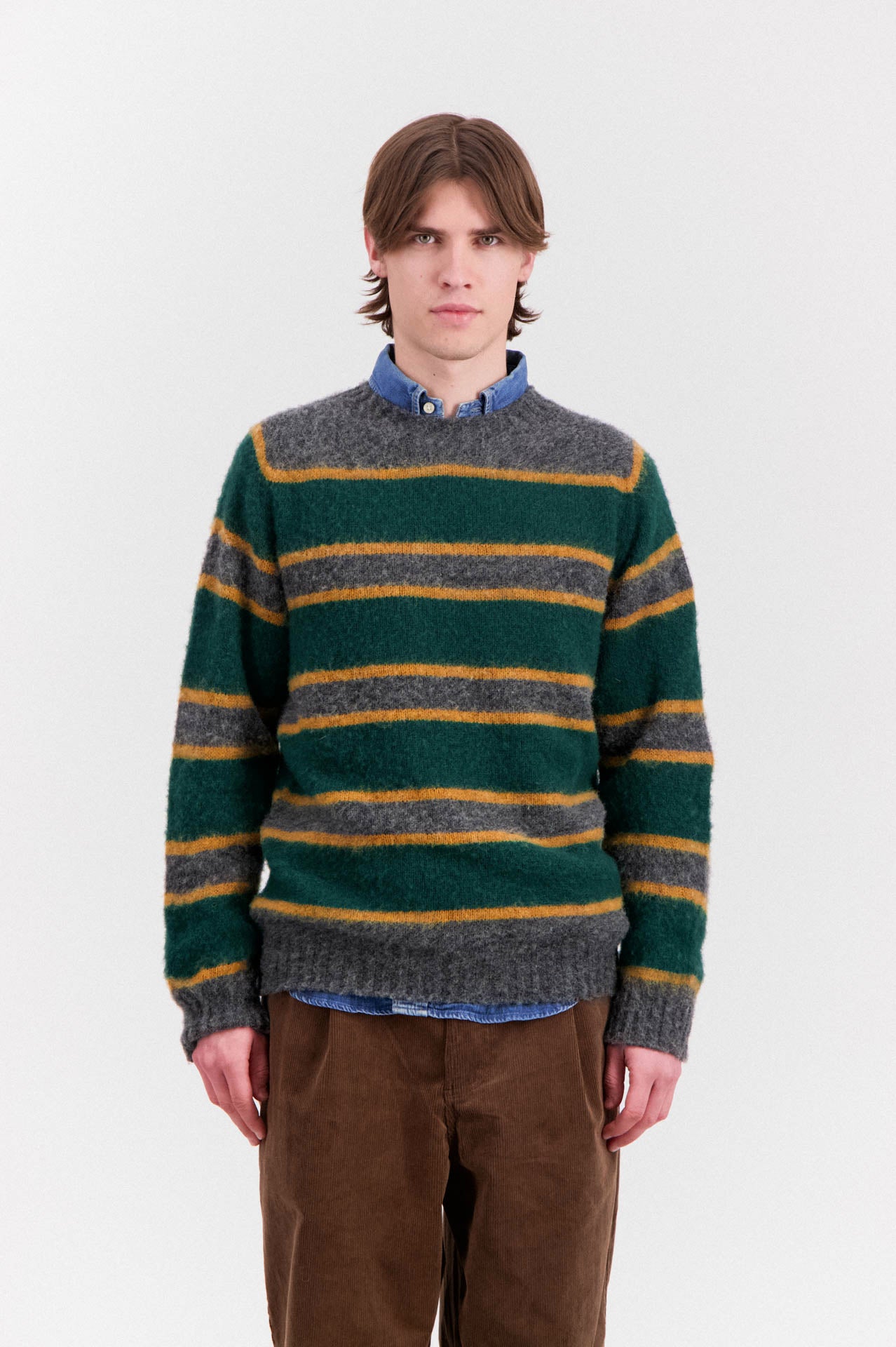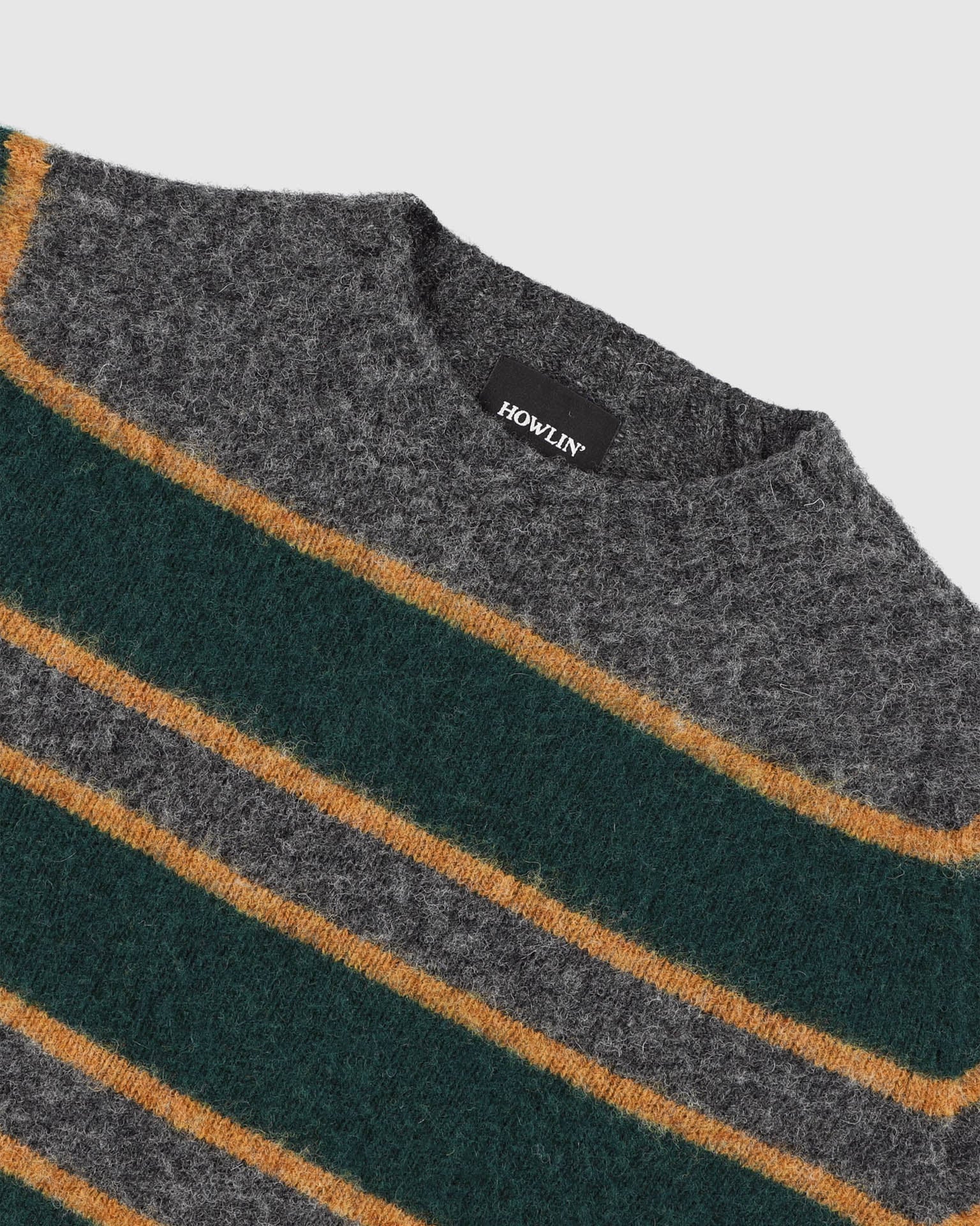 Absolute Belter is a striped, brushed, Shetland-wool jumper by Howlin'.