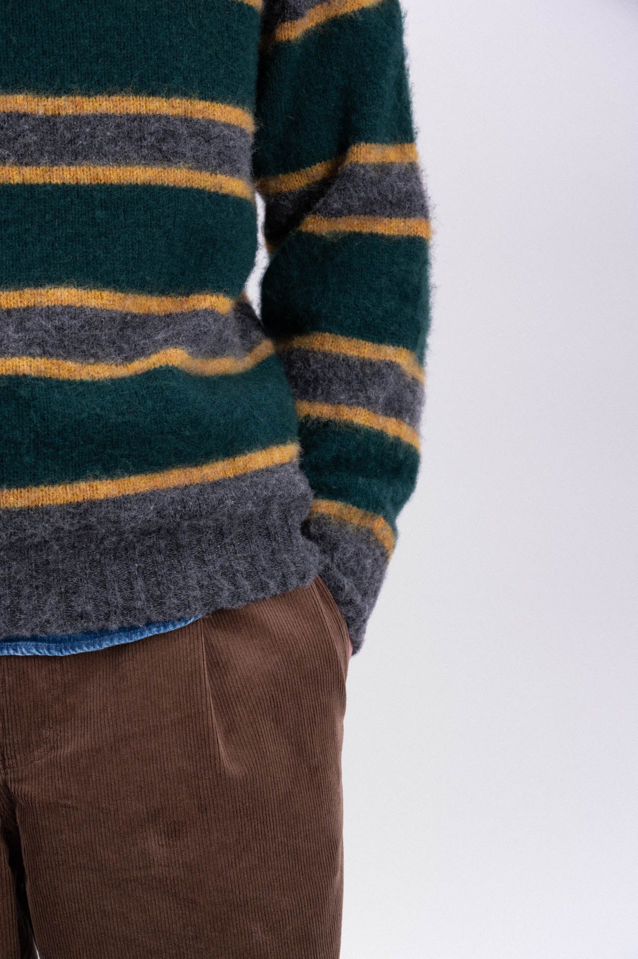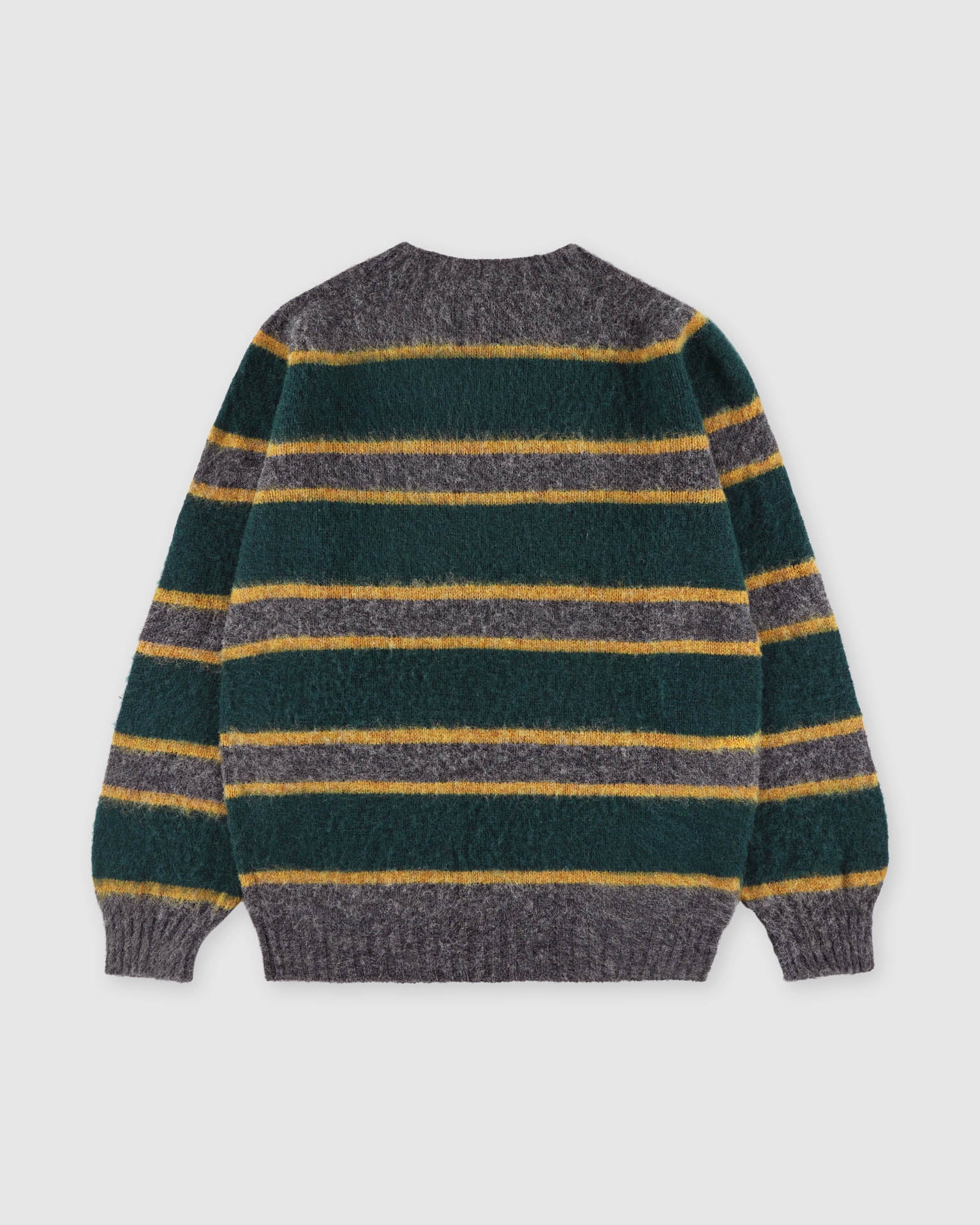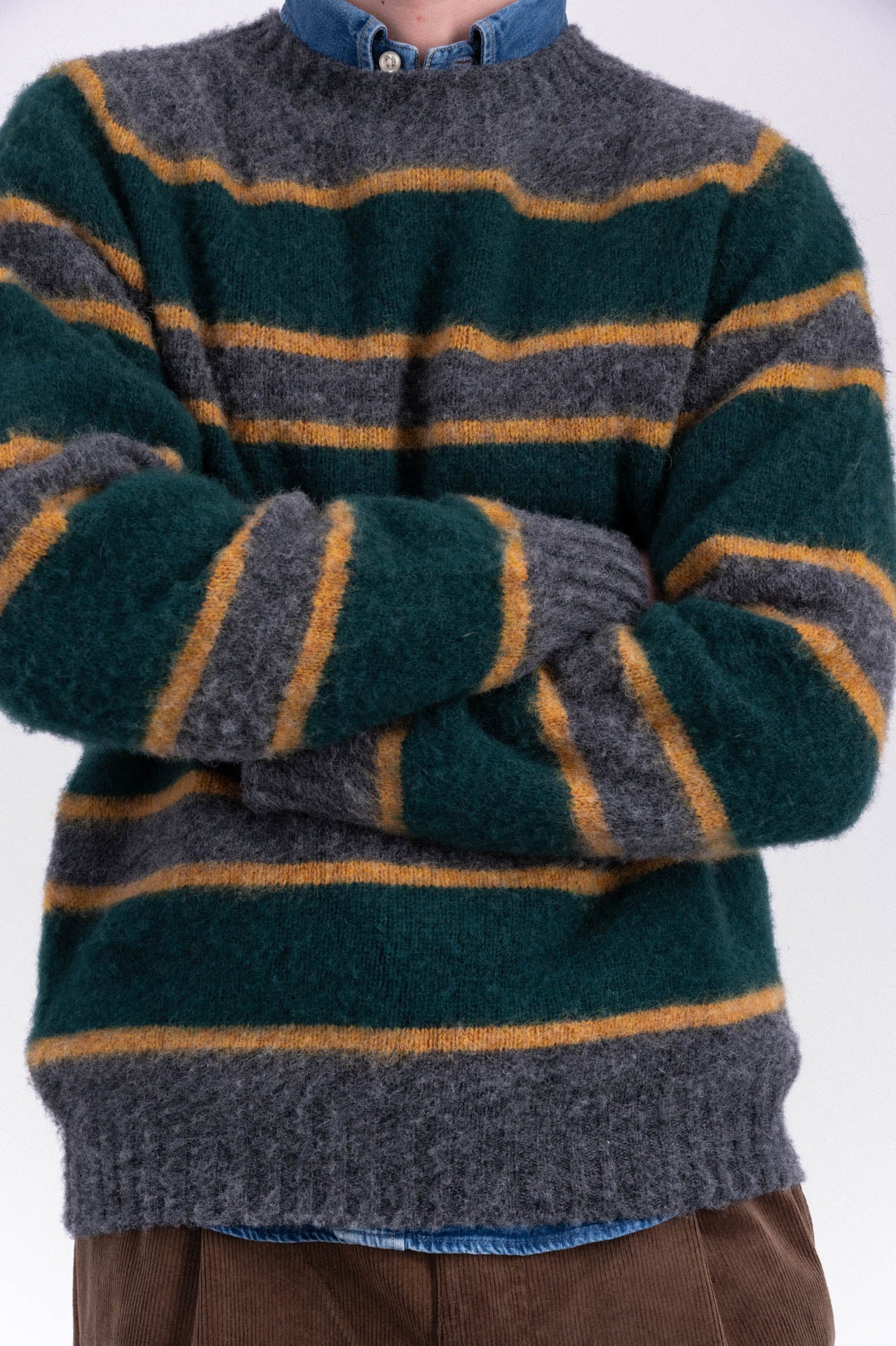 Absolute Belter is a striped, brushed, Shetland-wool jumper by Howlin'.