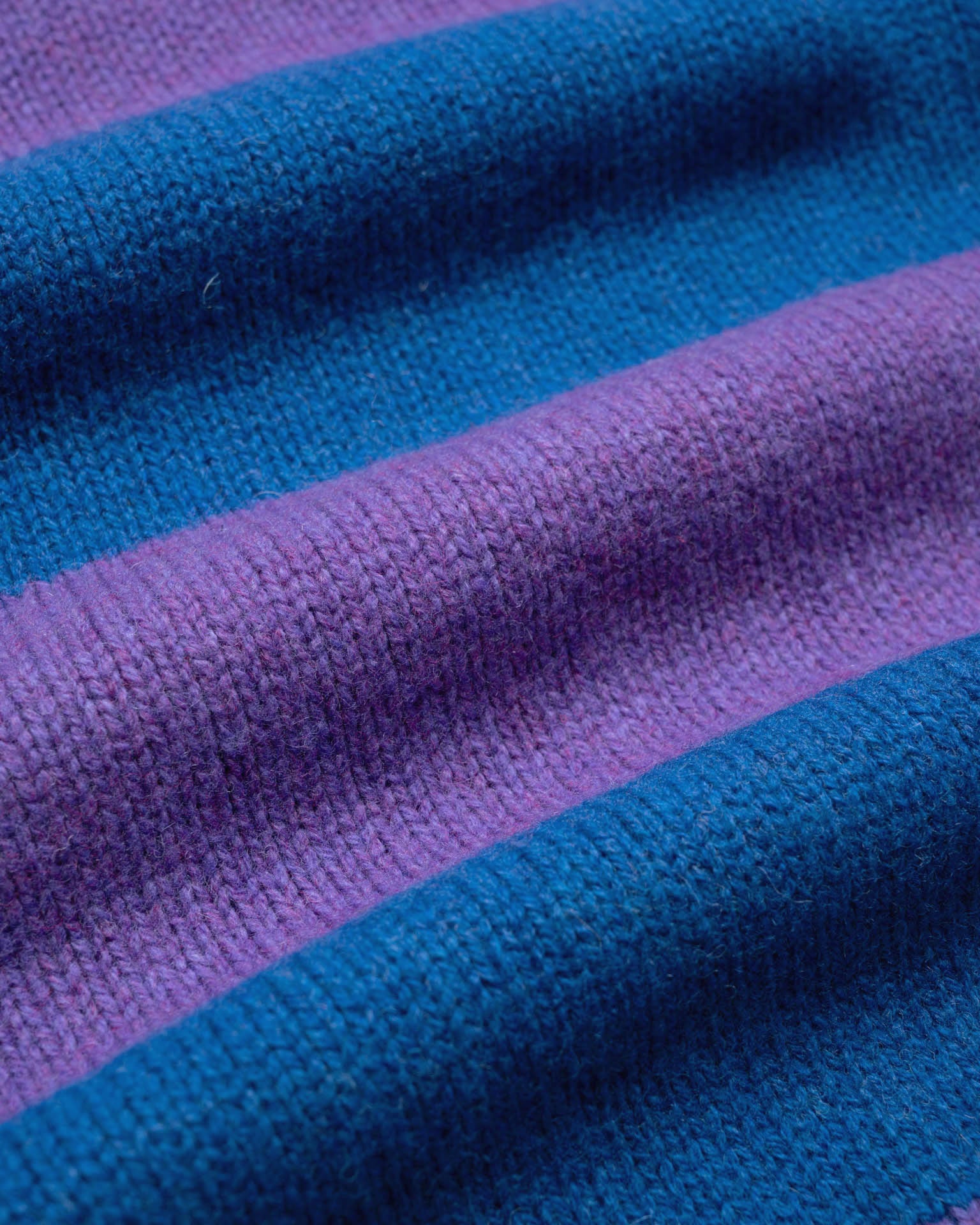Made in Scotland from 100% soft lambswool, it combines bold stripes with elevated craftsmanship. Thanks to a unique washing process, the wool feels exceptionally soft —so much so, it’s often mistaken for cashmere. Constructed using seamless 'whole garment' technology, the fit is smooth and unrestricted, with no stitching between body and sleeves.