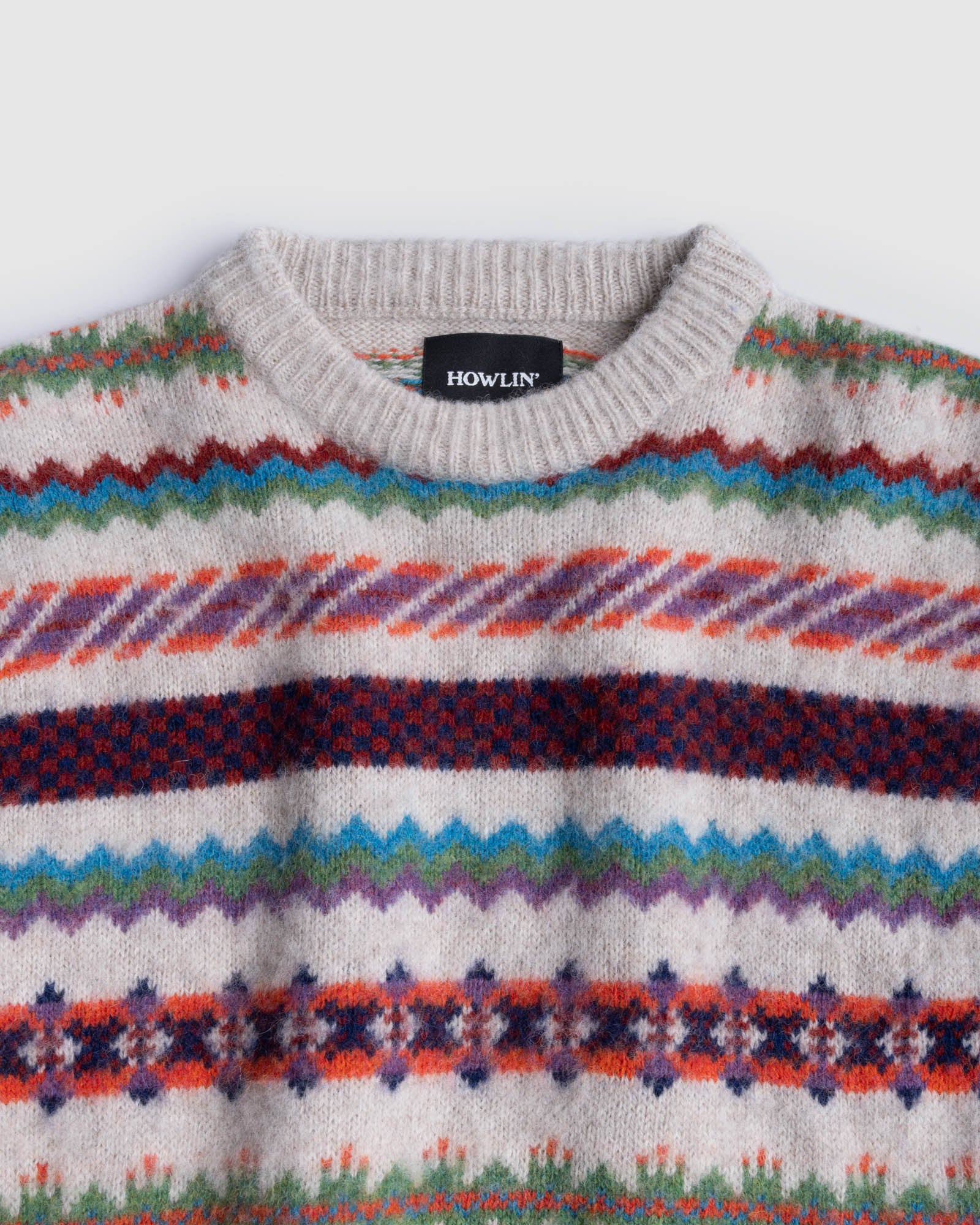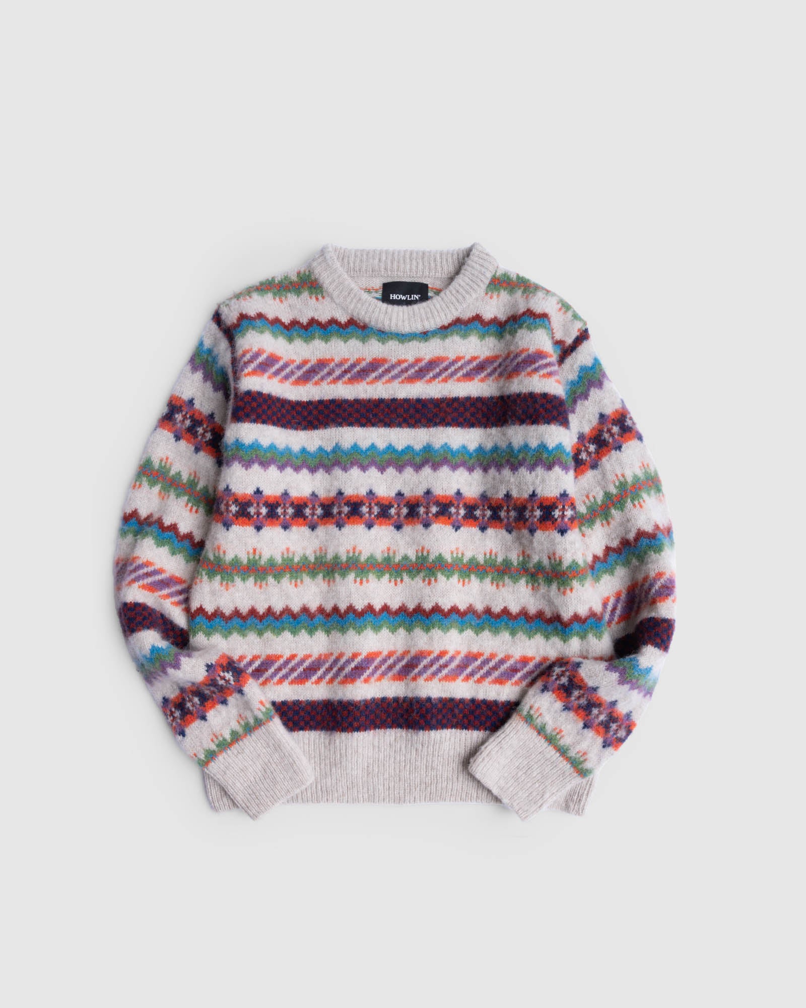 Born In Space is a richly patterned knit and a standout statement piece from Howlin’s new collection, showcasing the brand’s signature blend of tradition and playful design.
