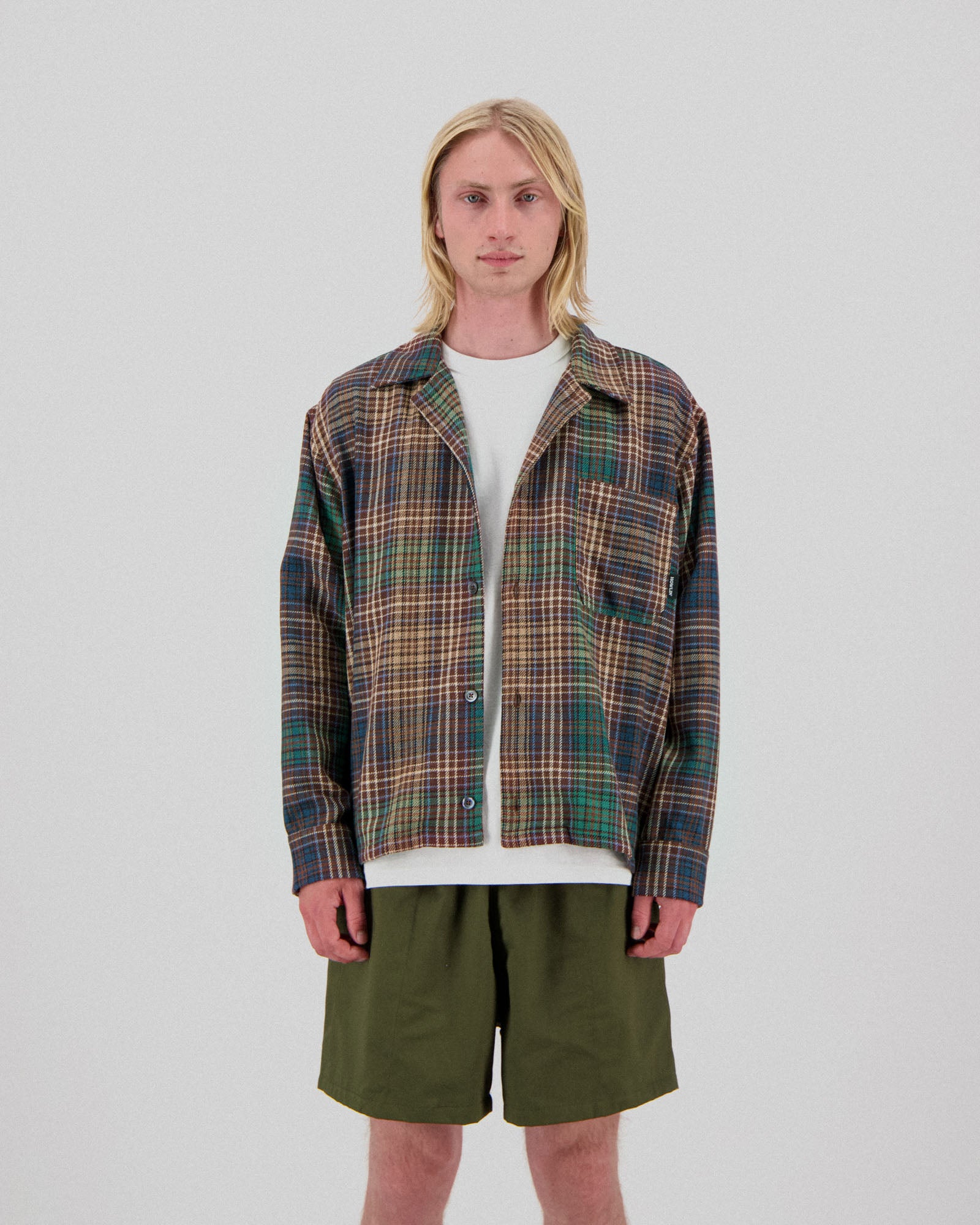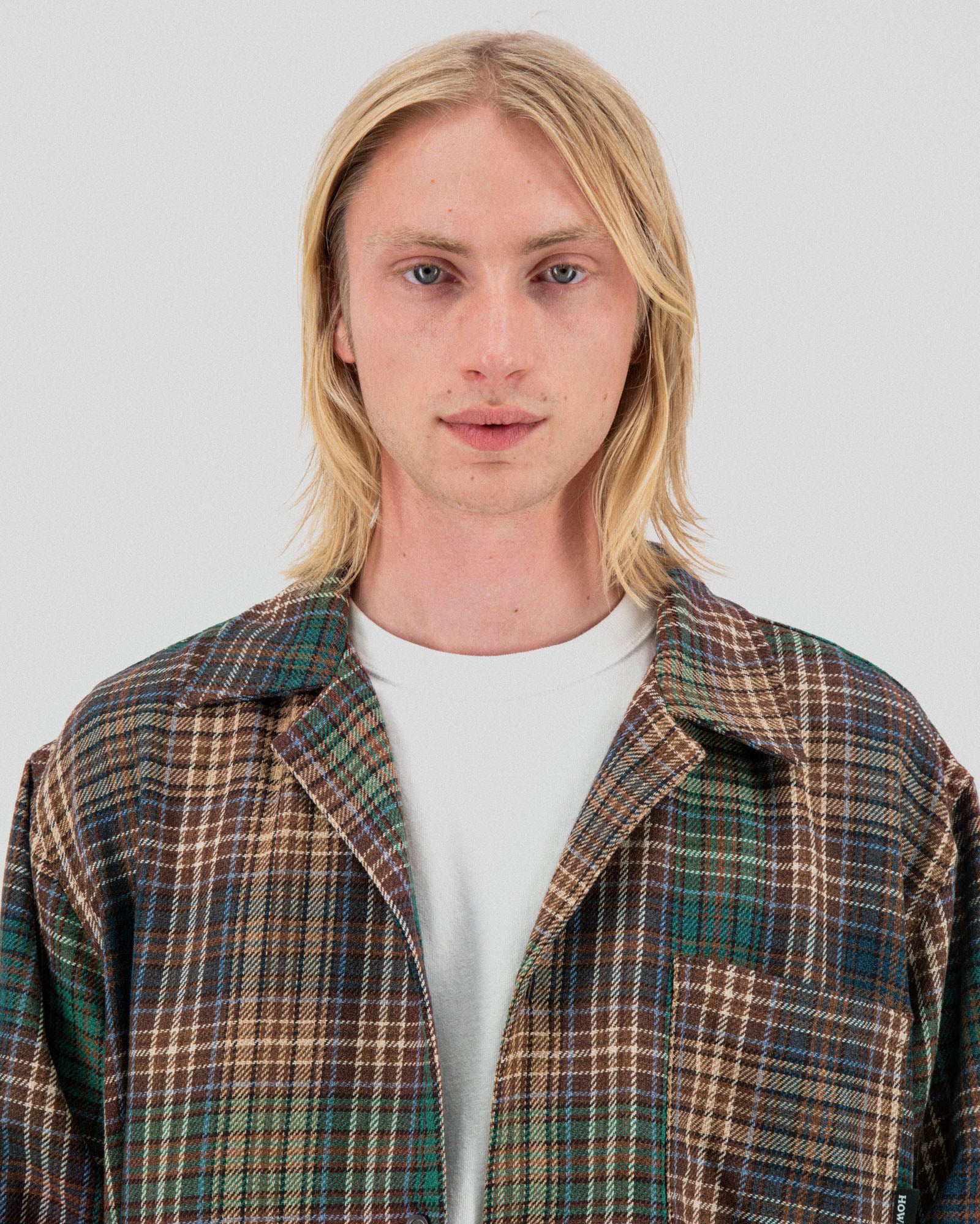 The Boxy Freedom Shirt is cut from an exclusive premium Japanese yarn-dyed cotton twill. This garment features a rich check pattern with deep, woven-in colours. The fabric has a soft yet structured feel, ideal for layering or wearing on its own across seasons.