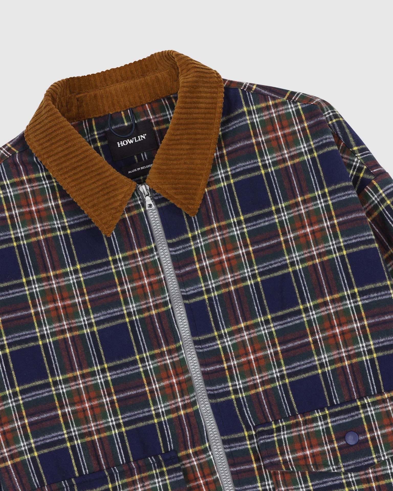 The Boxy Swing Jacket is Howlin's interpretation of the classic swing jacket, a style popular since the 50s among golfers and youth subcultures around the world. Featuring a tartan pattern, the jacket stands out with its rich brown corduroy collar.