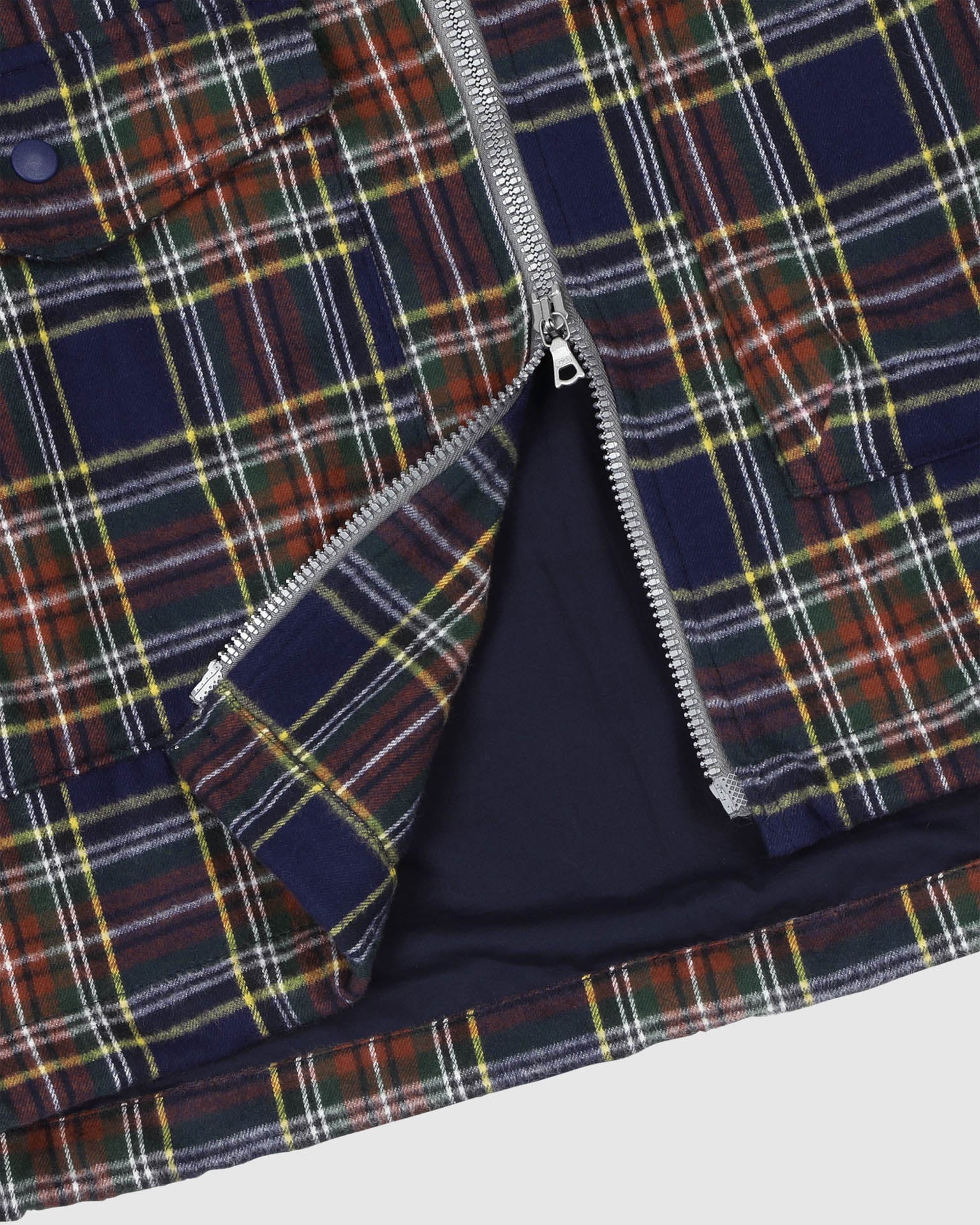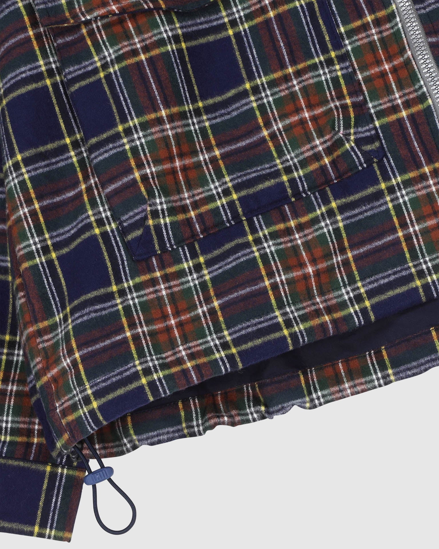 The relaxed, boxy fit is complemented by large front flap pockets and a full metal zip closure. Adjustable drawcords at the hem offer functional versatility, making this jacket as practical as it is eye-catching.
