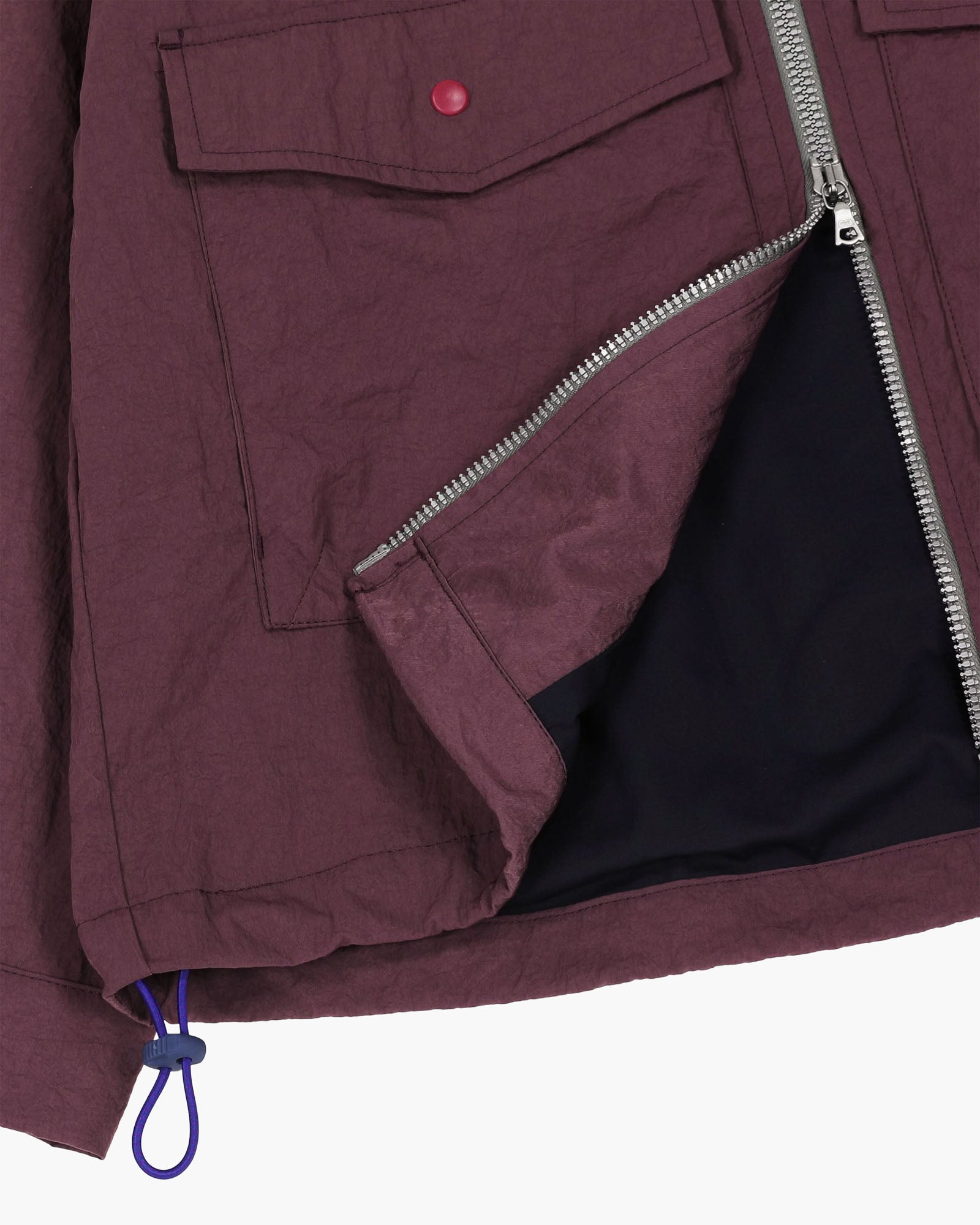 This mid-weight nylon twill offers a soft yet structured feel, combining durability with a unique, worn-in character. Its subtle sheen and natural crinkle effect result from traditional sun-drying techniques, a finishing method that uses significantly less water than conventional industrial washing while giving each piece its own individual look. Designed for everyday wear, it balances technical performance with a relaxed, lived-in aesthetic.