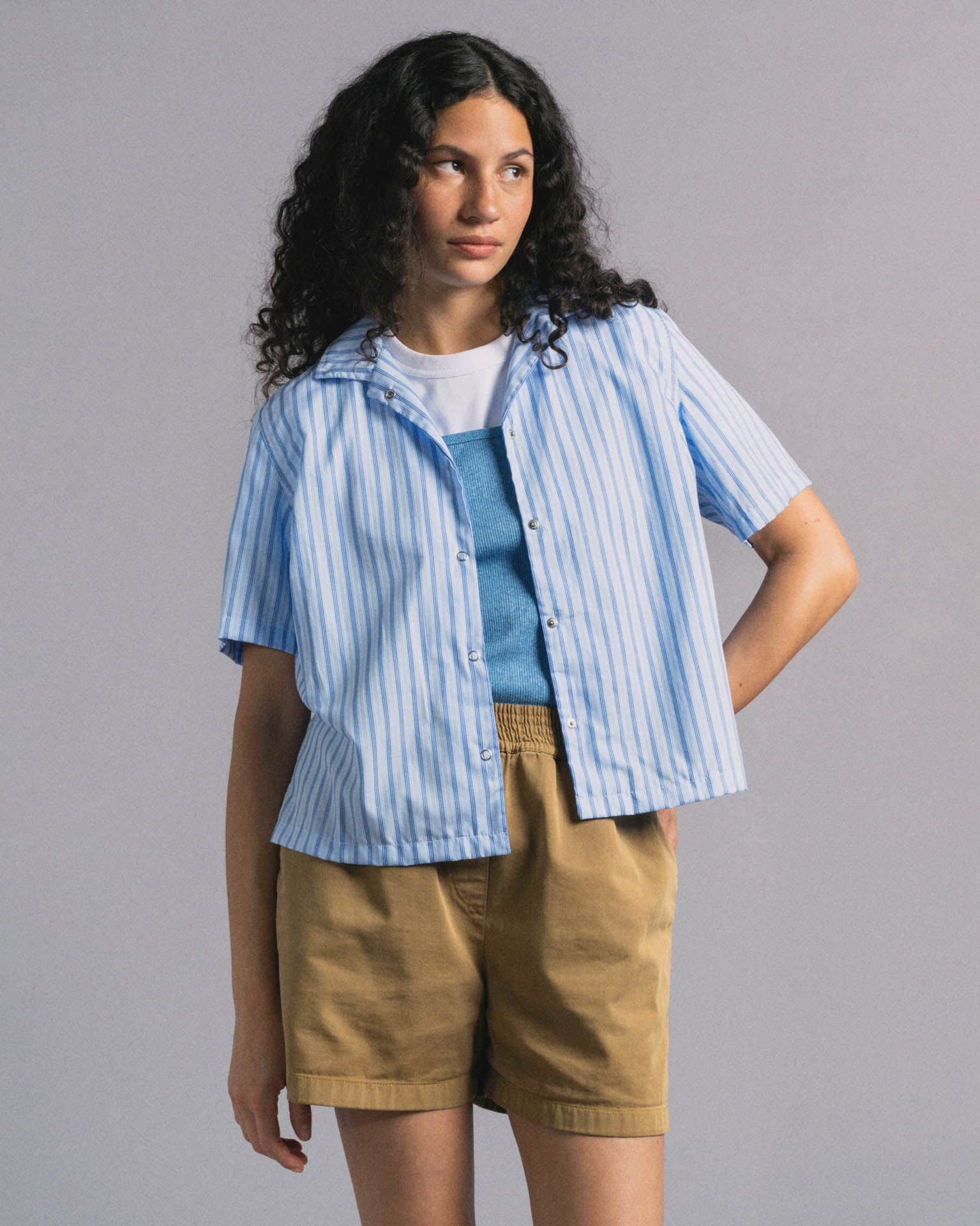 Fine Stripes is a super-lightweight fabric made from 100% organic cotton that's breathable, soft, and kind to the skin. Its finely woven structure offers an airy feel, making it ideal for warm weather and effortless layering. Subtle vertical stripes add a refined texture while keeping the look timeless and clean. Naturally comfortable and consciously made, Fine Stripes is a staple for easy, everyday wear.