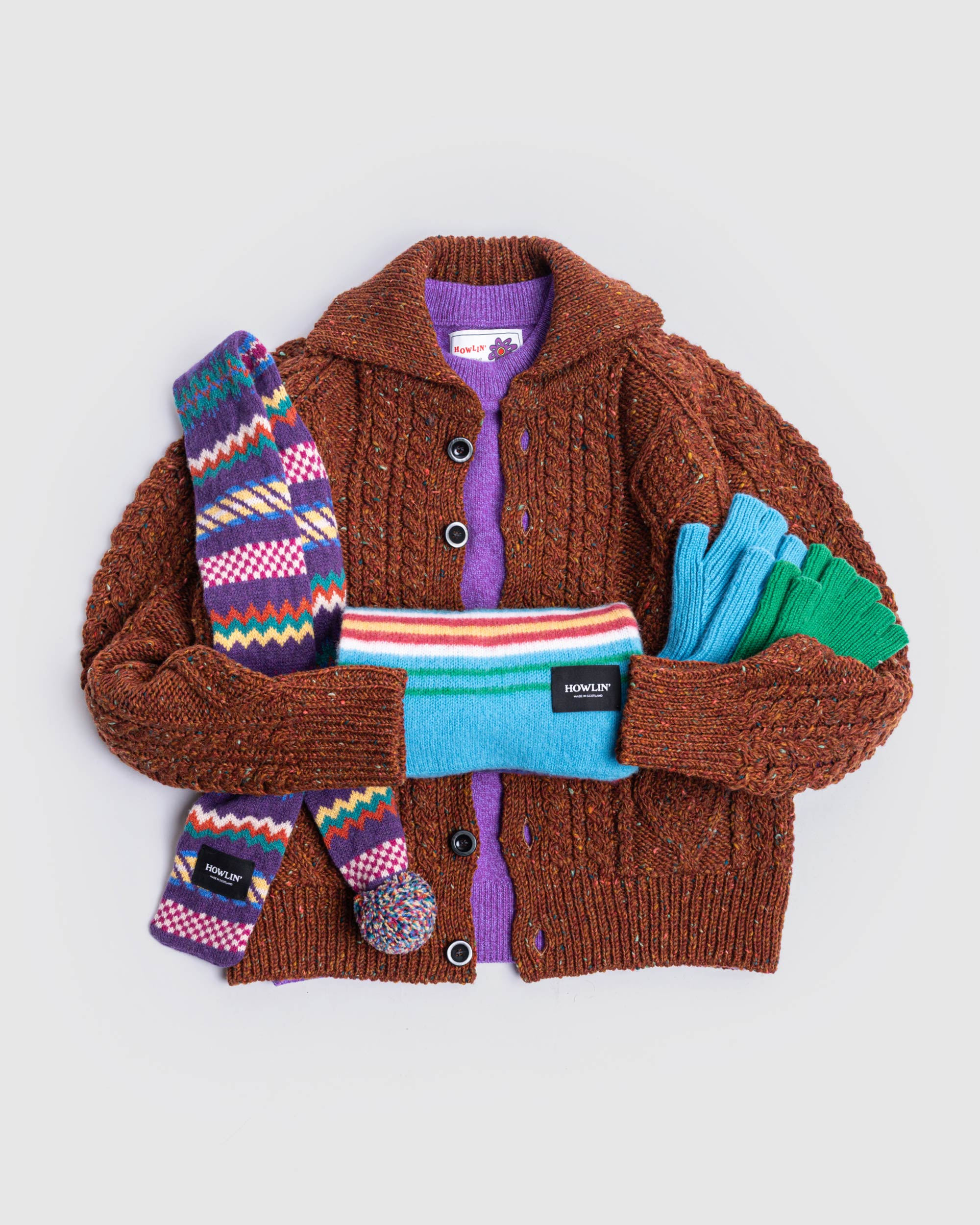 Howlin’s College Fun Scarf is a striped scarf crafted in Scotland with a 100% natural lambswool yarn.