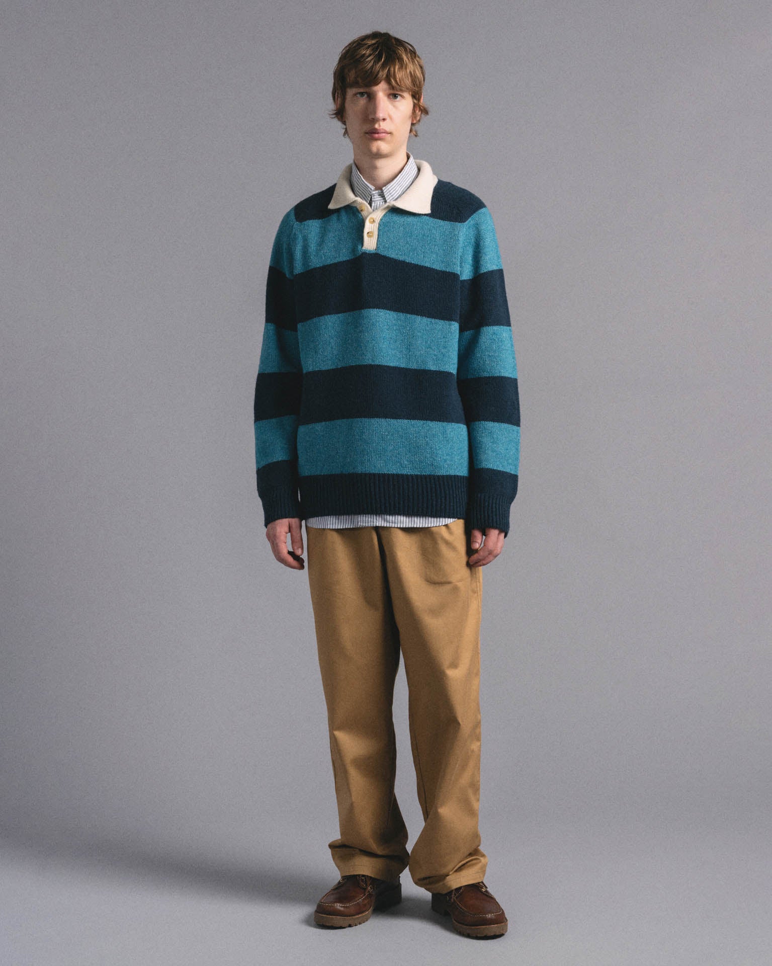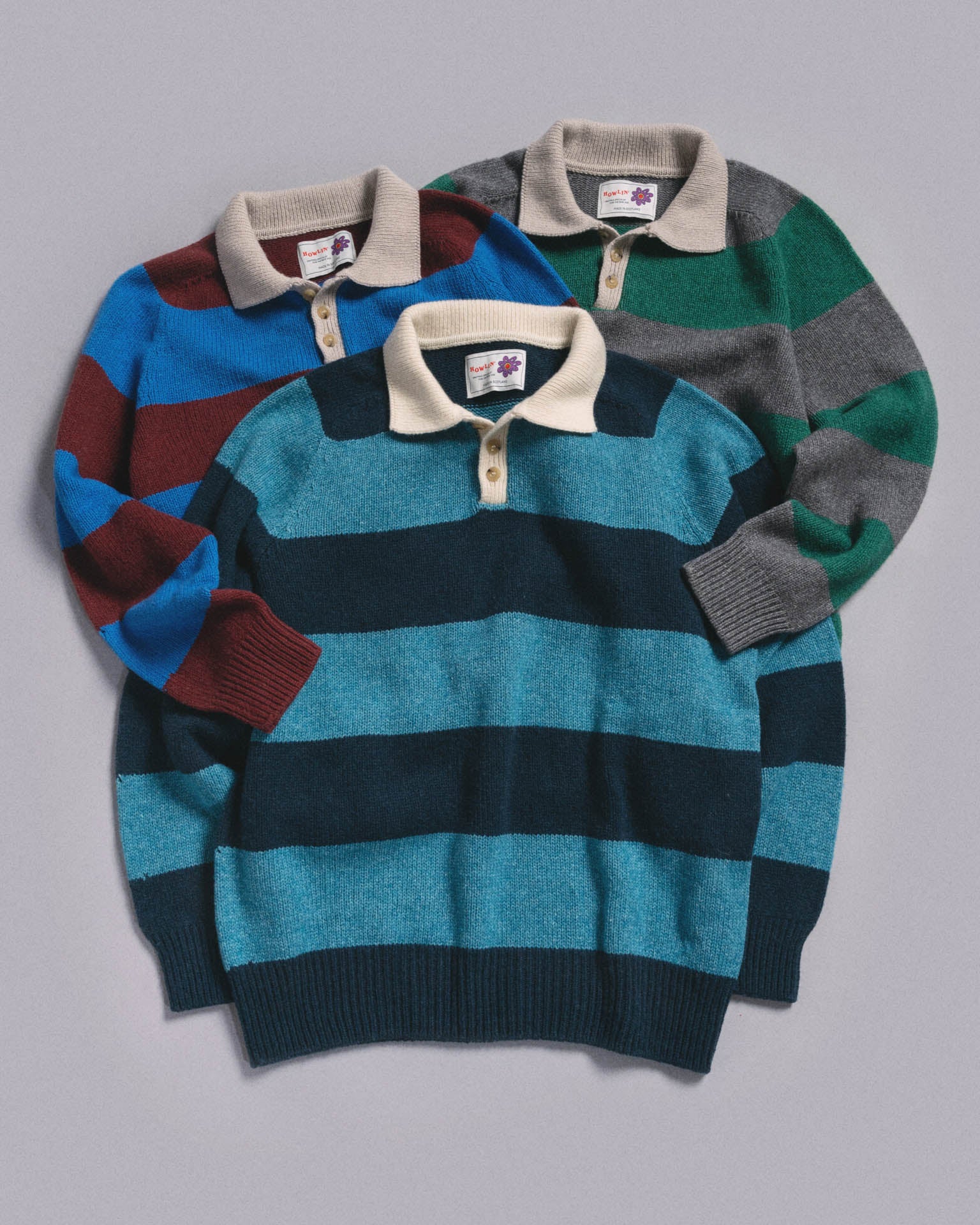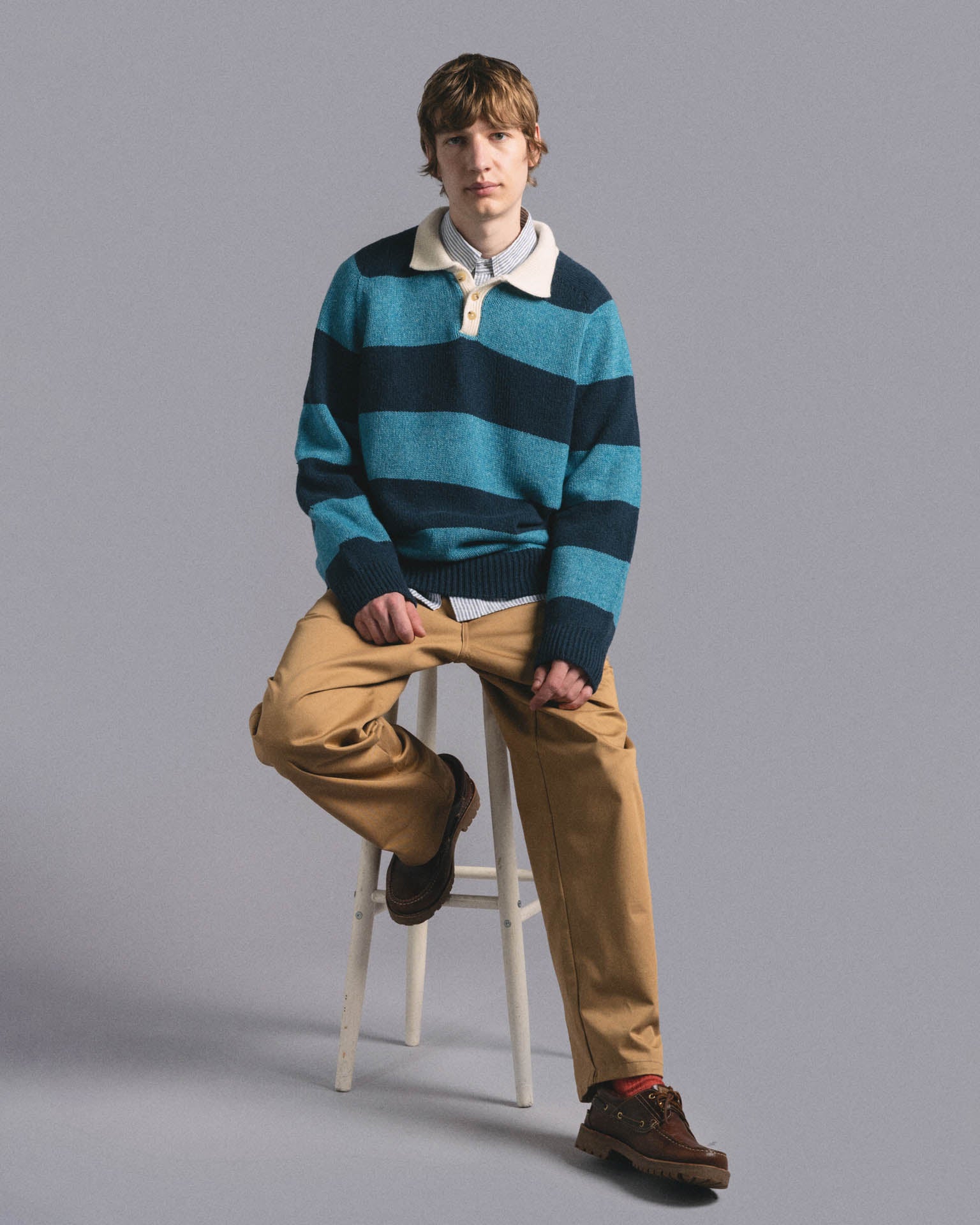 College Is Fun is Howlin's knitted take on the classic rugby polo, made from organic cotton and lambswool in Scotland.