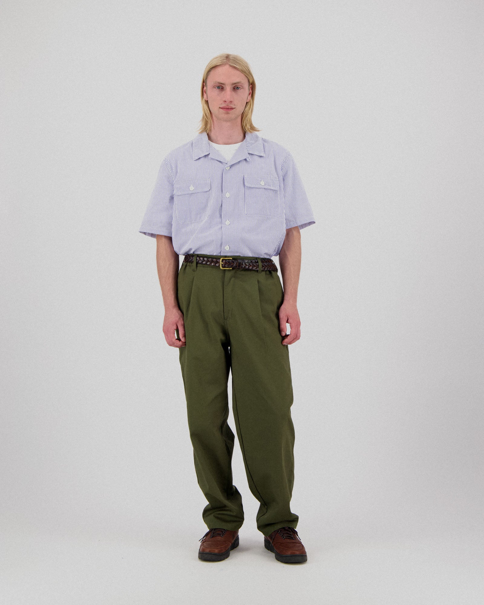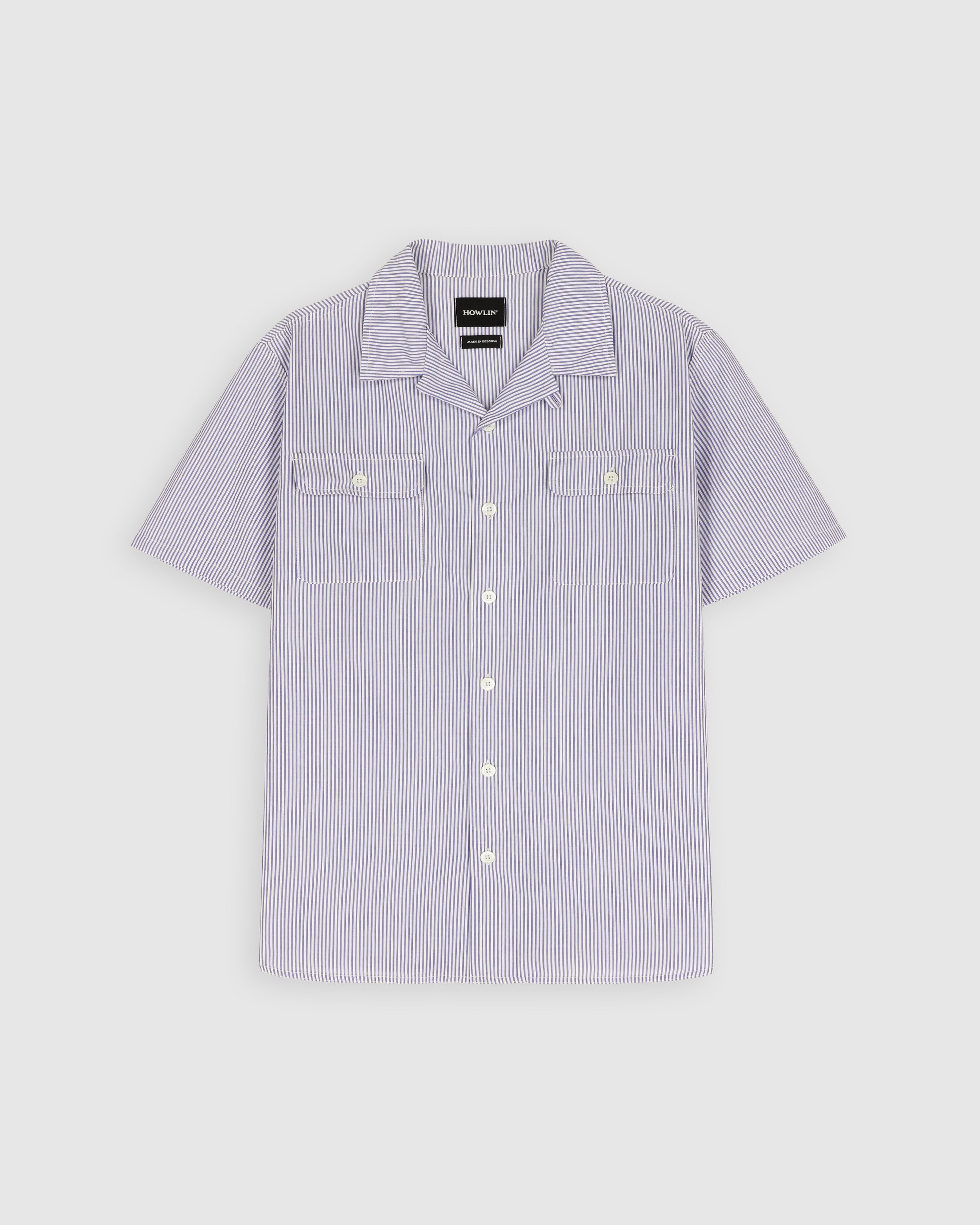 The Cool Breeze Shirt is a short-sleeved shirt with custom Howlin' mother-of-pearl buttons and is cut from seersucker, a breathable fabric known for its comfort, practicality, and durability.