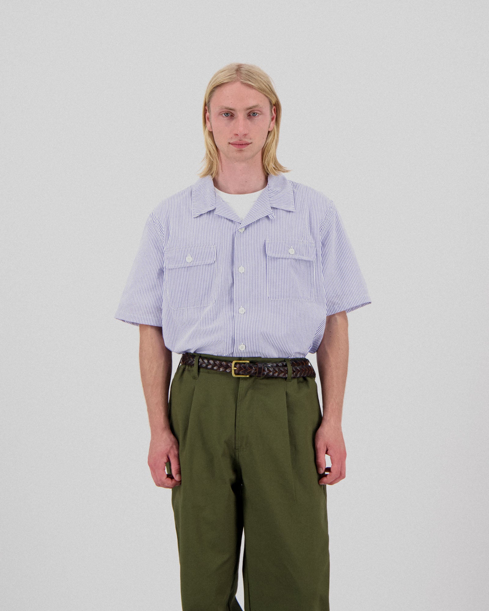 With its signature puckered texture, it's made for warm weather. The fabric's unique surface creates space between the skin and the cloth, helping heat escape and improving airflow. Naturally airy with a lightweight feel, seersucker is the ideal choice for the hotter months.