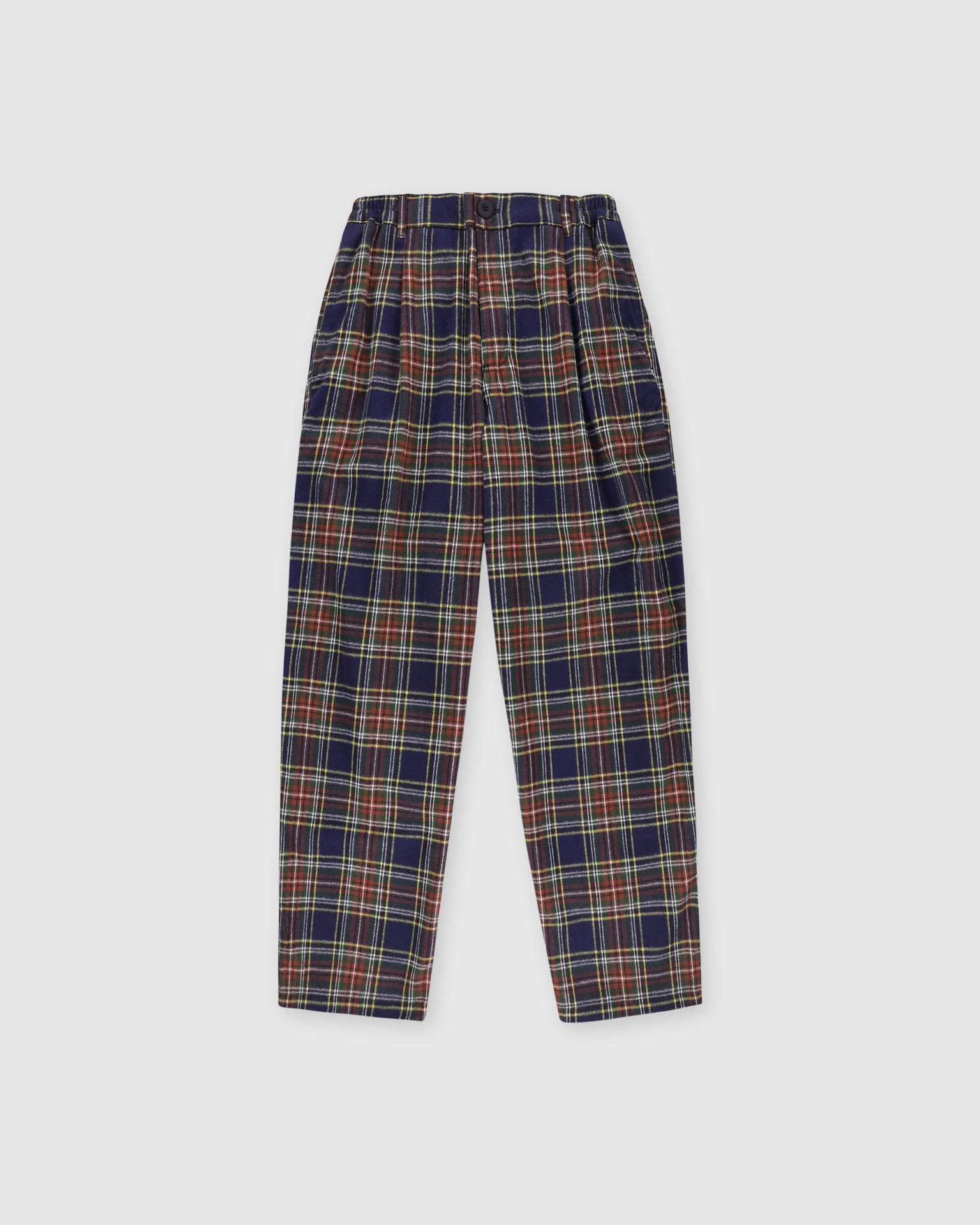 The Cosmic Pants are crafted from a premium tartan fabric, offering elevated comfort without compromising on style. Designed with a relaxed silhouette, they feature an elasticated waistband for an easy fit, along with front pleats for a tailored touch.