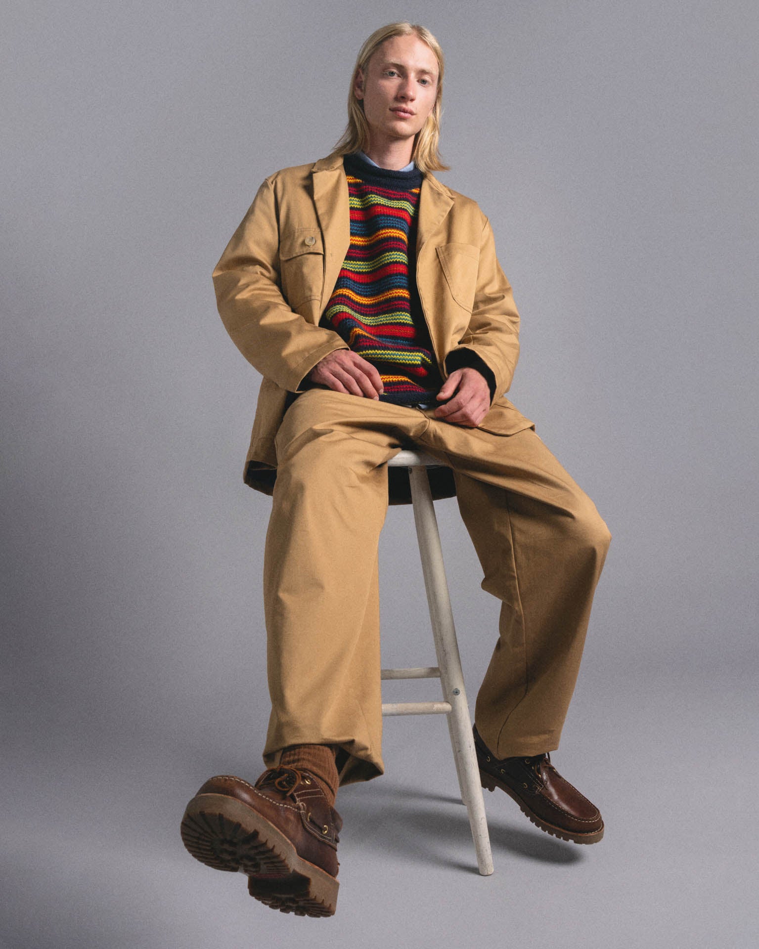 Cosmic Pants, the (in)famous trousers with a slightly wider fit and made in Belgium. This classic cotton twill offers a soft hand feel with a clean, structured look.