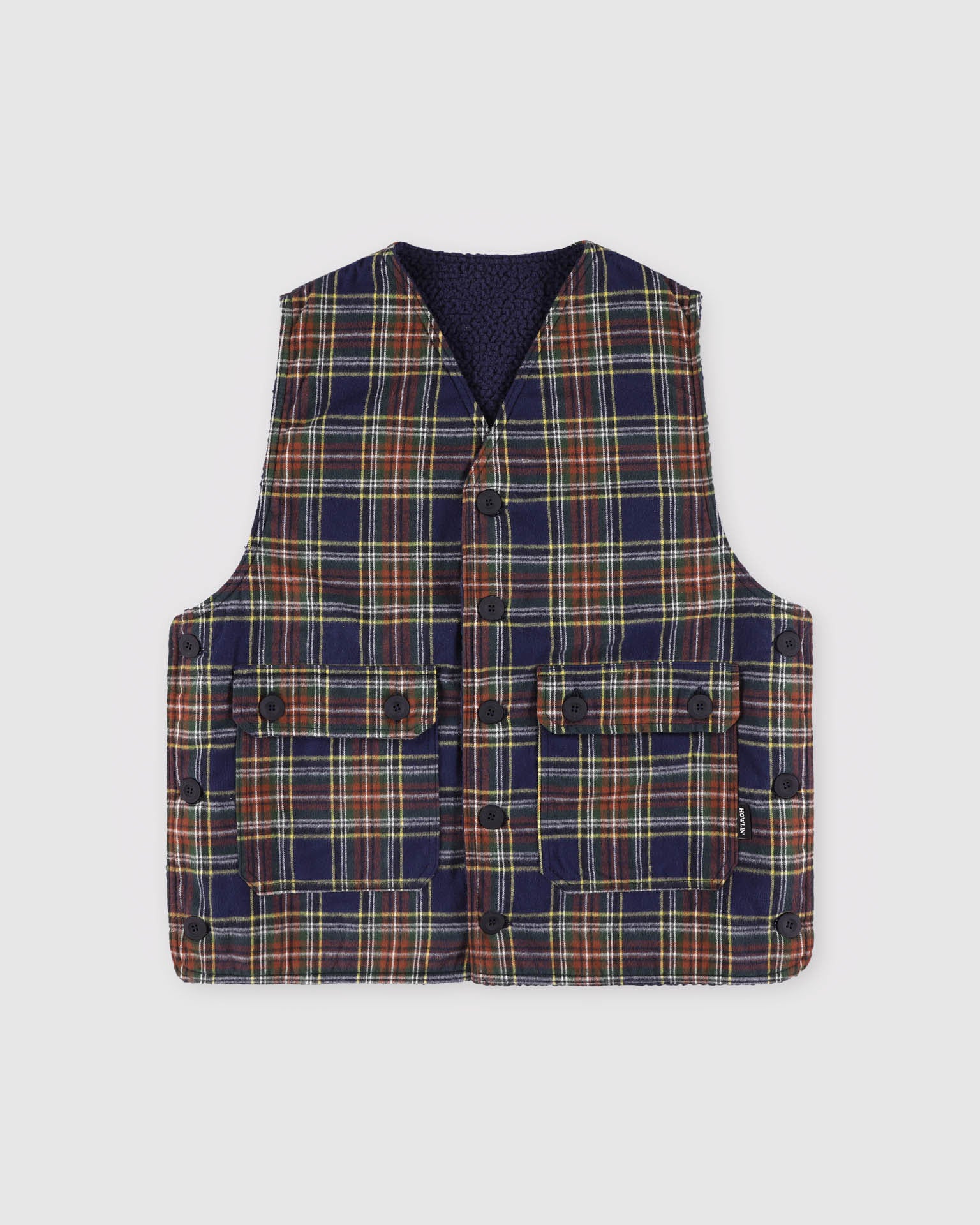 The Cosmic Vest is crafted from a premium tartan fabric, offering elevated comfort without compromising on style. The Cosmic Vest is lined in shearling, making it the perfect extra-warm layer for winter.