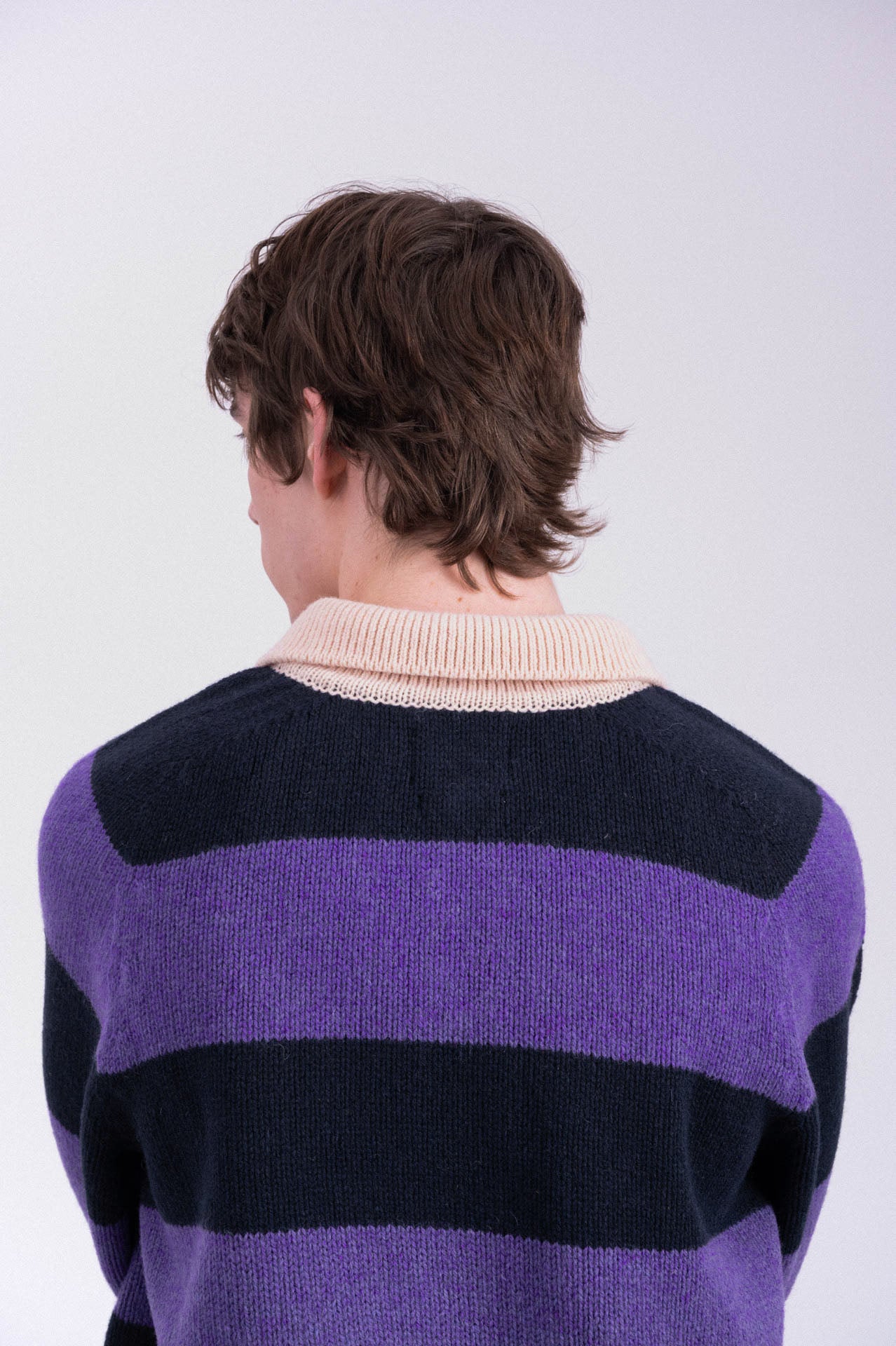 Made in Scotland from 100% soft lambswool, it combines bold stripes with elevated craftsmanship. Thanks to a unique washing process, the wool feels exceptionally soft —so much so, it’s often mistaken for cashmere. Constructed using seamless 'whole garment' technology, the fit is smooth and unrestricted, with no stitching between body and sleeves.