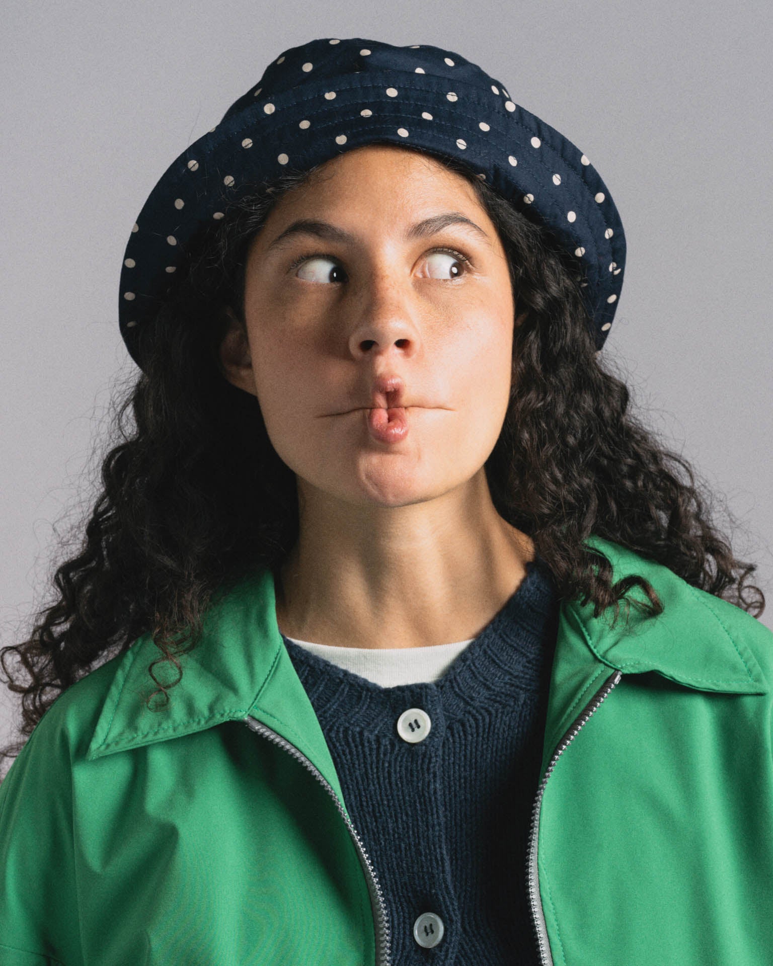 This Japanese fabric features a classic polka dot pattern on soft, breathable cotton. Lightweight and comfortable, it adds a touch of character without compromising on versatility.