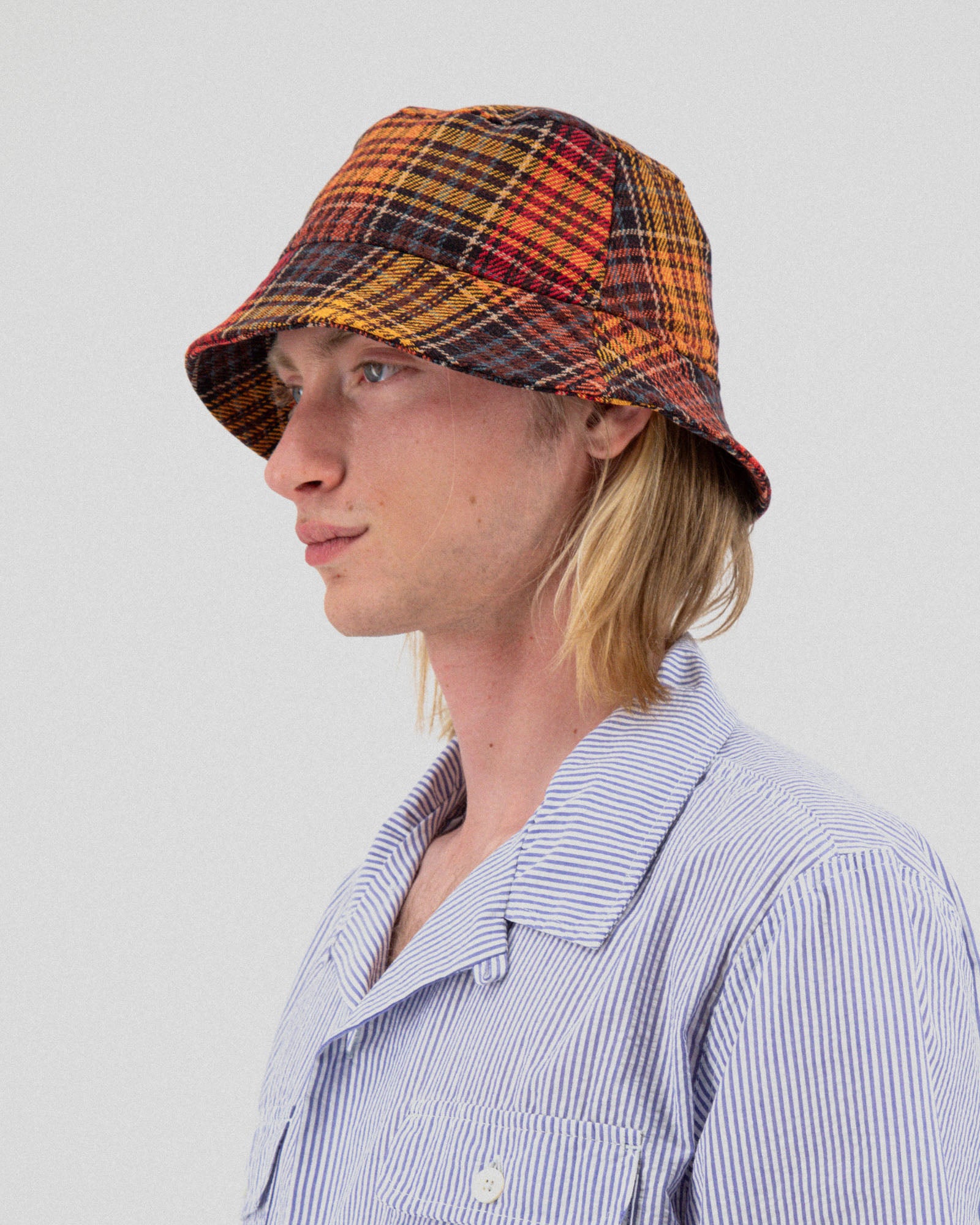 Cut from an exclusive premium Japanese yarn-dyed cotton twill, this hat features a rich check pattern with deep, woven-in colours. The fabric has a soft yet structured feel, ideal for layering across seasons.