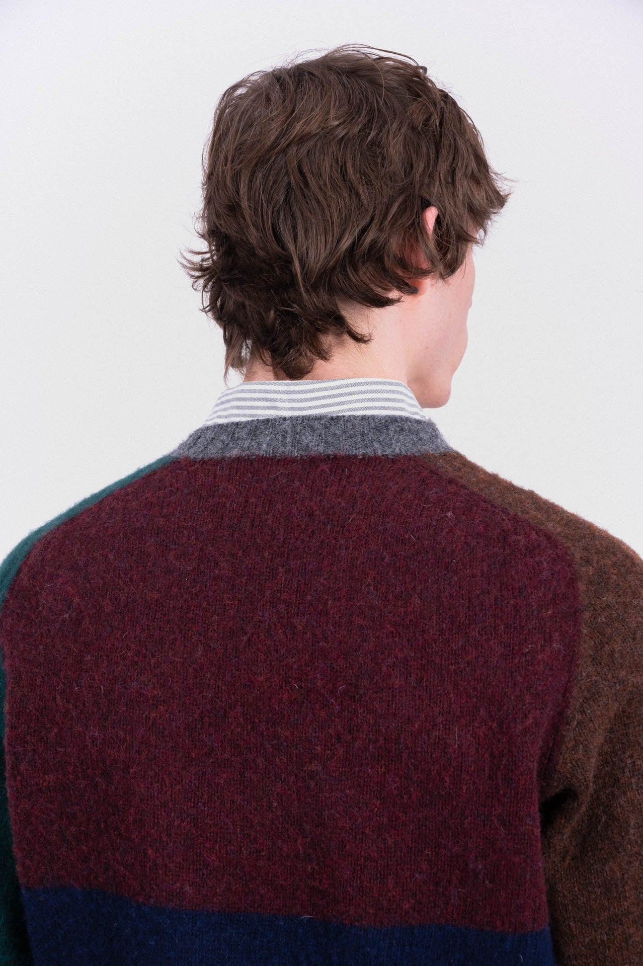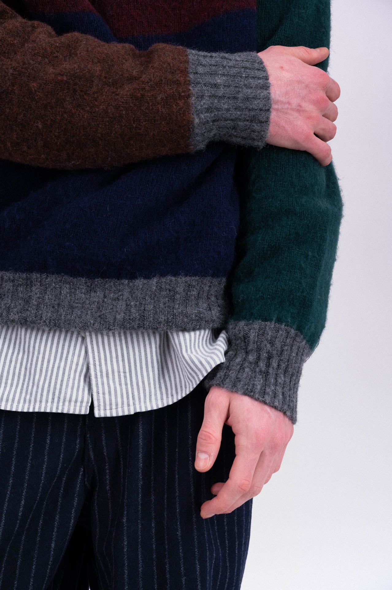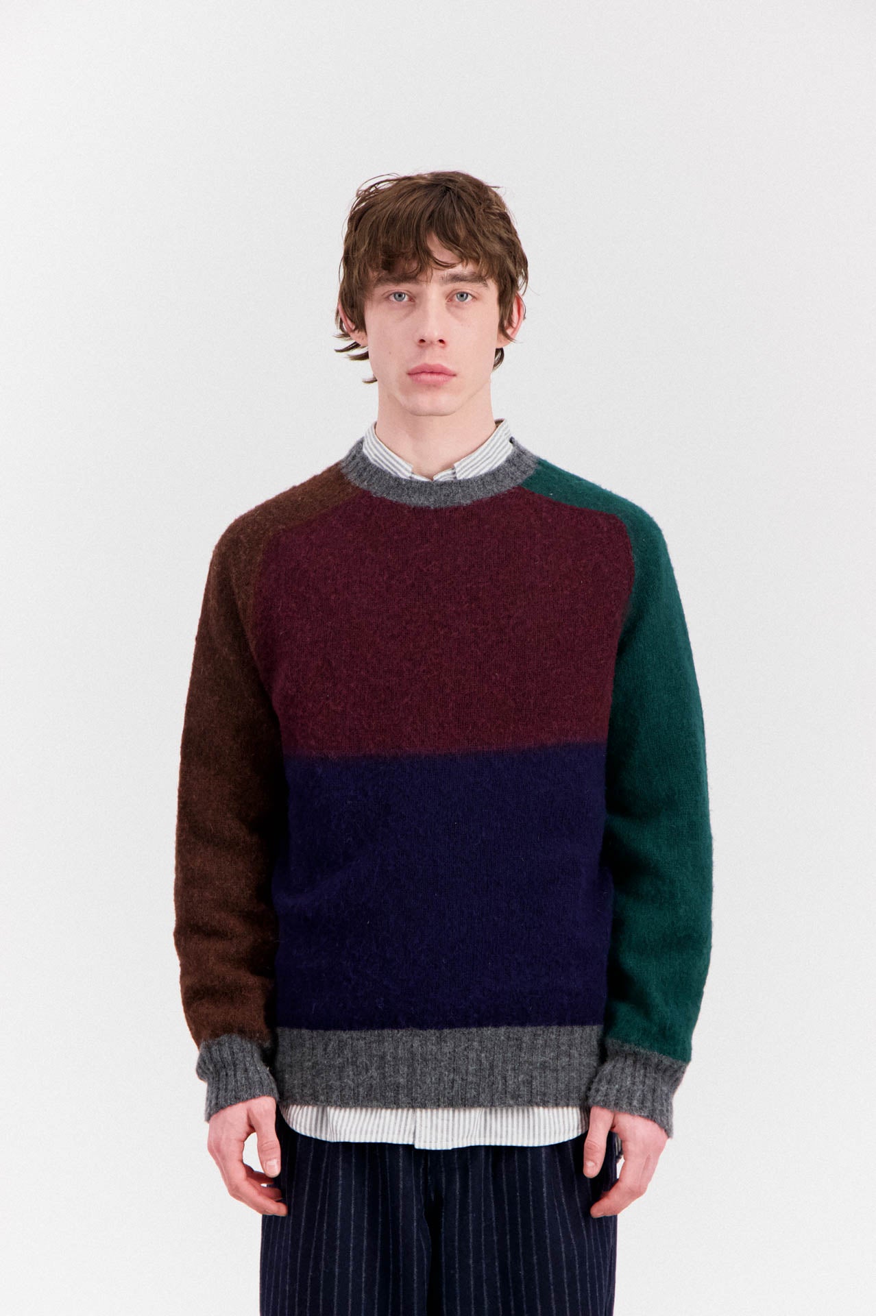 Firecracker by Howlin’ is a celebration of color, texture, and individuality. This signature crewneck sweater is crafted in Scotland. Each version of the Firecracker features bold, contrasting color blocks—carefully chosen for maximum visual impact without compromising wearability.