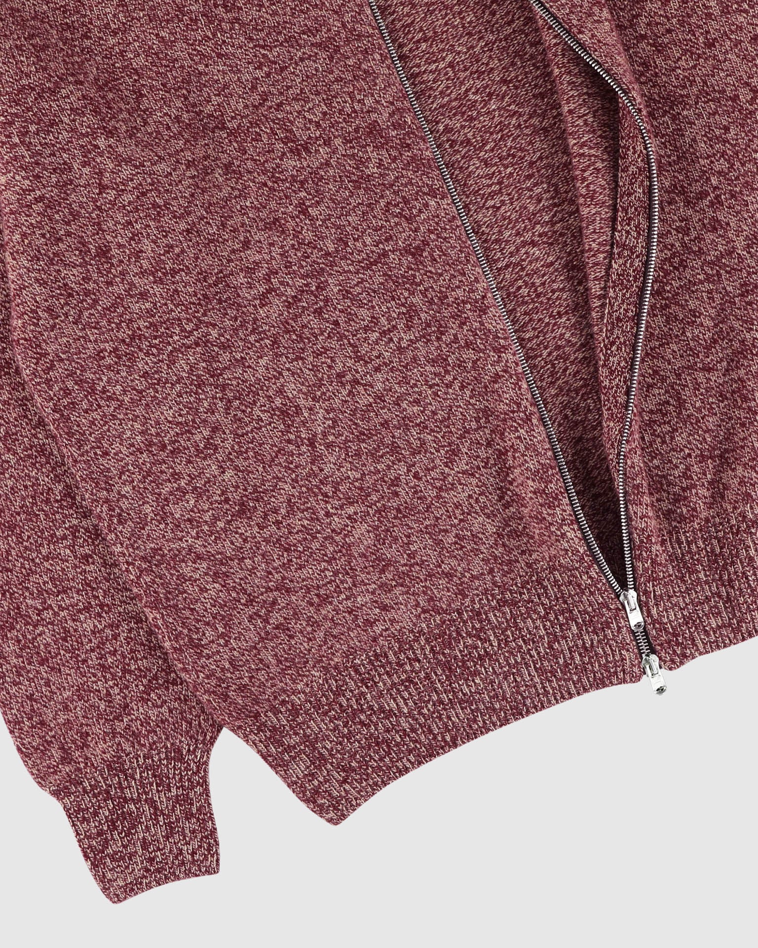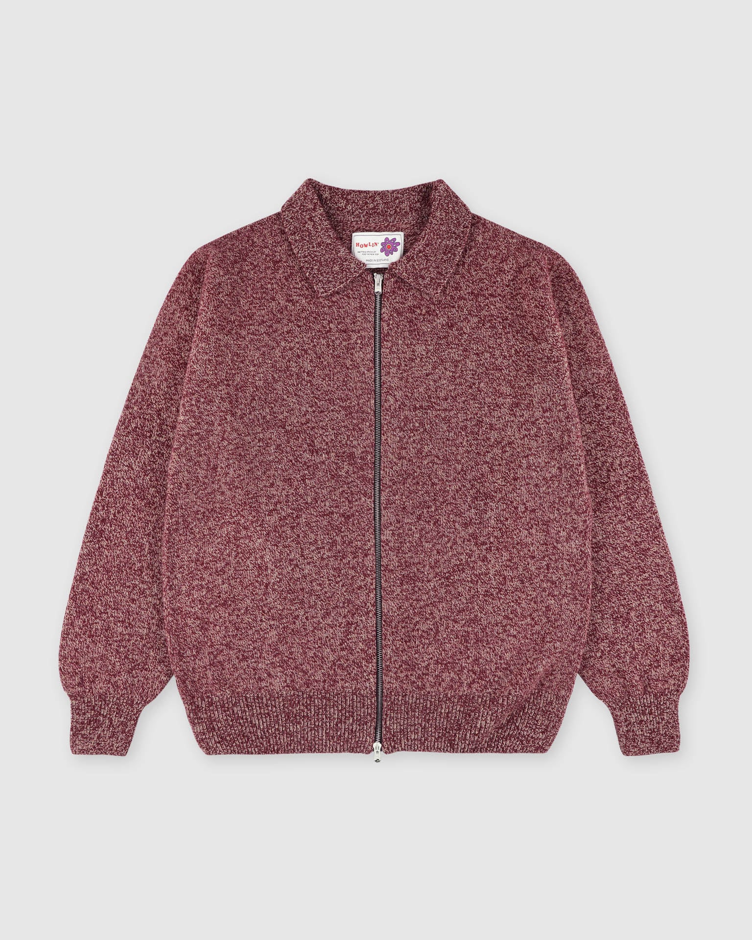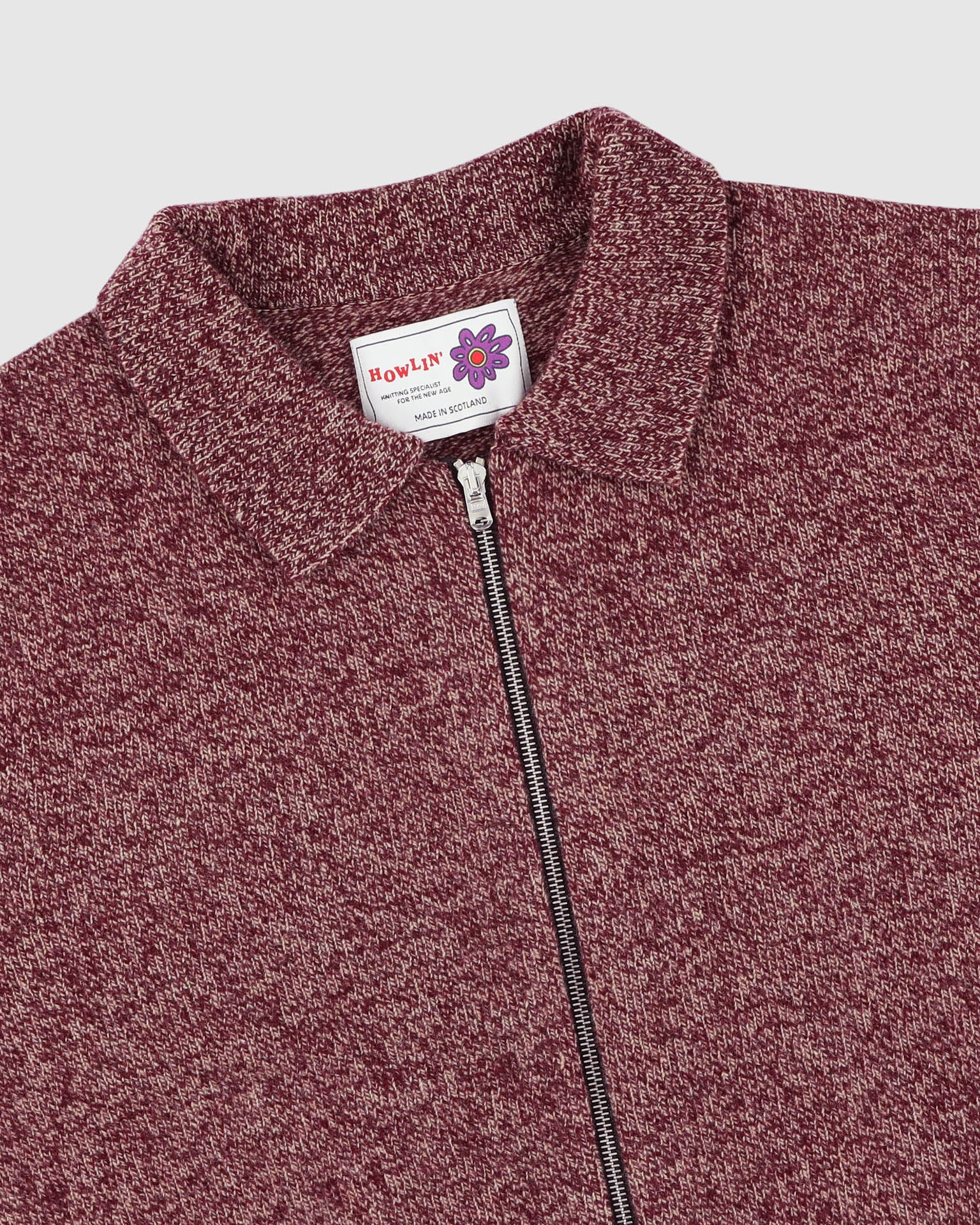 High Pressure is a double-zip collared cardigan, expertly knitted in Scotland using our exclusive marled lambswool—each piece blending two distinct yarn colors. The palette ranges from soft, muted hues to bold, vibrant tones.
