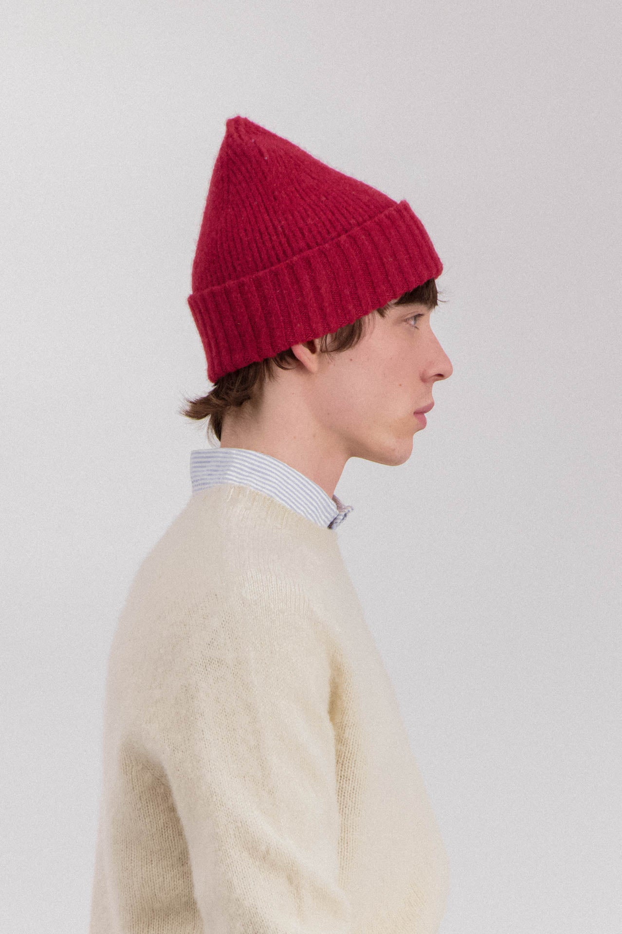 It's crafted in Scotland with a 100% natural lambswool yarn. Our lambswool comes from the first shearing of the Merino breed of sheep, which is known to produce the softest and finest wool. This natural wool is considered the most reusable and recyclable apparel fibre on the planet. Above all, it can breathe, is elastic, gives natural odour control, warms us when we are cold, and cools us when we overheat.