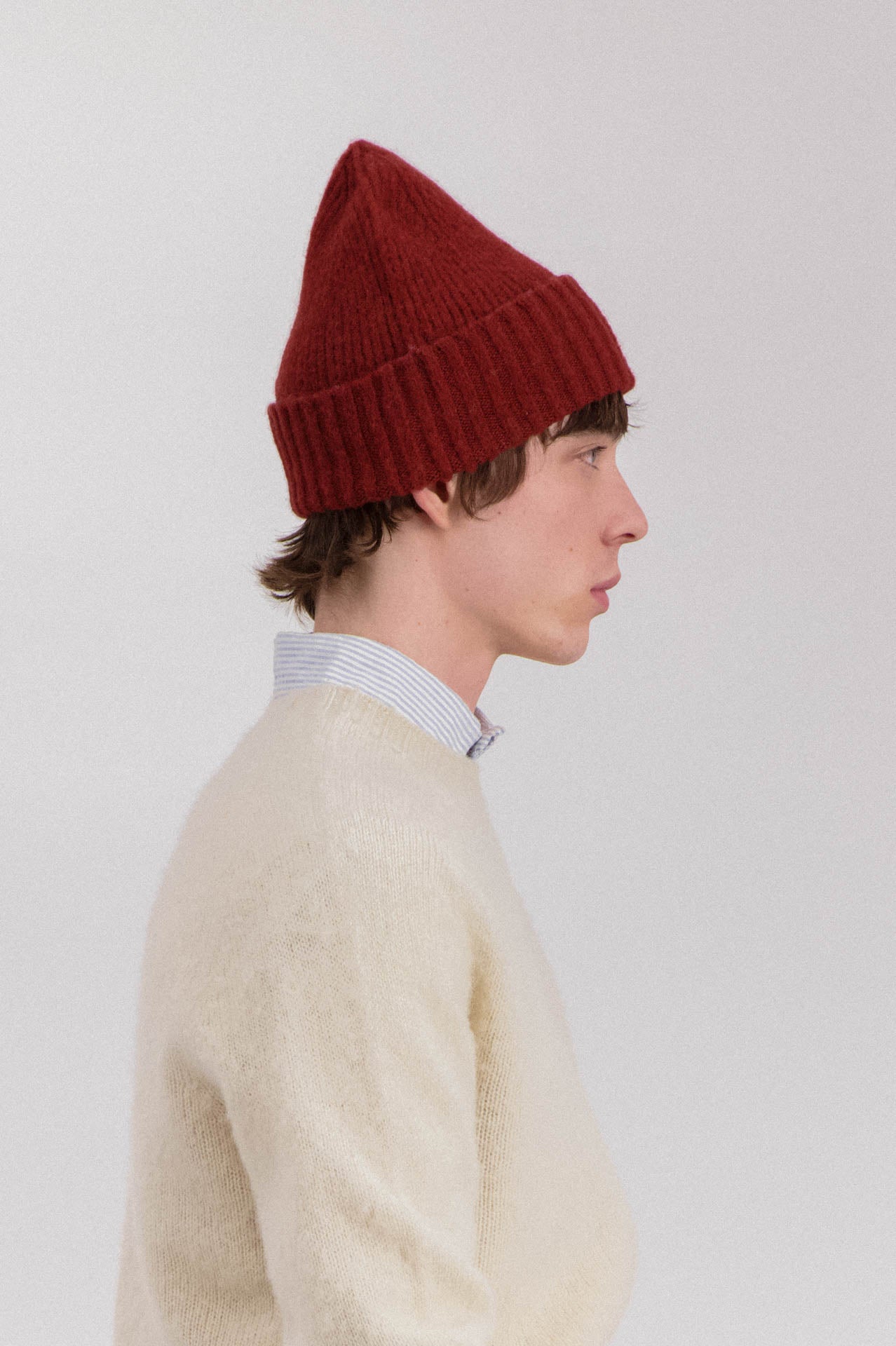 It's crafted in Scotland with a 100% natural lambswool yarn. Our lambswool comes from the first shearing of the Merino breed of sheep, which is known to produce the softest and finest wool. This natural wool is considered the most reusable and recyclable apparel fibre on the planet. Above all, it can breathe, is elastic, gives natural odour control, warms us when we are cold, and cools us when we overheat.