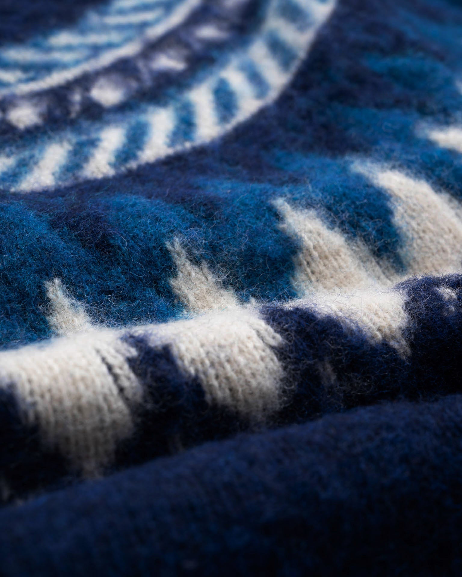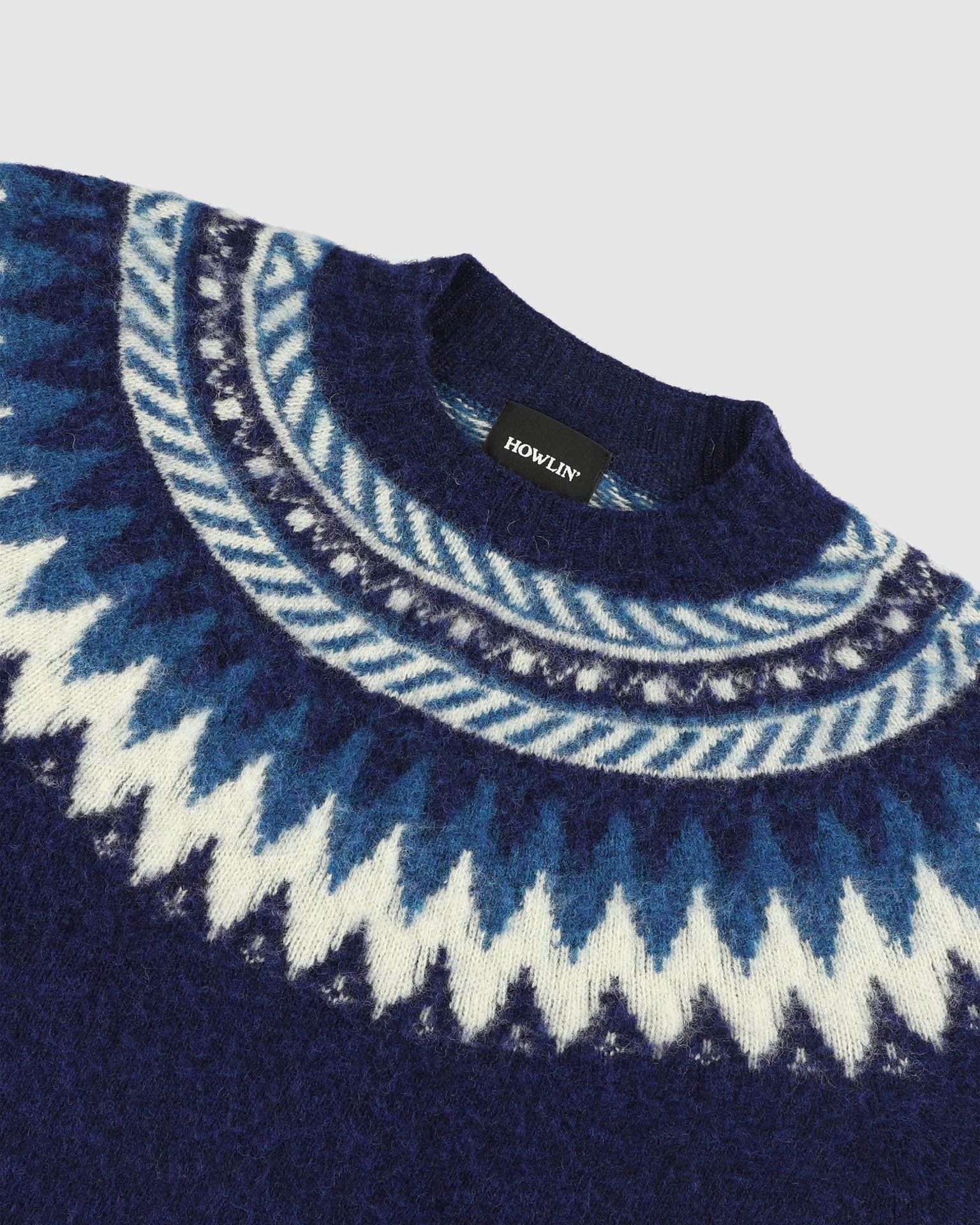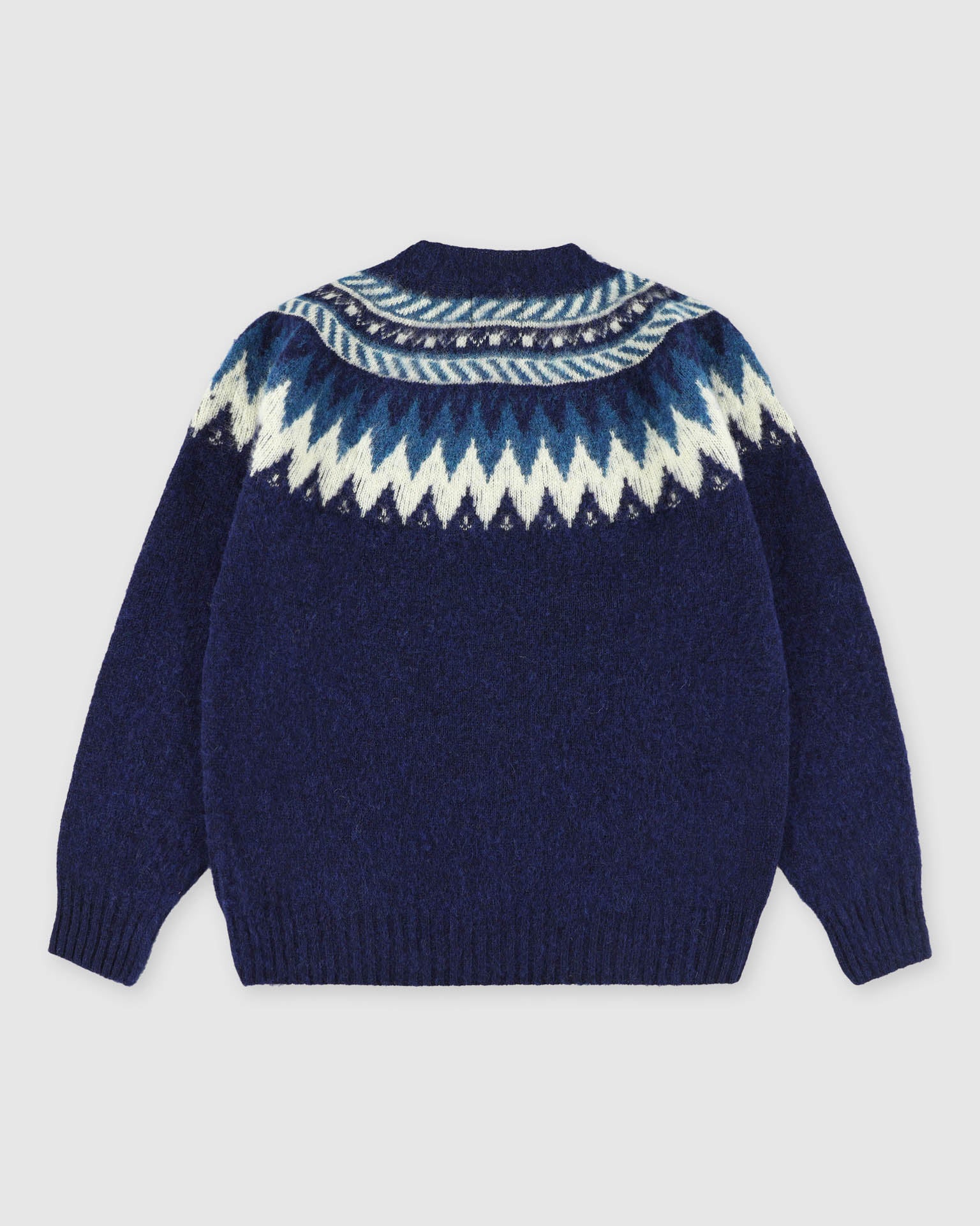 Defined by its intricate jacquard-knit yoke and distinctive zigzag patterning, this sweater fuses timeless craftsmanship with a classic print.