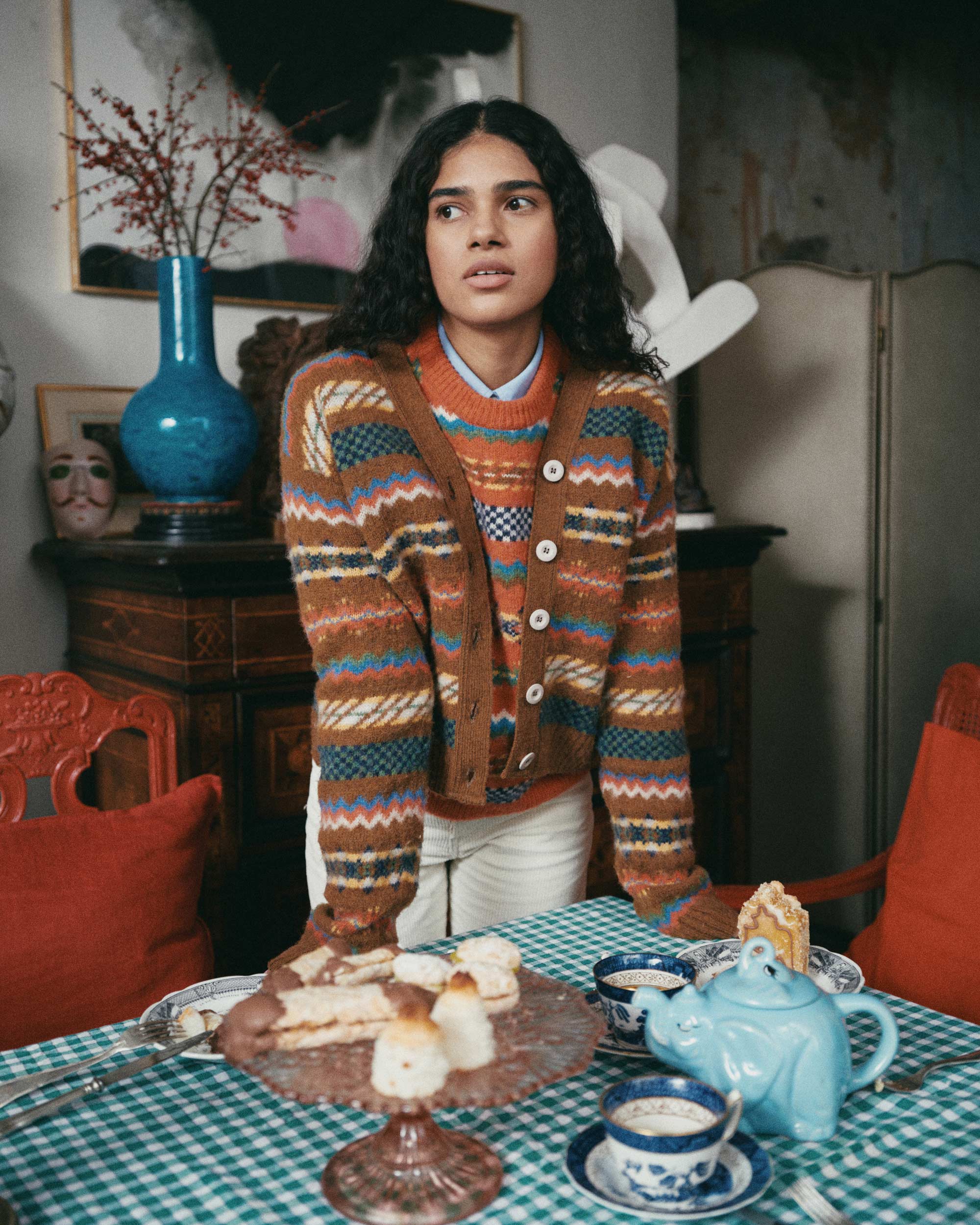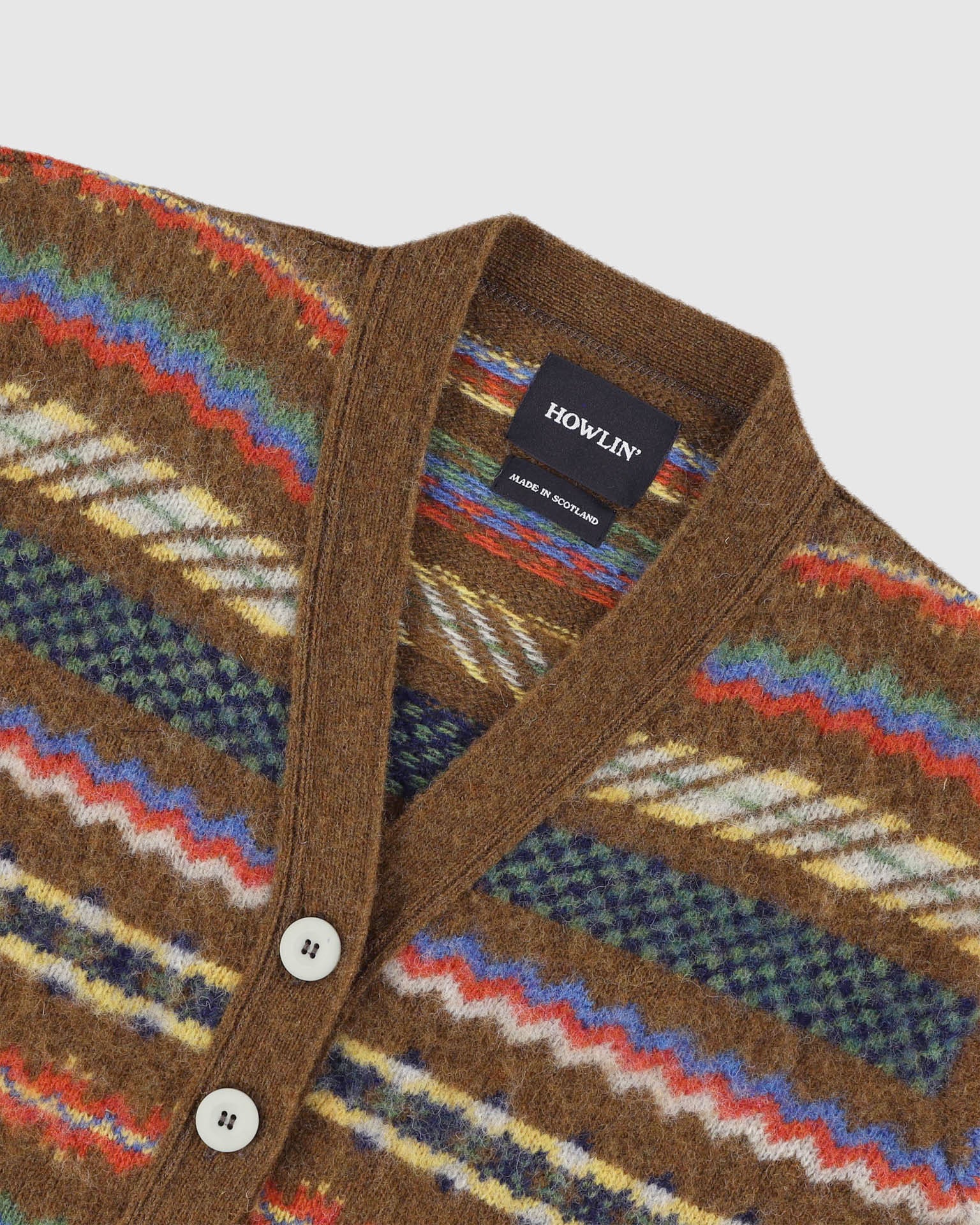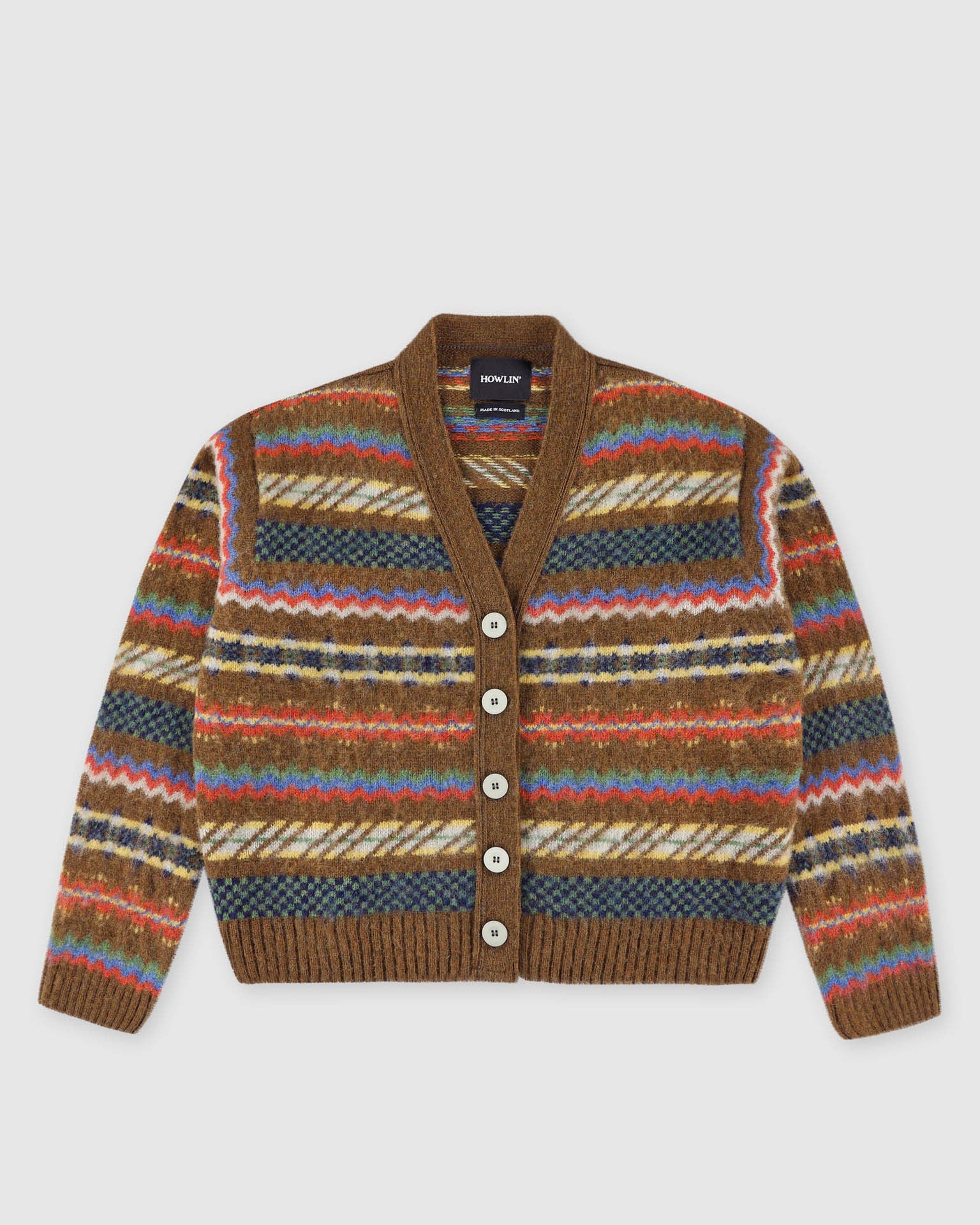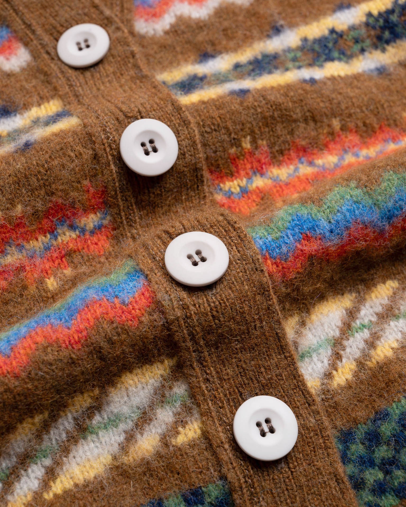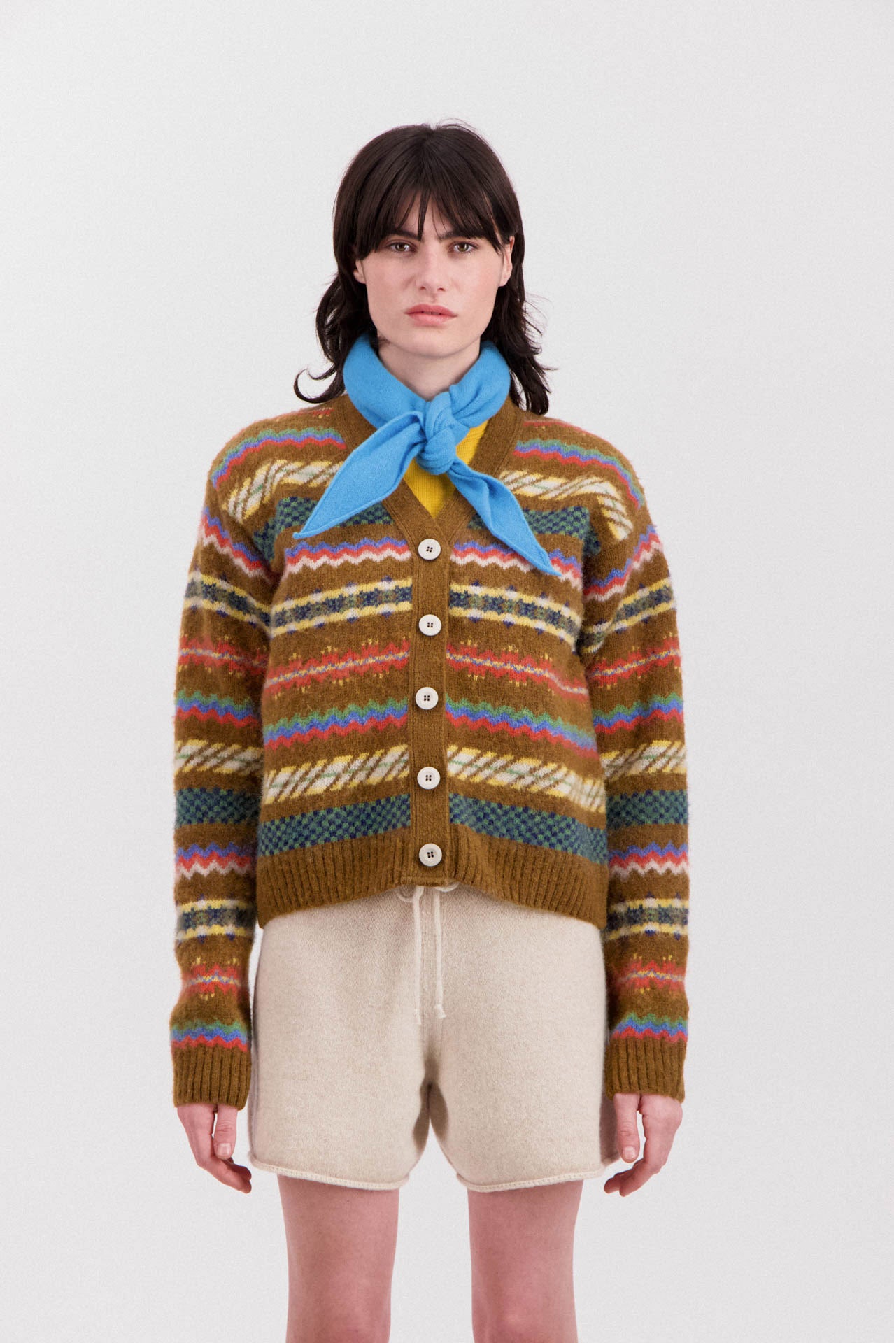 Melodies of Love is a V-neck buttoned cardigan knitted with a Fair Isle pattern.