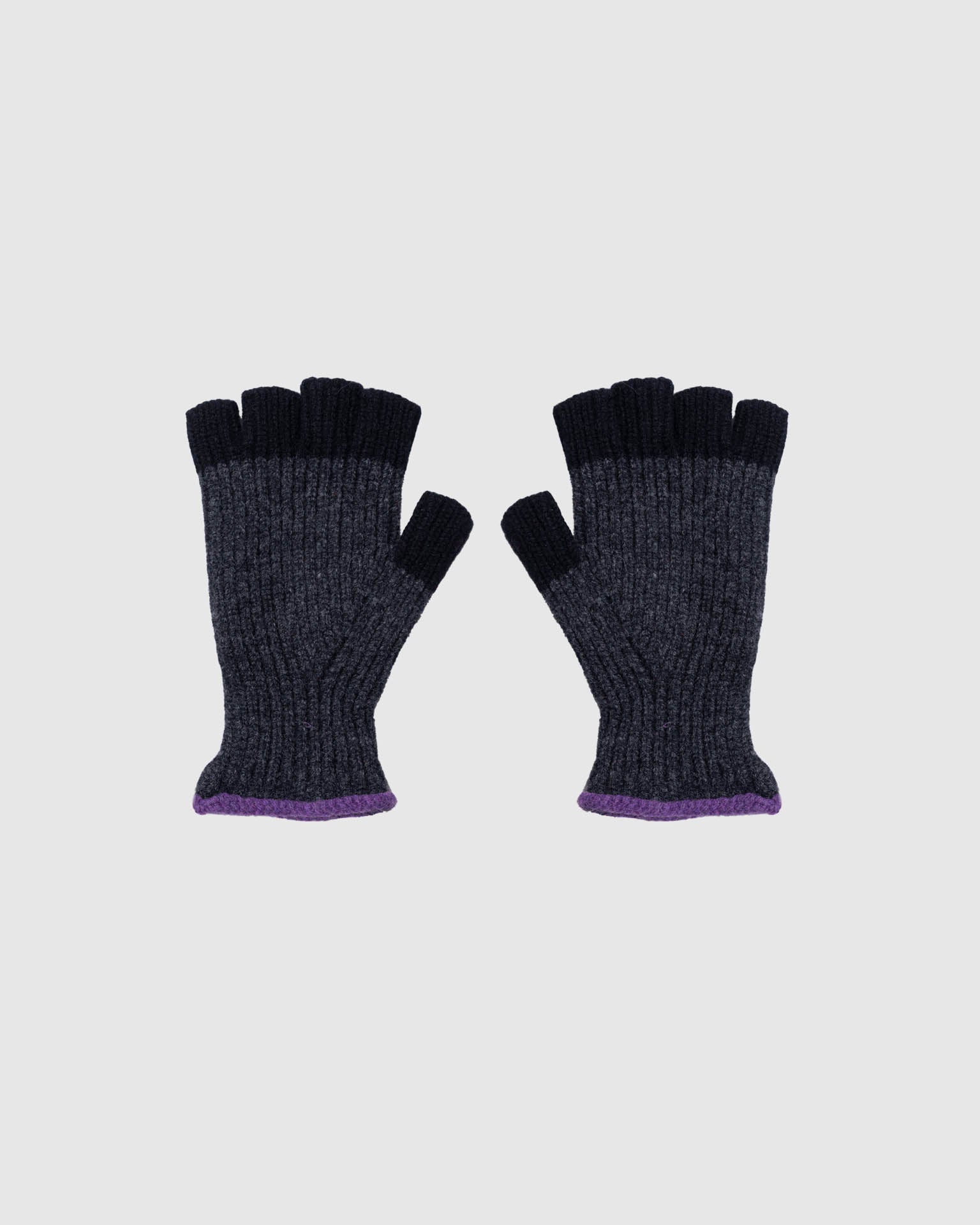 Howlin’s No Fingers In There Ribbed Gloves are a pair of tightly ribbed knitted fingerless gloves with solid colour blocking on the fingers and rolled hem.