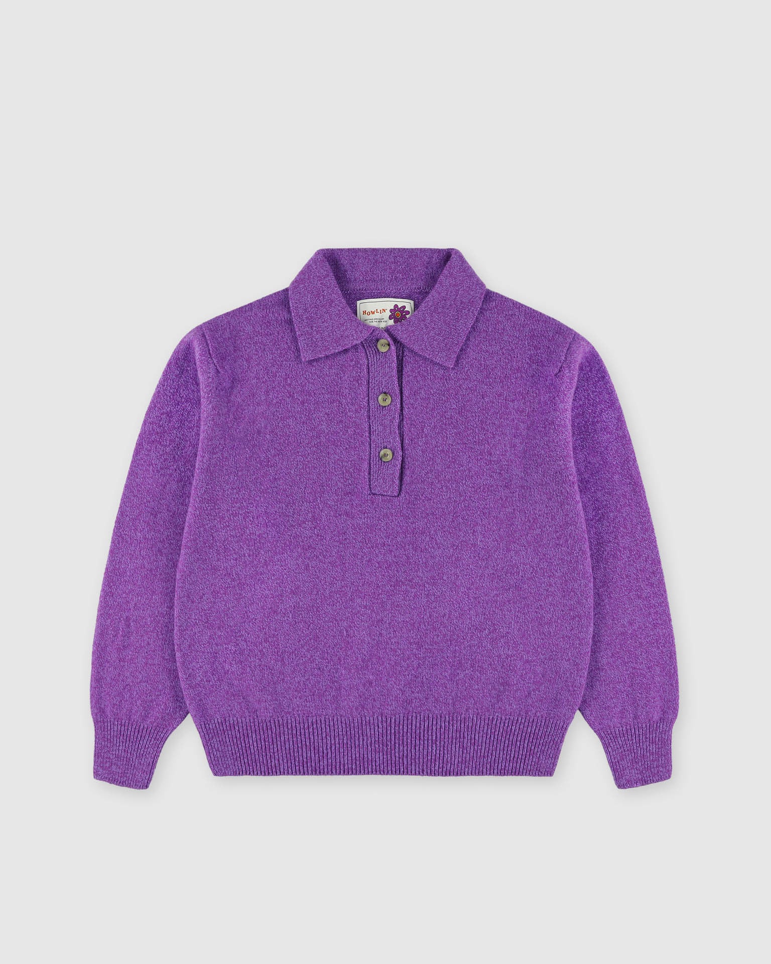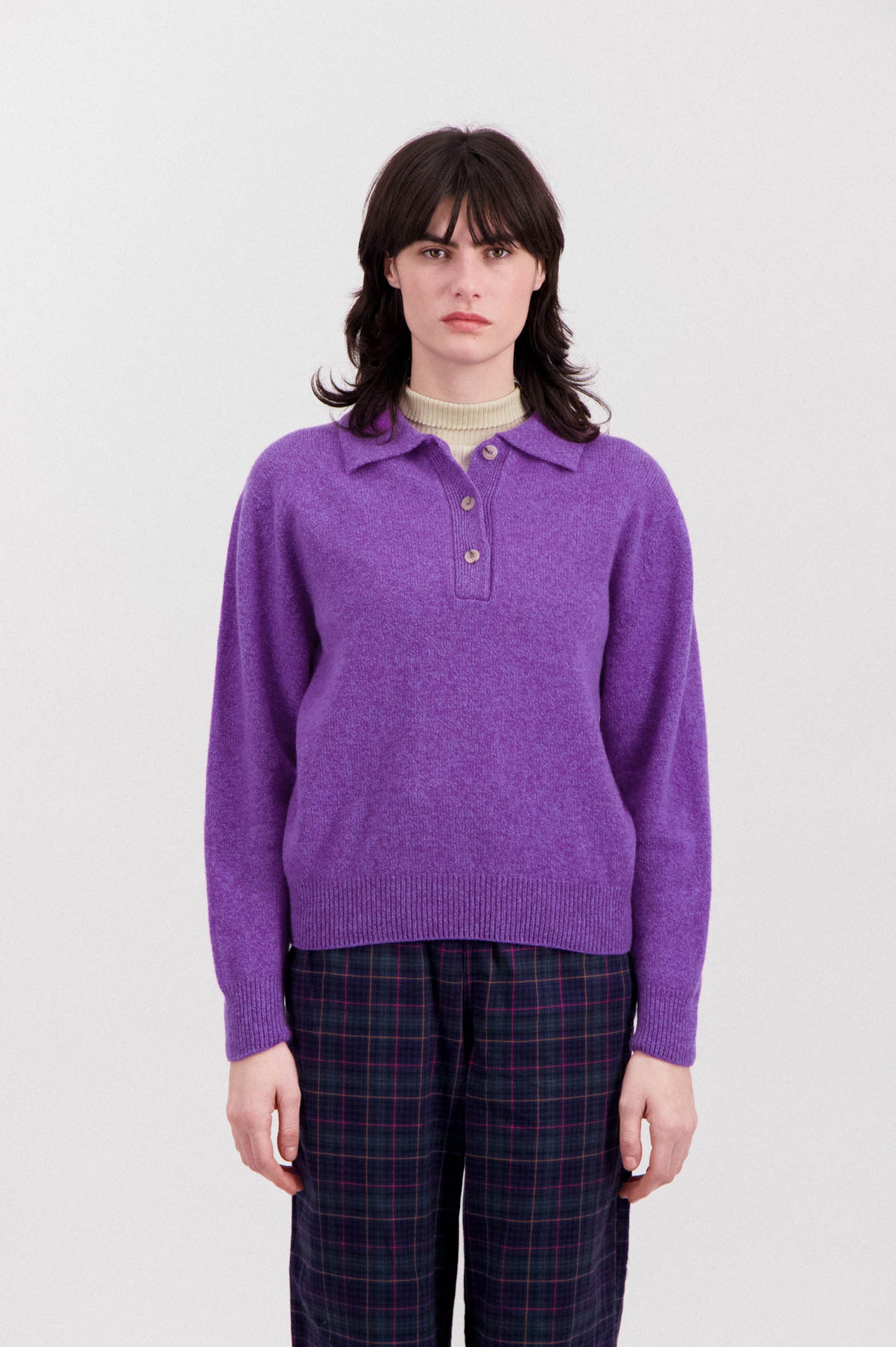 Poems of Comfort is a polo-style sweater with a relaxed fit and ribbed cuffs and hem, knitted in Scotland from 100% pure fine lambswool.