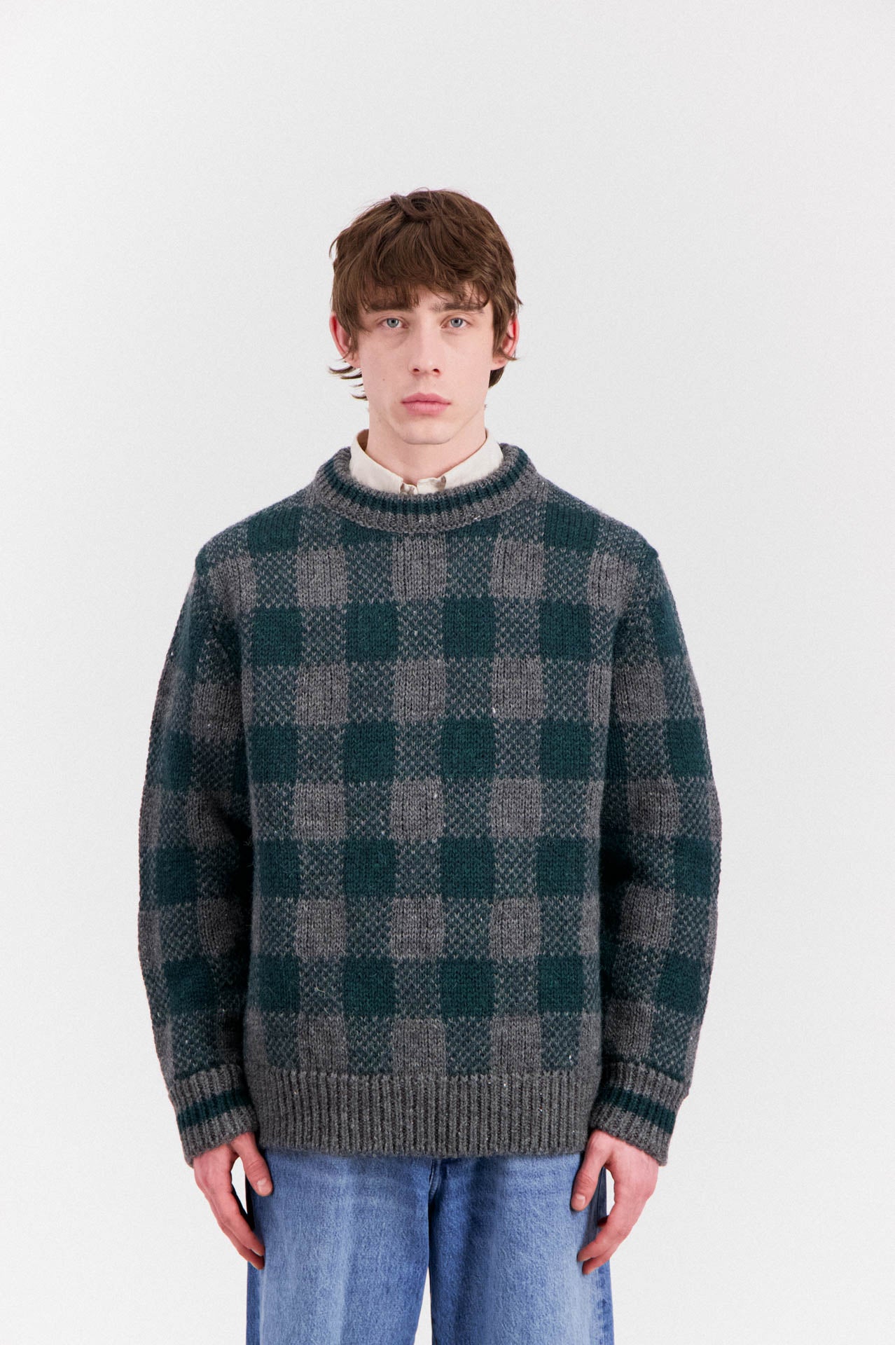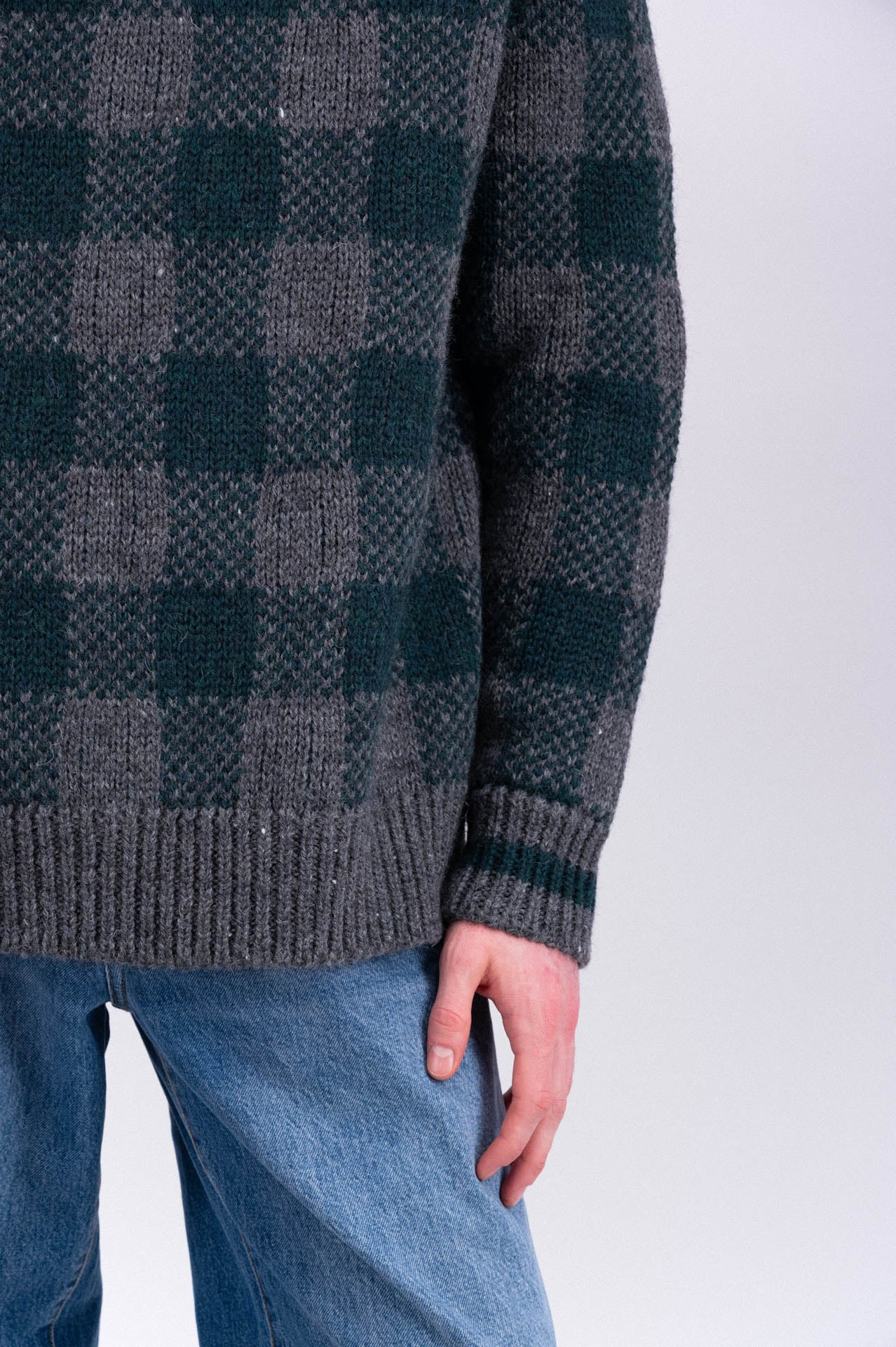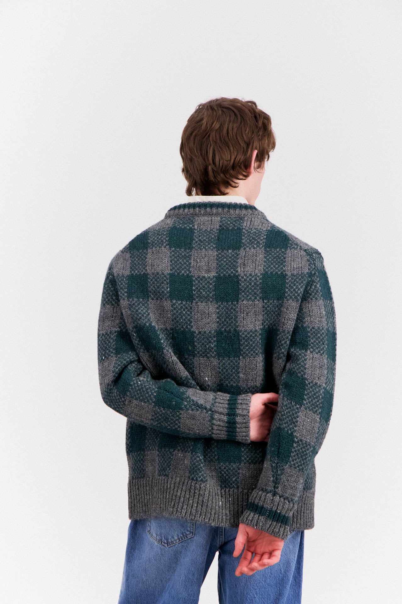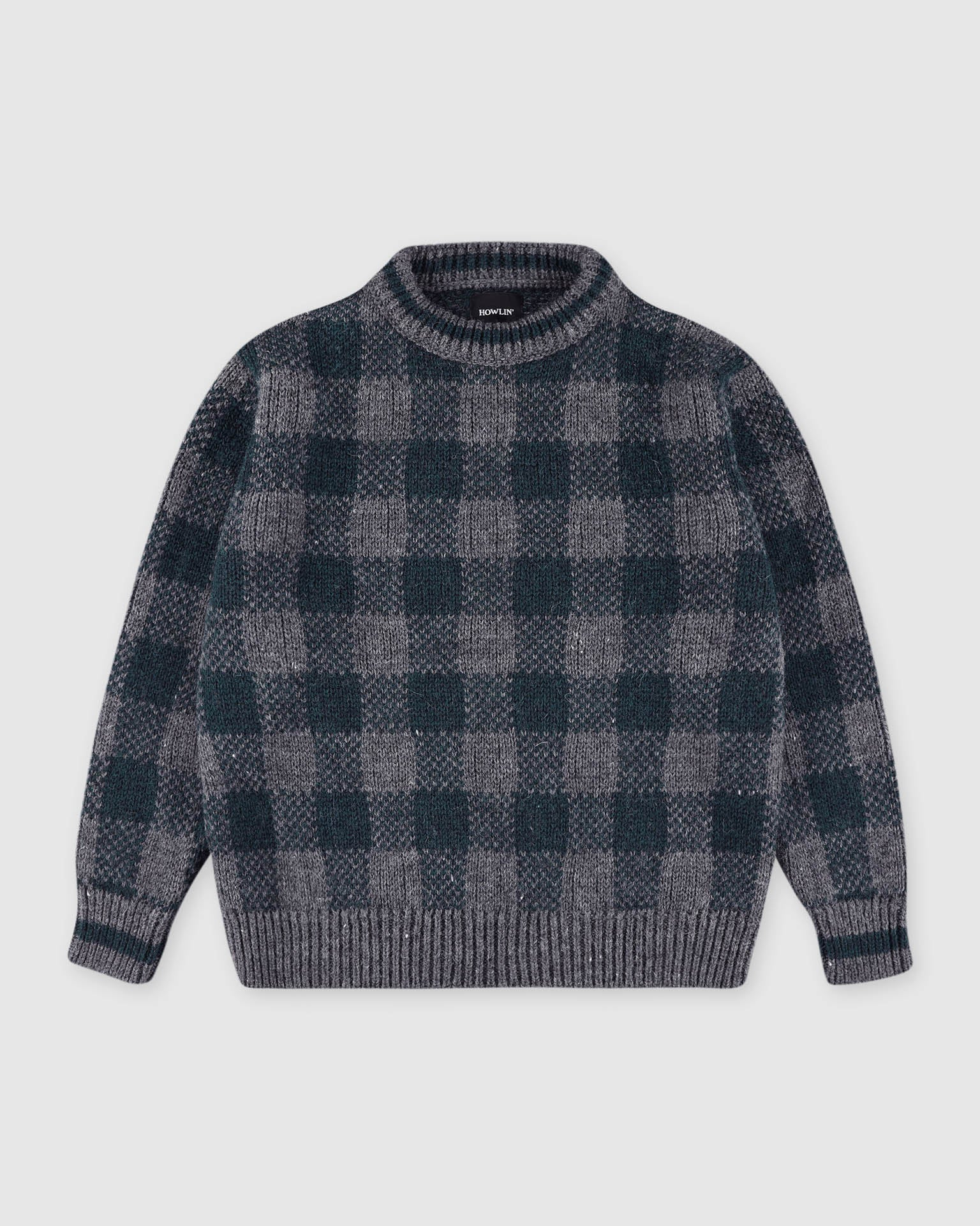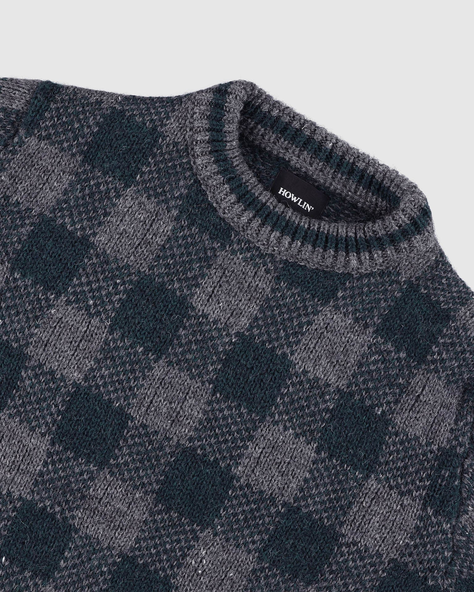 Rebel Without A Brain is Howlin’s take on the check sweater, featuring a bold all-over pattern and sporty ribbed trims at the collar, cuffs, and hem.