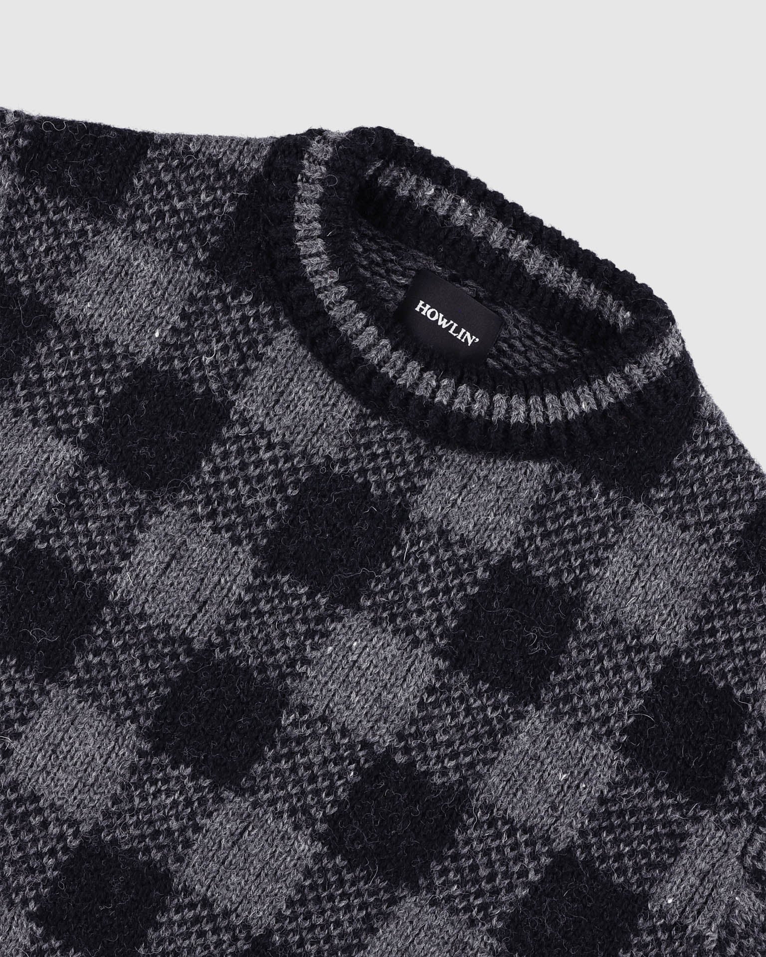 Rebel Without A Brain is Howlin’s take on the timeless check sweater, featuring a bold all-over pattern and sporty ribbed trims at the collar, cuffs, and hem.