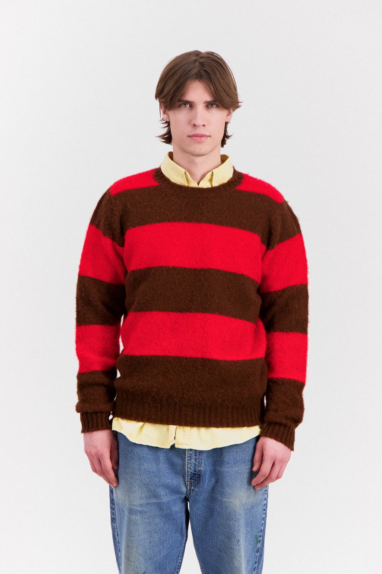 As always, Howlin' applies its beloved Shaggy Bear™ treatment to this timeless, chunky striped crewneck jumper.