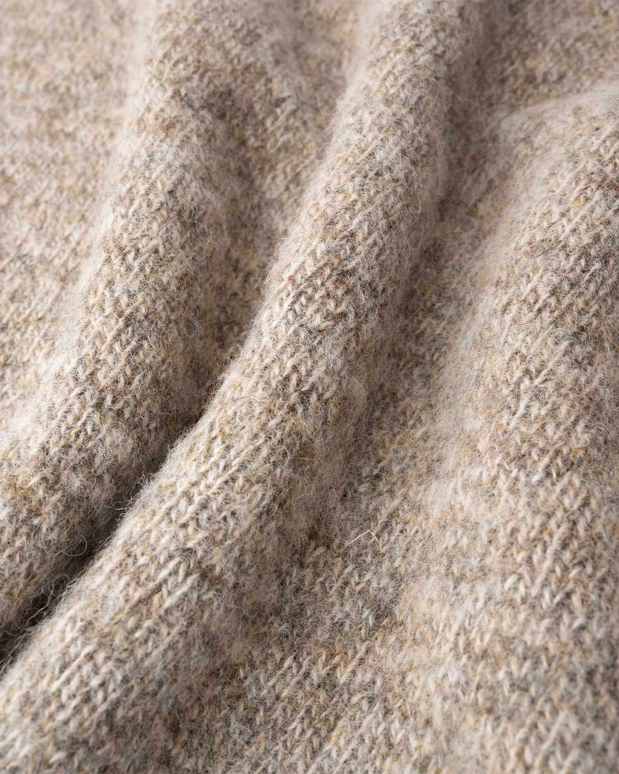Shaggy Bear knitwear is extra-brushed and expertly crafted in Scotland made from 100% pure wool spun from the hardy Shetland sheep, an ancient breed renowned for thriving in the rugged Scottish climate. Each sheep produces a limited amount of wool, making this yarn highly sought after for its exceptional quality, warmth, and character.