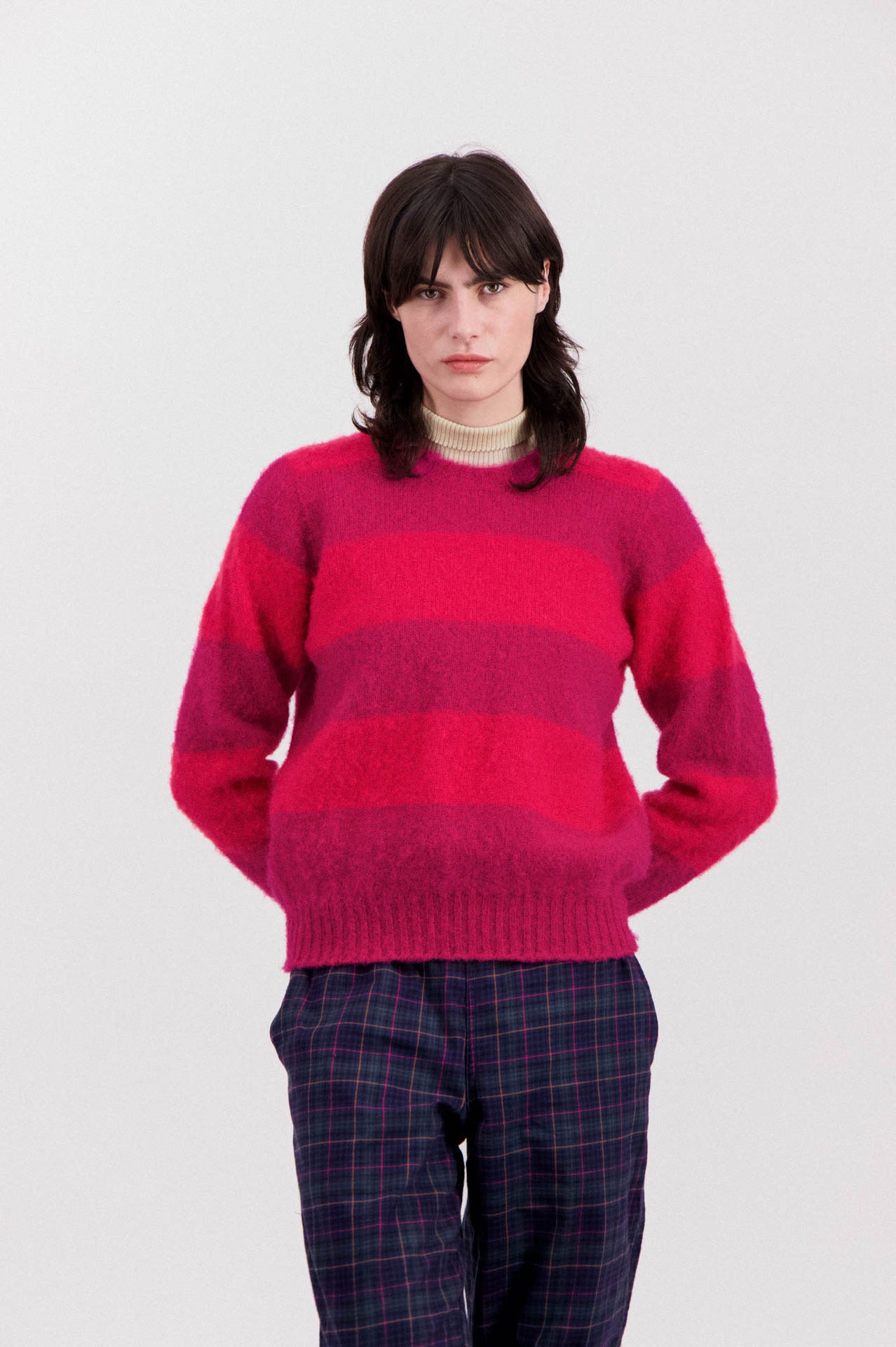 As always, Howlin' applies its beloved Shaggy Bear™ treatment to this timeless, chunky striped crewneck jumper.