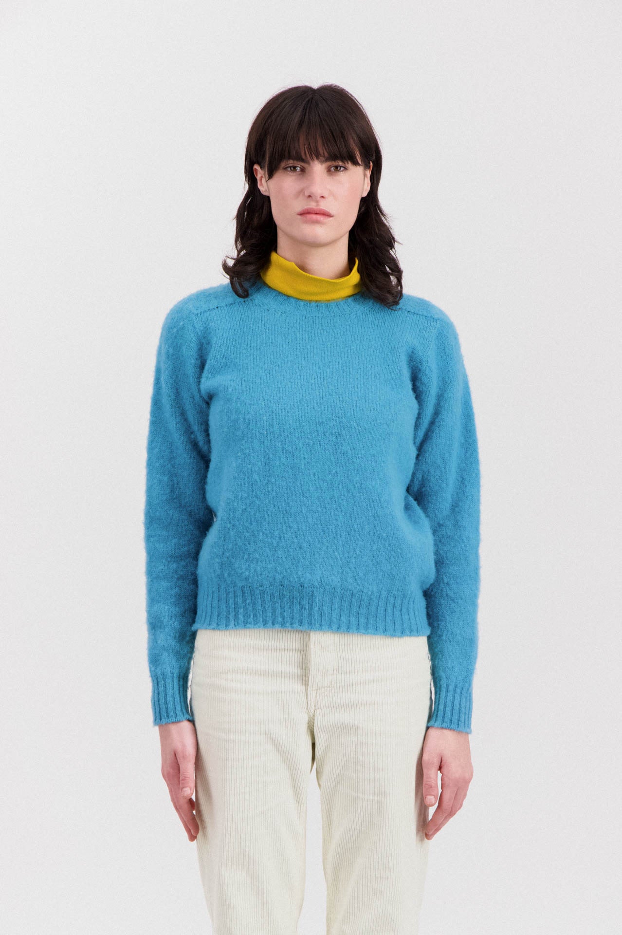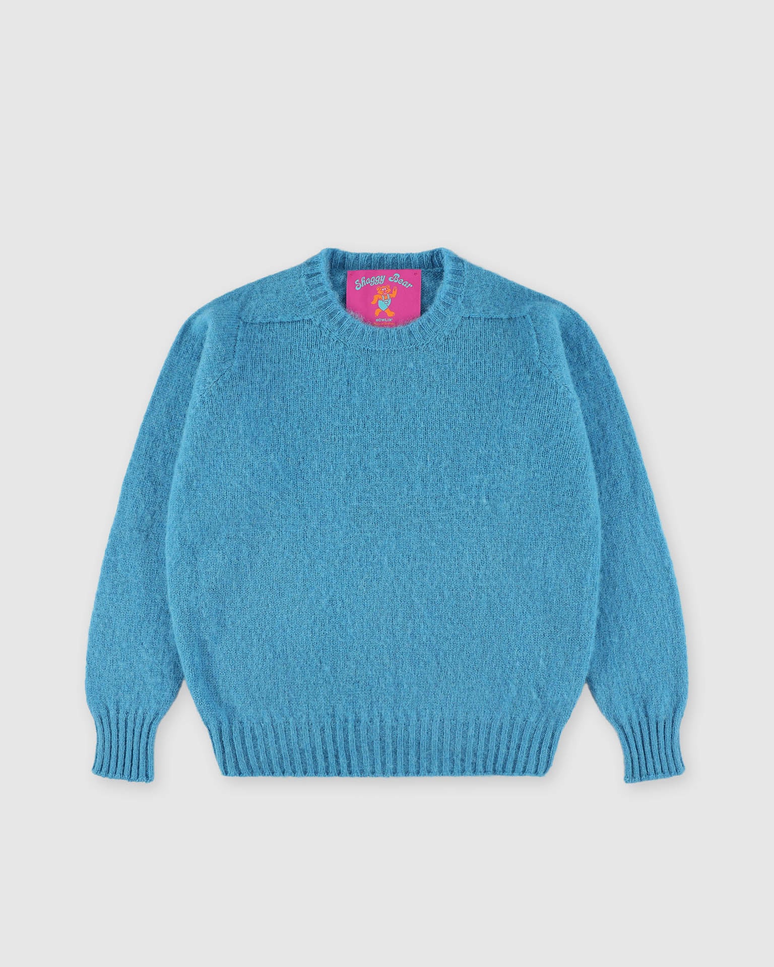 Expertly crafted in Scotland, this jumper is made from 100% pure wool spun from the hardy Shetland sheep—an ancient breed renowned for producing warm, durable fleece. Each garment is brushed using traditional teasels to achieve the signature soft, shaggy texture that defines the Shaggy Bear™ collection.
