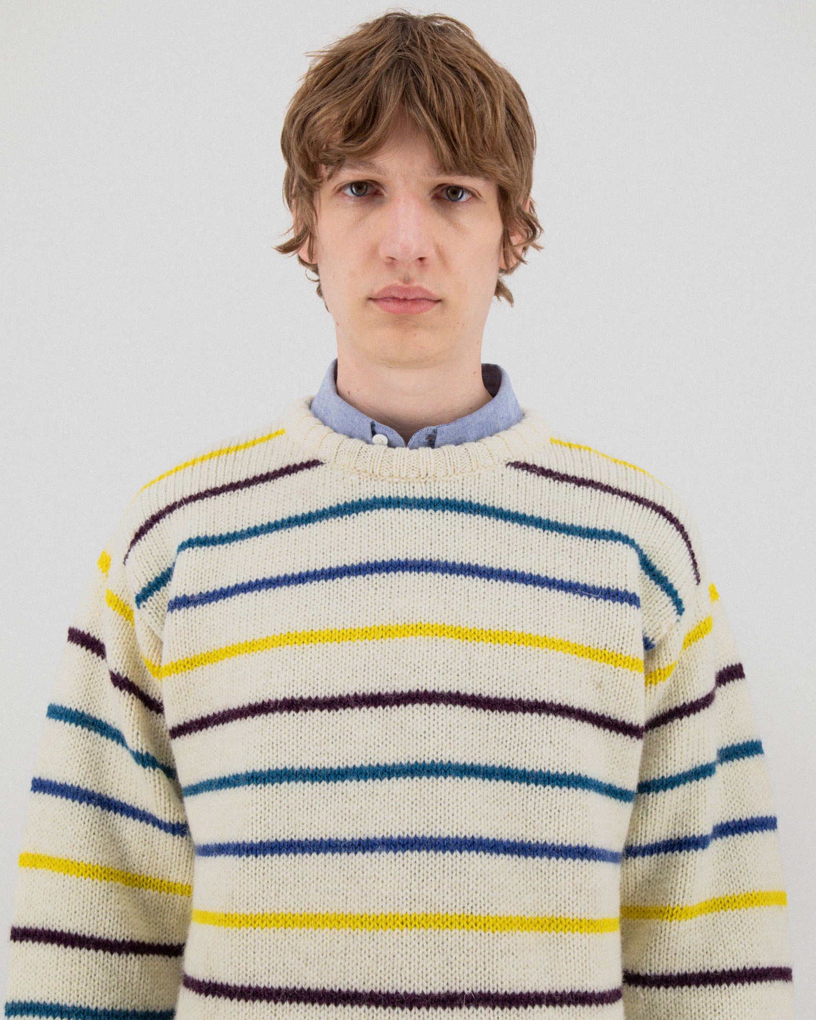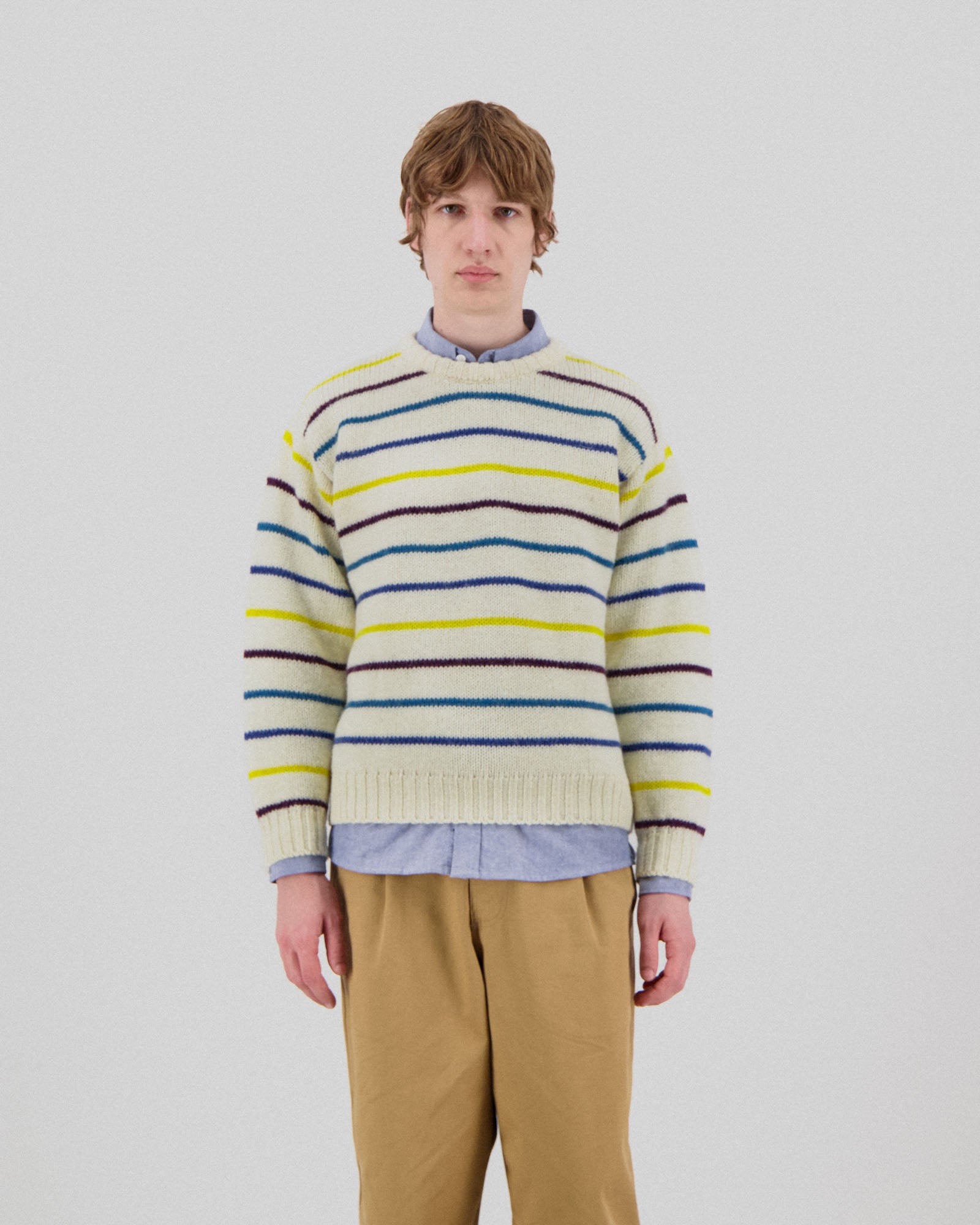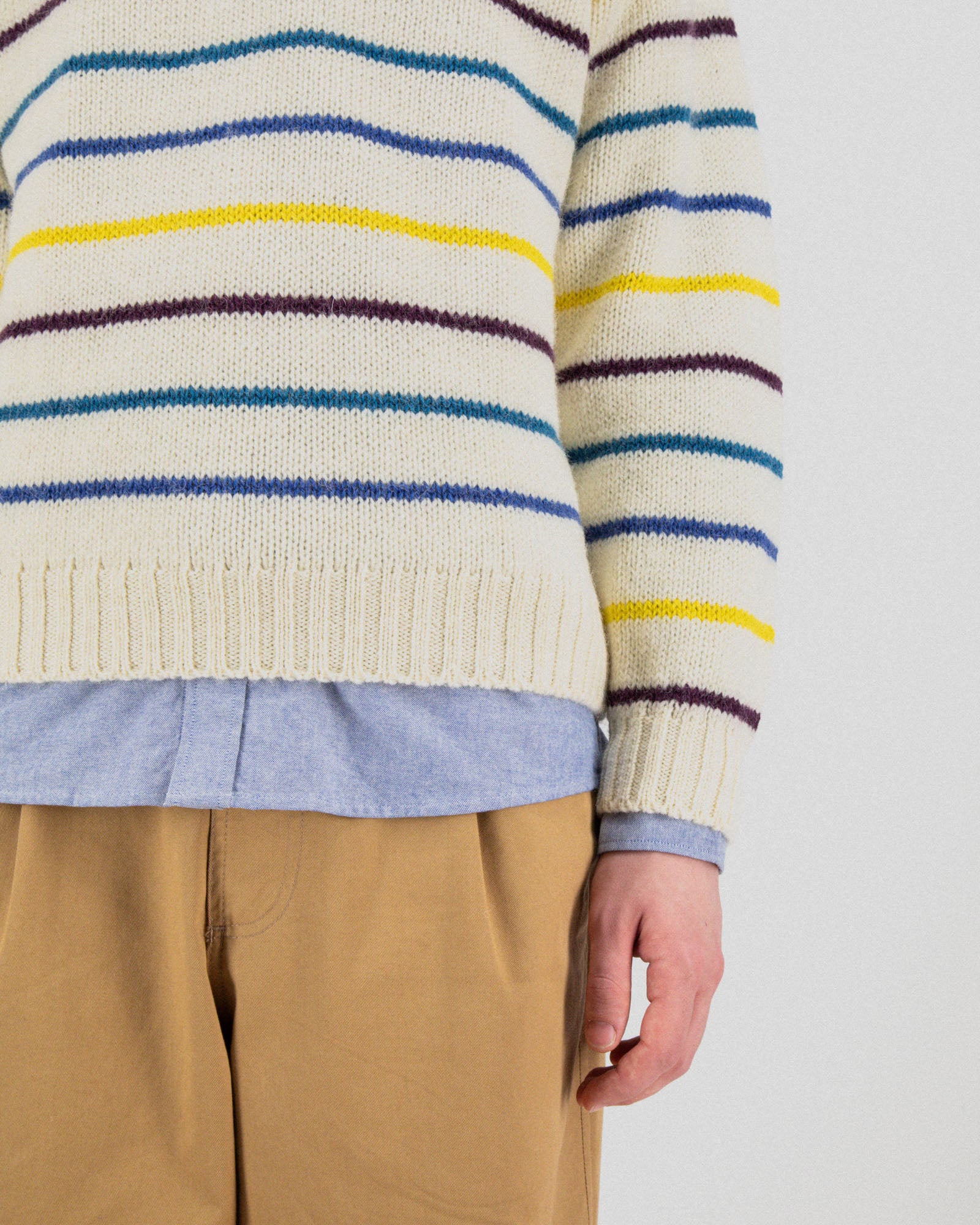The Six Blade Knit is a richly textured striped jumper, proudly made in Ireland. Crafted from a warm and breathable blend of mohair and wool.