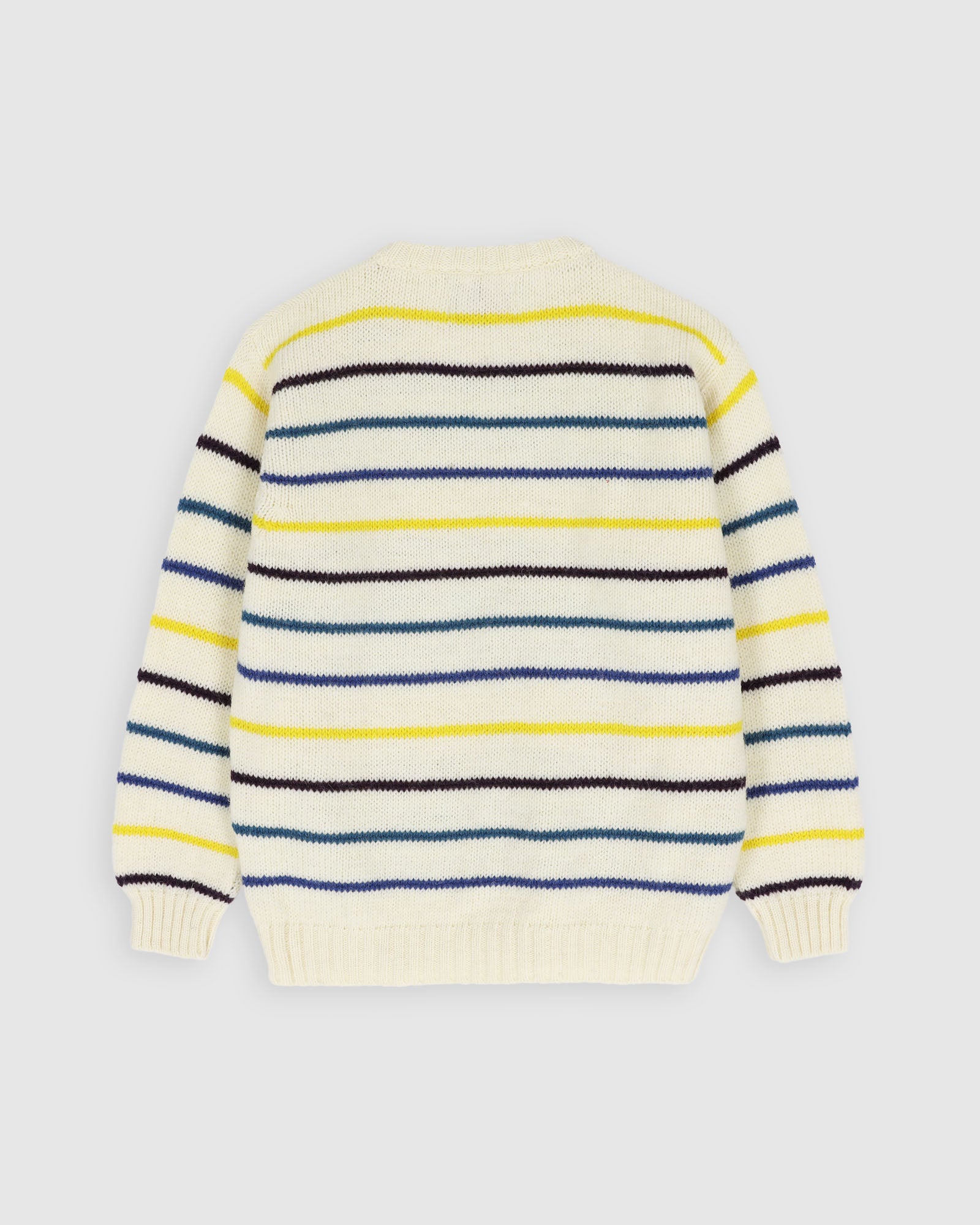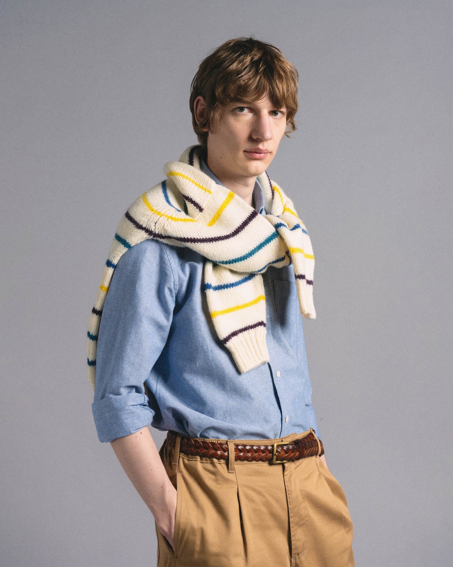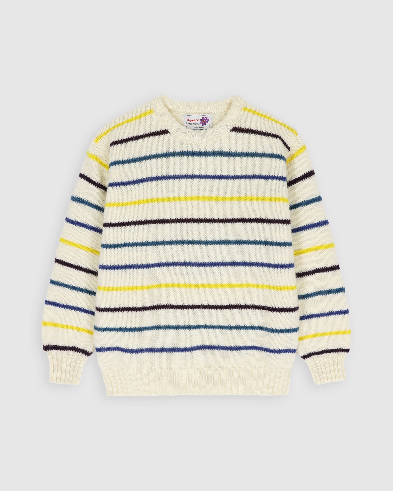 The Six Blade Knit is a richly textured striped jumper, proudly made in Ireland. Crafted from a warm and breathable blend of mohair and wool.