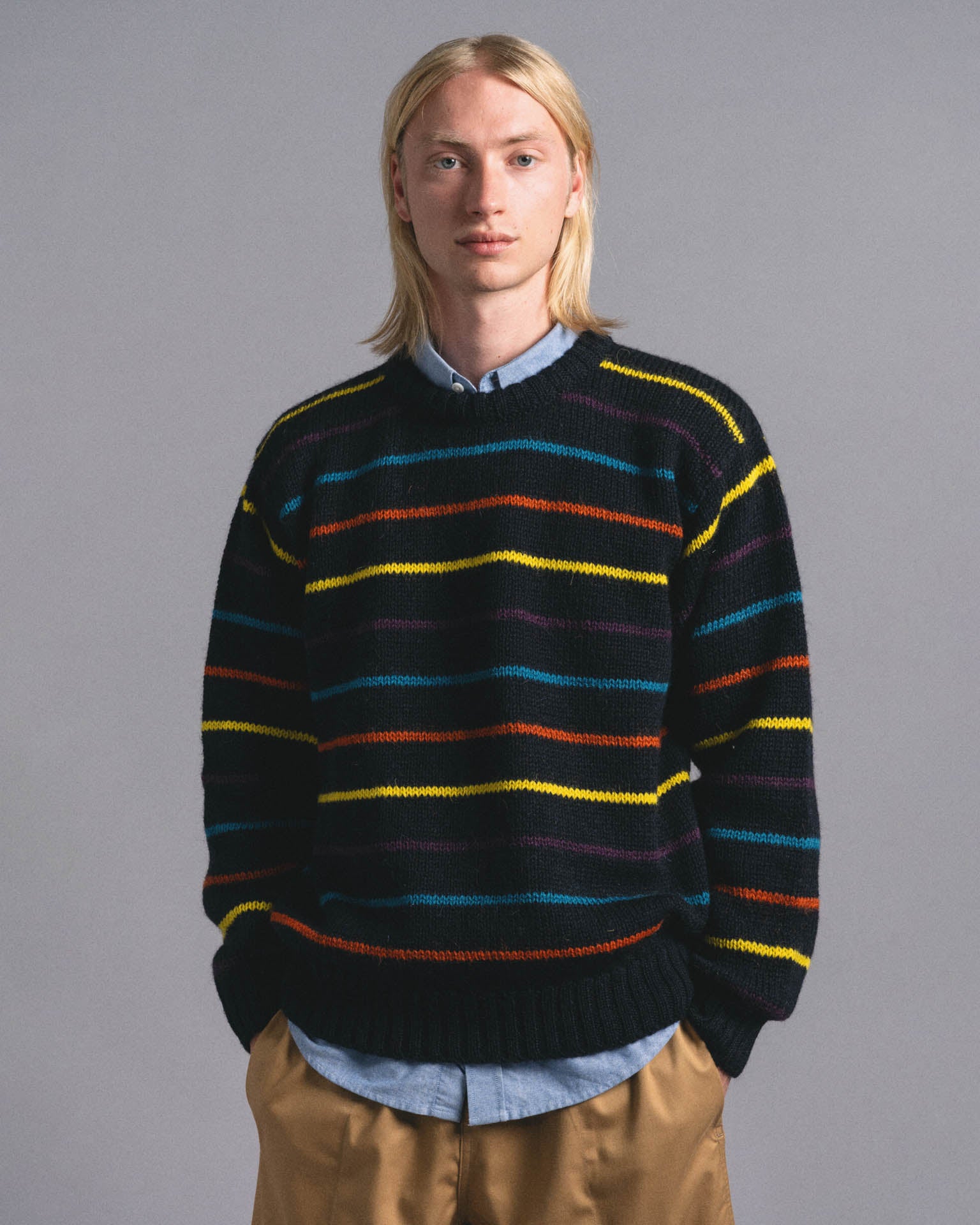 The Six Blade Knit is a richly textured striped jumper, proudly made in Ireland. Crafted from a warm and breathable blend of mohair and wool.