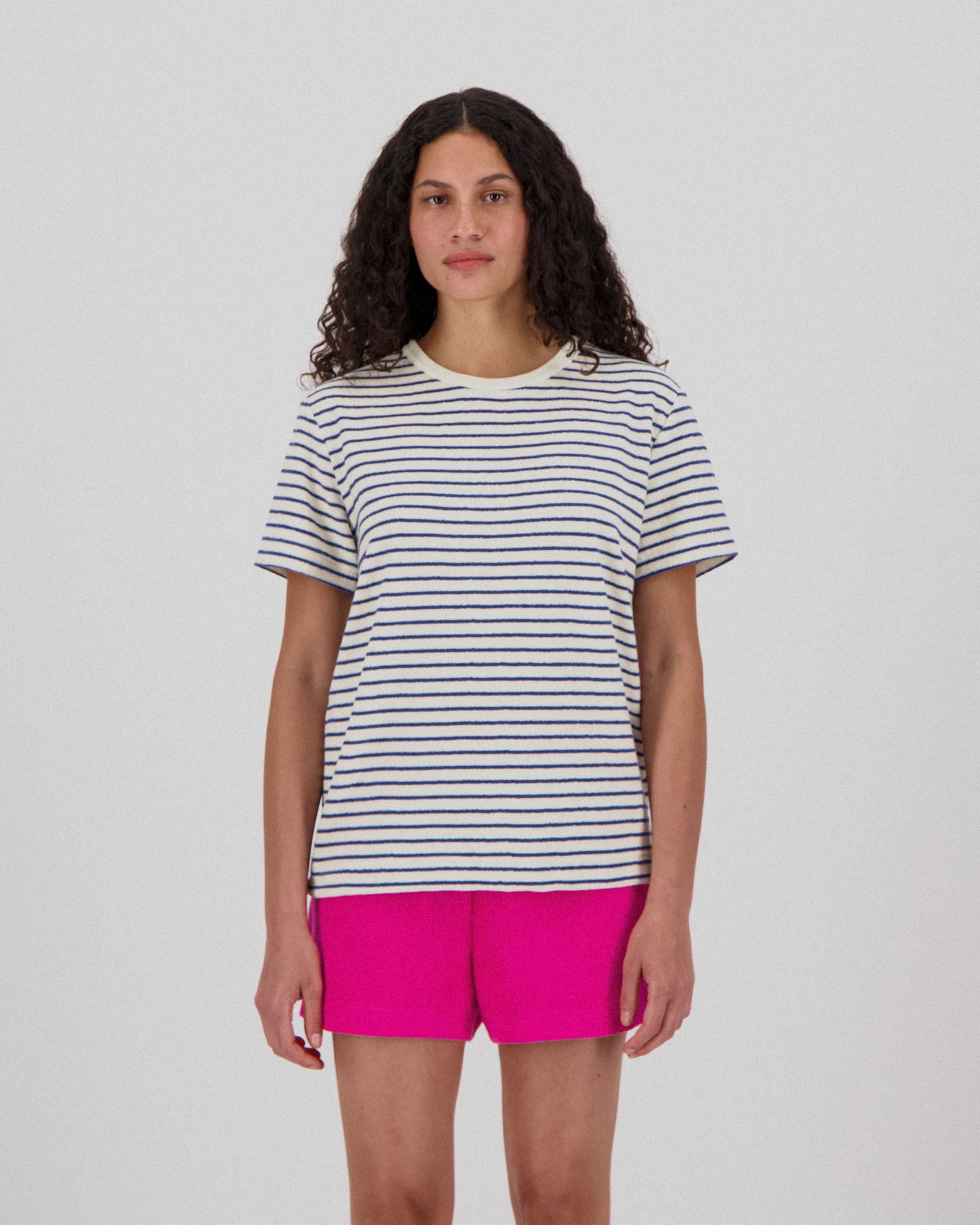 Sky Dreamers is a classic-style striped t-shirt for women crafted from Howlin's signature light towel fabric.
