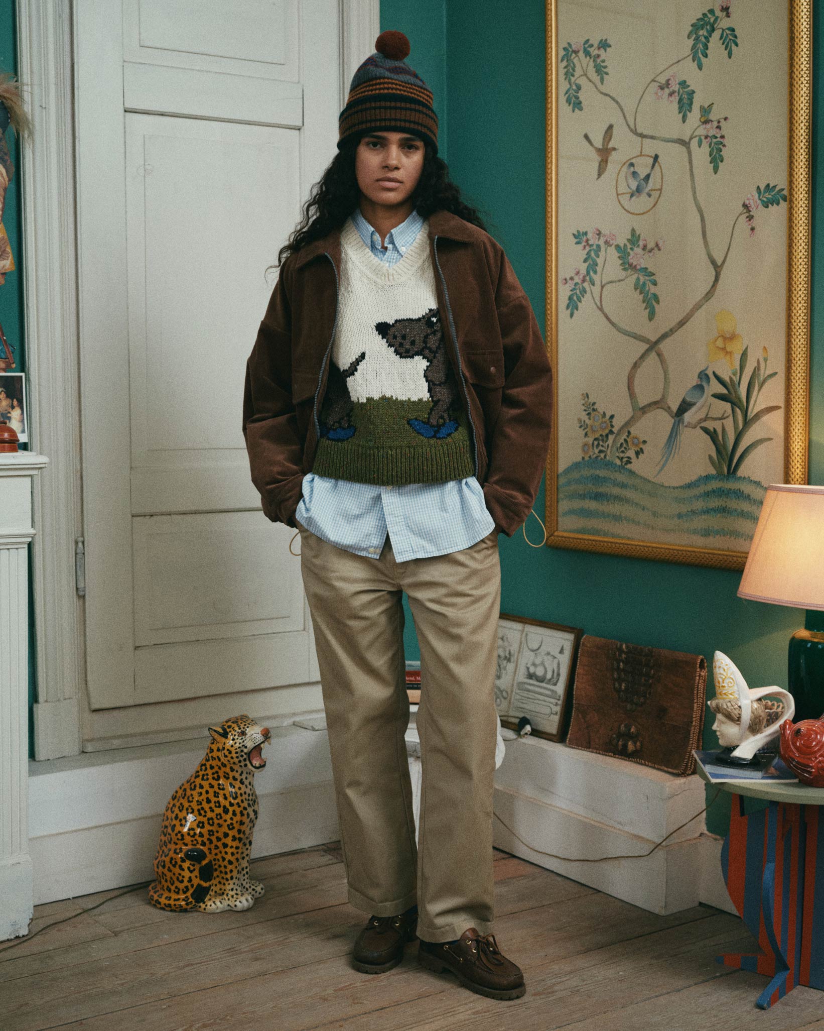It's crafted in Scotland with a 100% natural lambswool yarn. Our lambswool comes from the first shearing of the Merino breed of sheep, which is known to produce the softest and finest wool. This natural wool is considered the most reusable and recyclable apparel fibre on the planet. Above all, it can breathe, is elastic, gives natural odour control, warms us when we are cold, and cools us when we overheat.