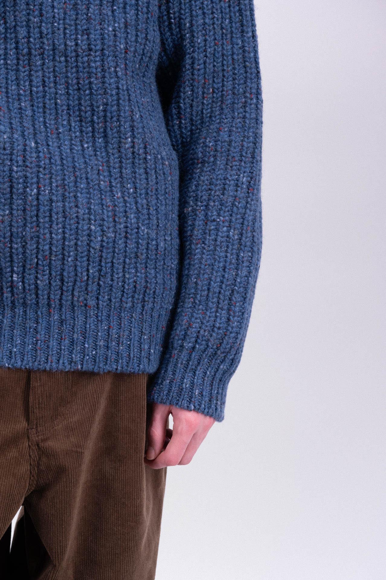 • Exclusive flecked tweed yarn with multicolored depth