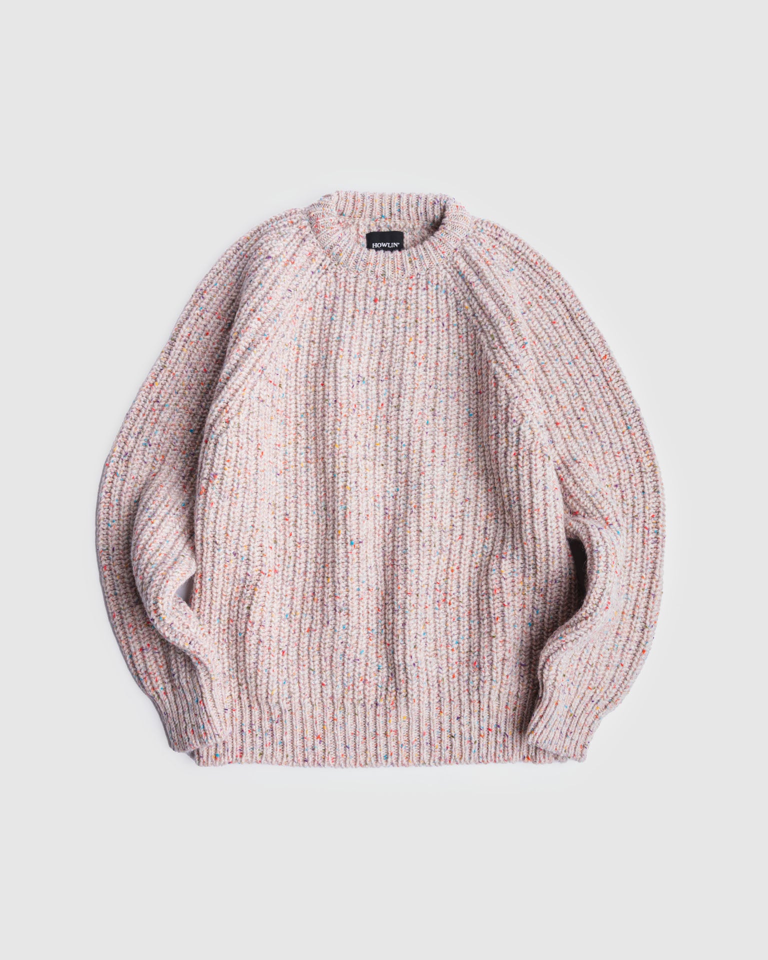 Taste of the Future is a bold Howlin’ essential, crafted in Scotland from 100% pure new wool using an exclusive chunky tweed yarn. Characterized by its richly textured surface, the yarn blends multicoloured flecks, creating a cosmic visual effect.