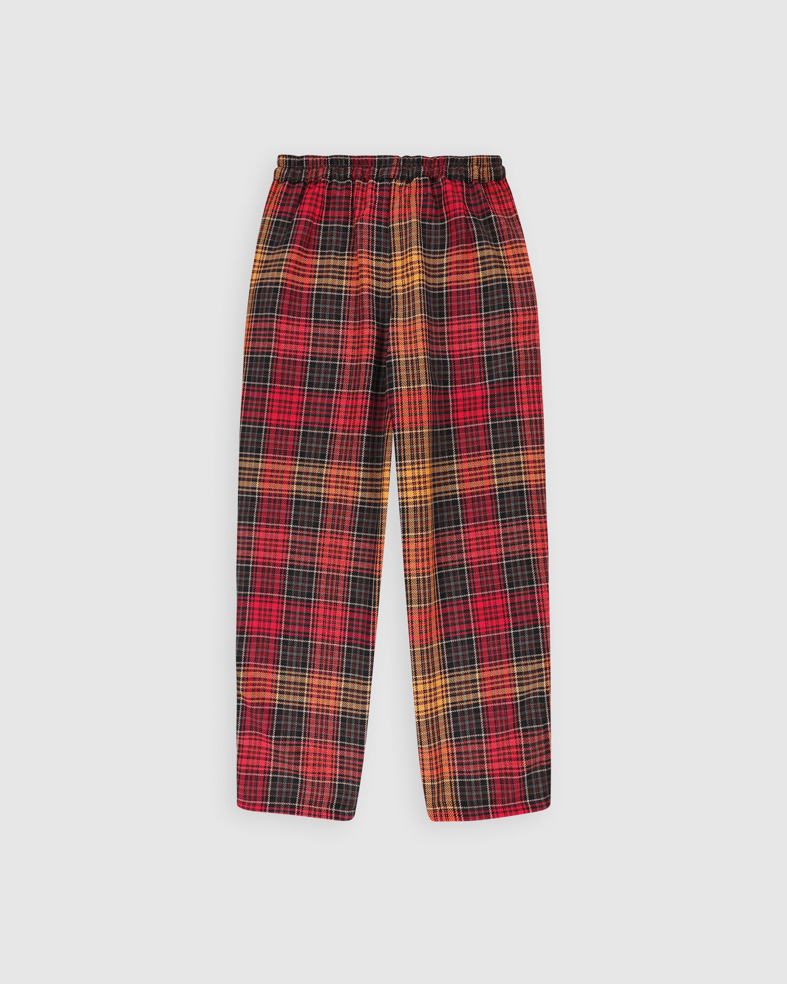 This garment features a rich check pattern with deep, woven-in colours. The fabric has a soft yet structured feel, ideal for layering or wearing on its own across seasons.