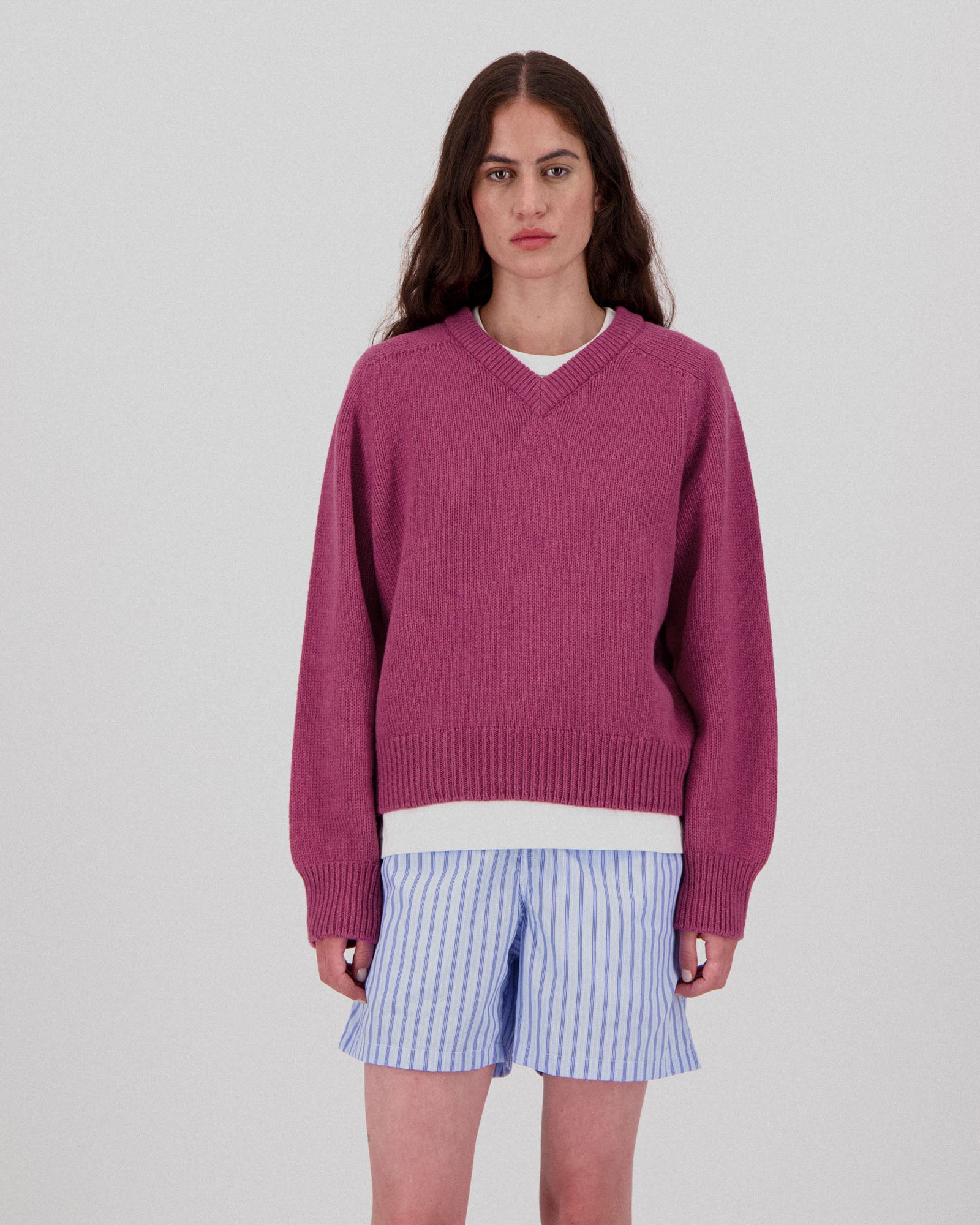 Twisted Mirror is our feminine take on the V-neck essential, effortlessly elegant, with a relaxed fit and gently shaped neckline. Knitted in Scotland from organic cotton and lambswool, it’s soft, breathable, and made to last across seasons.